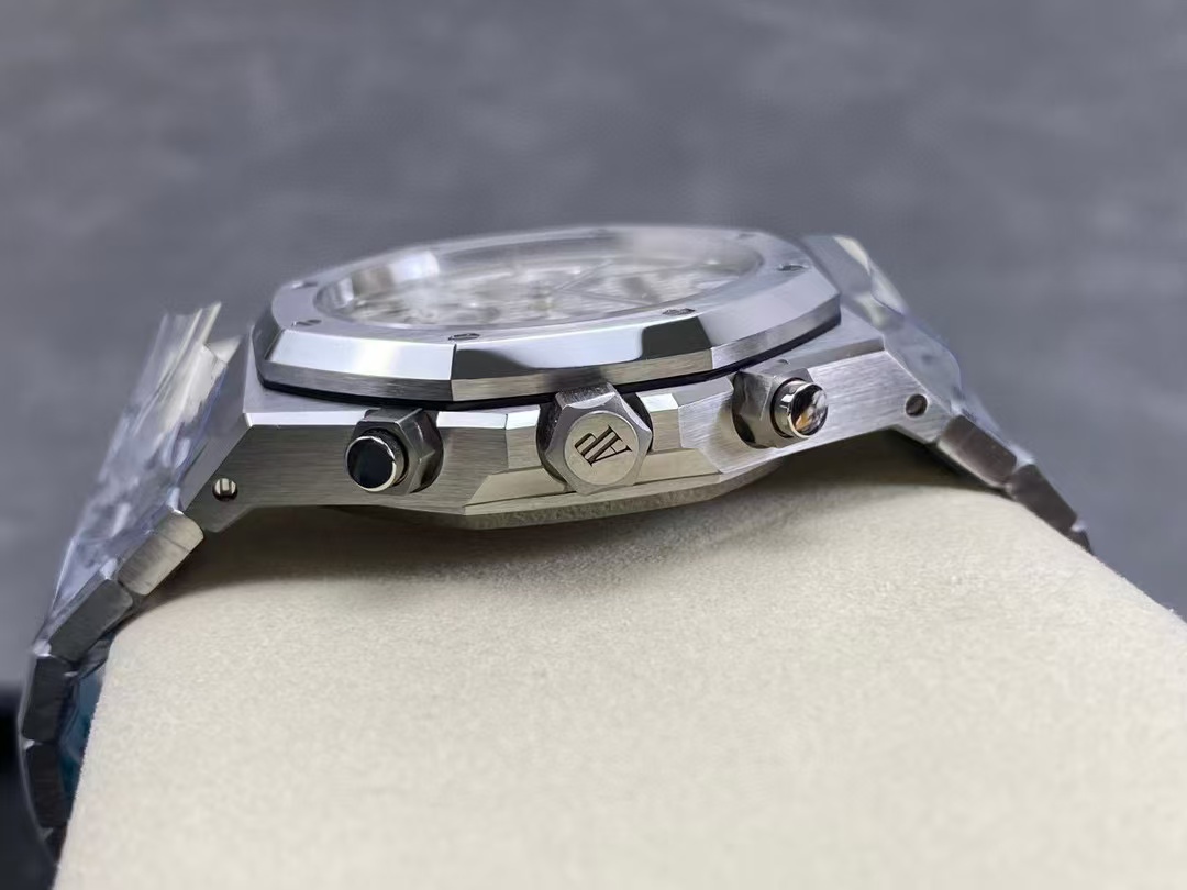 这款手表是AAAAA 1:1 质量 (非常棒). 使用了和原版一模一样的材料. 商标部分也保持了和爱彼/Audemars Piguet一样. 图片拍摄是实物手表拍摄, 您所收到的实物保证和我们图片一模一样.