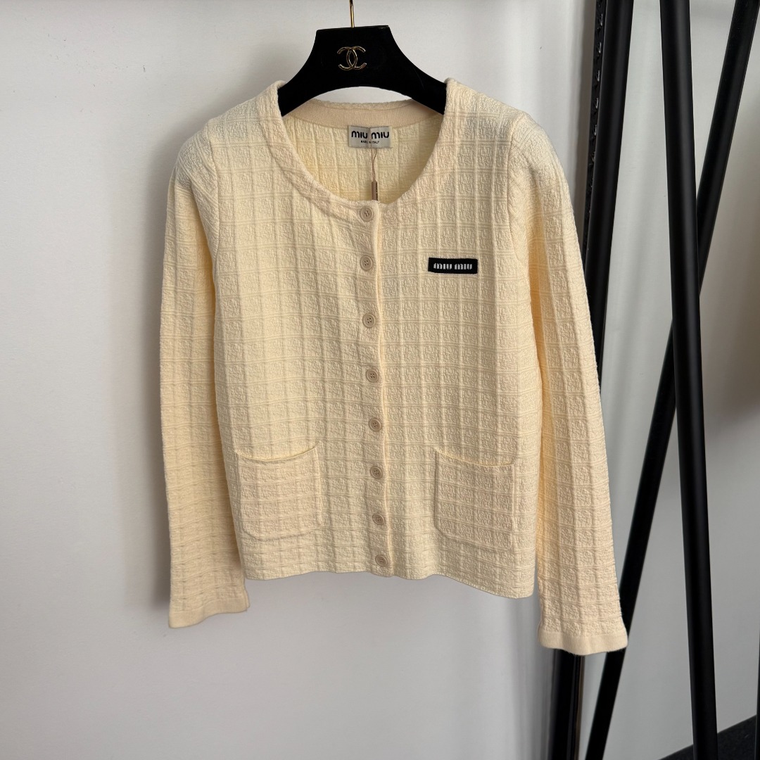 这款衣服是AAAAA 1:1 质量 (非常棒). 使用了和原版一模一样的材料. 商标部分也保持了和缪缪/Miu Miu一样. 图片拍摄是实物衣服拍摄, 您所收到的实物保证和我们图片一模一样.