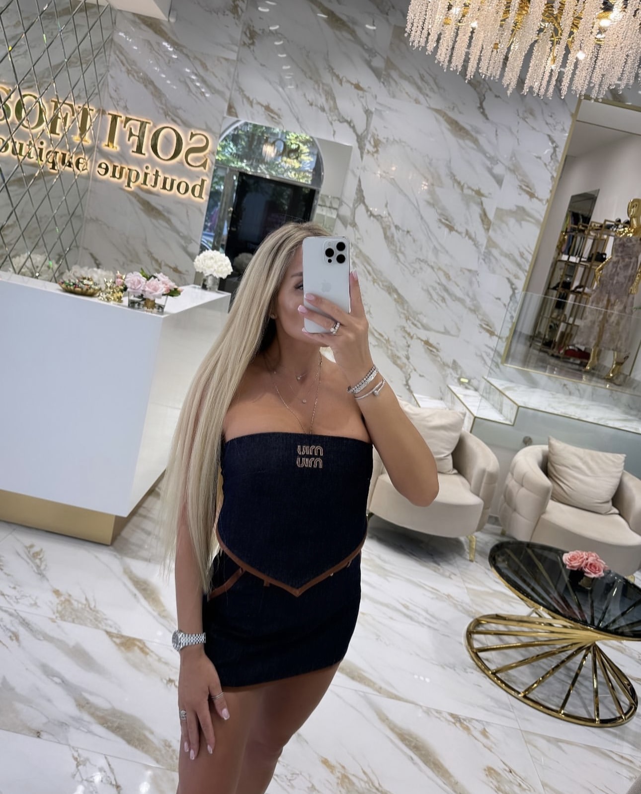 这款衣服是AAAAA 1:1 质量 (非常棒). 使用了和原版一模一样的材料. 商标部分也保持了和缪缪/Miu Miu一样. 图片拍摄是实物衣服拍摄, 您所收到的实物保证和我们图片一模一样.