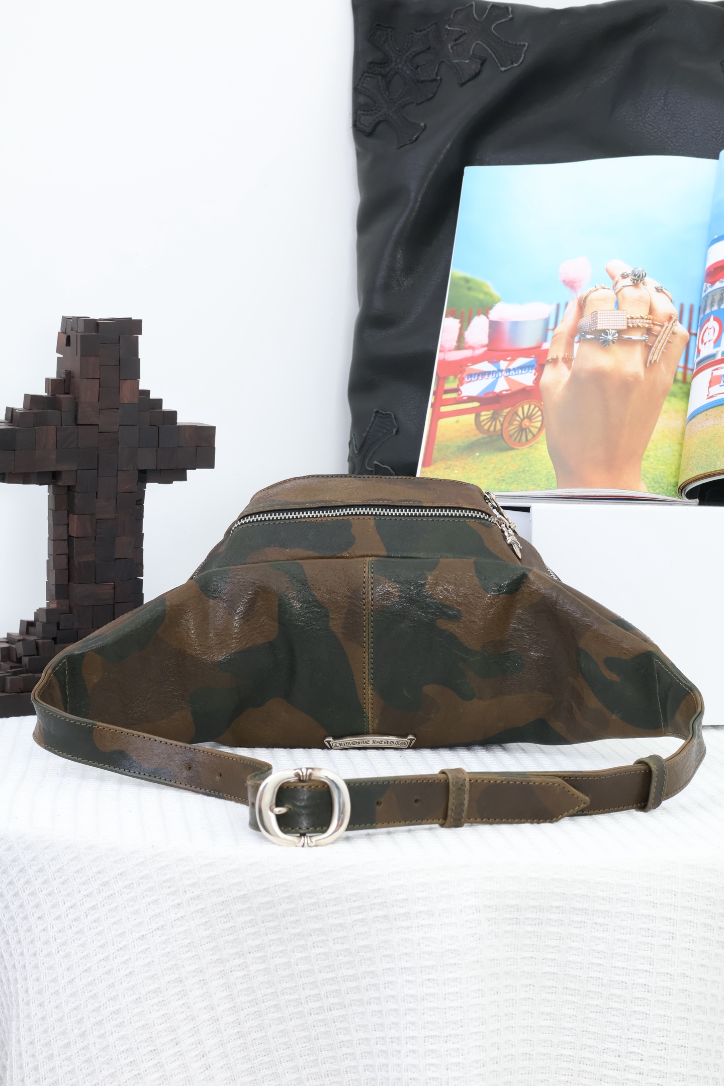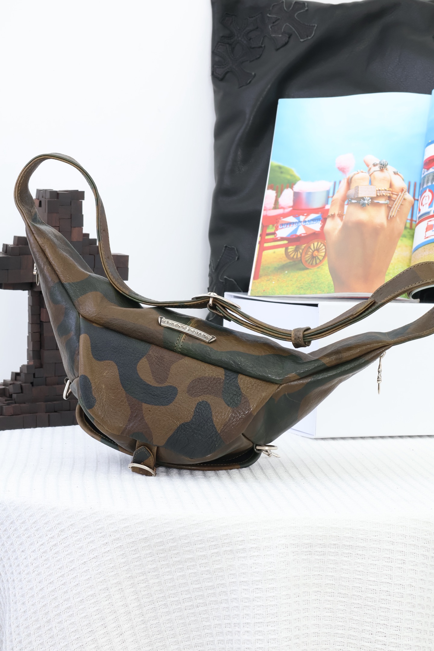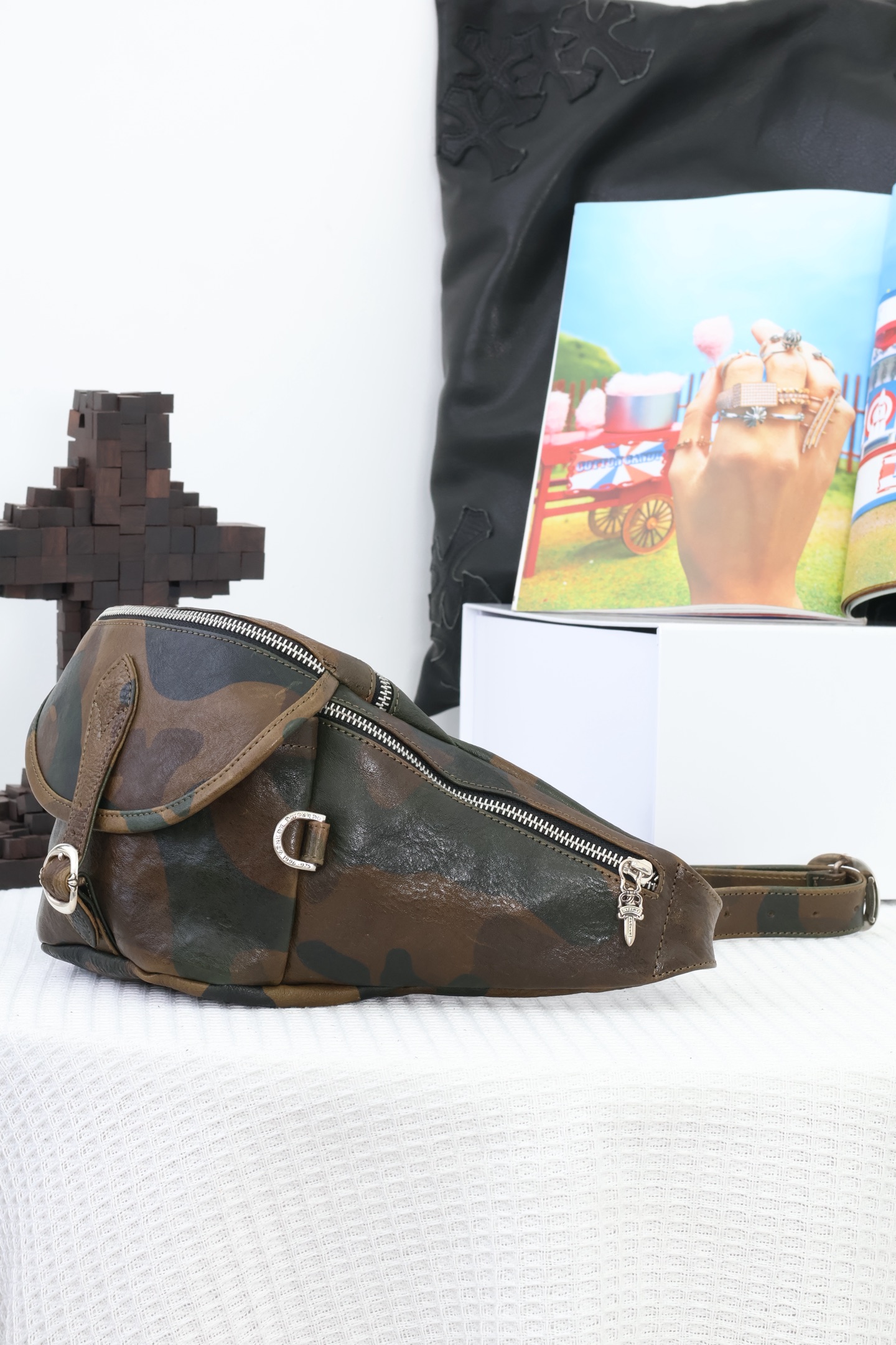 这款包包是AAAAA 1:1 质量 (非常棒). 使用了和原版一模一样的材料. 商标部分也保持了和克罗心/Chrome Hearts一样. 图片拍摄是实物包包拍摄, 您所收到的实物保证和我们图片一模一样.