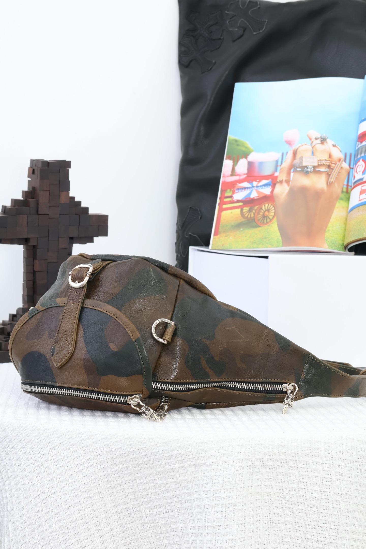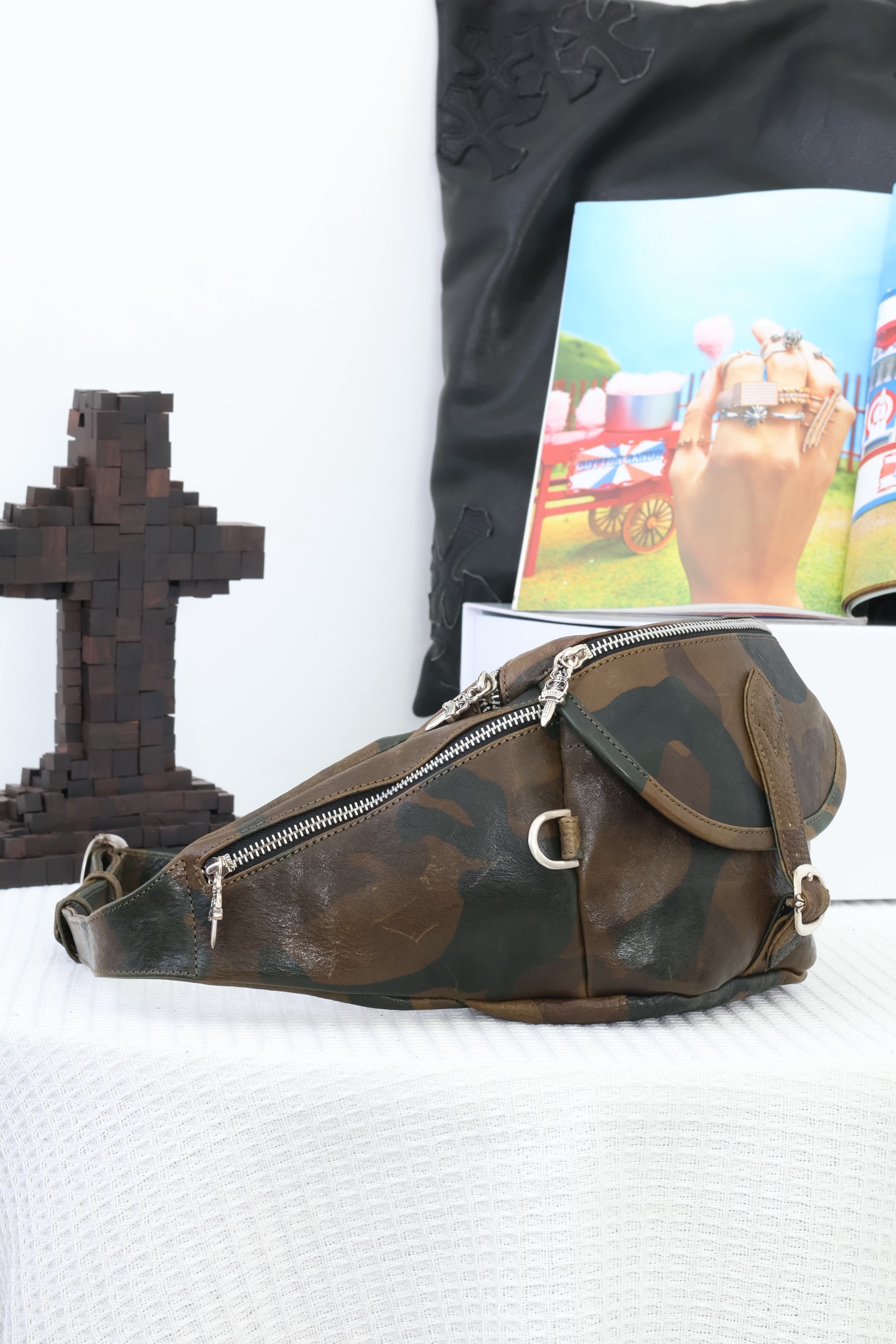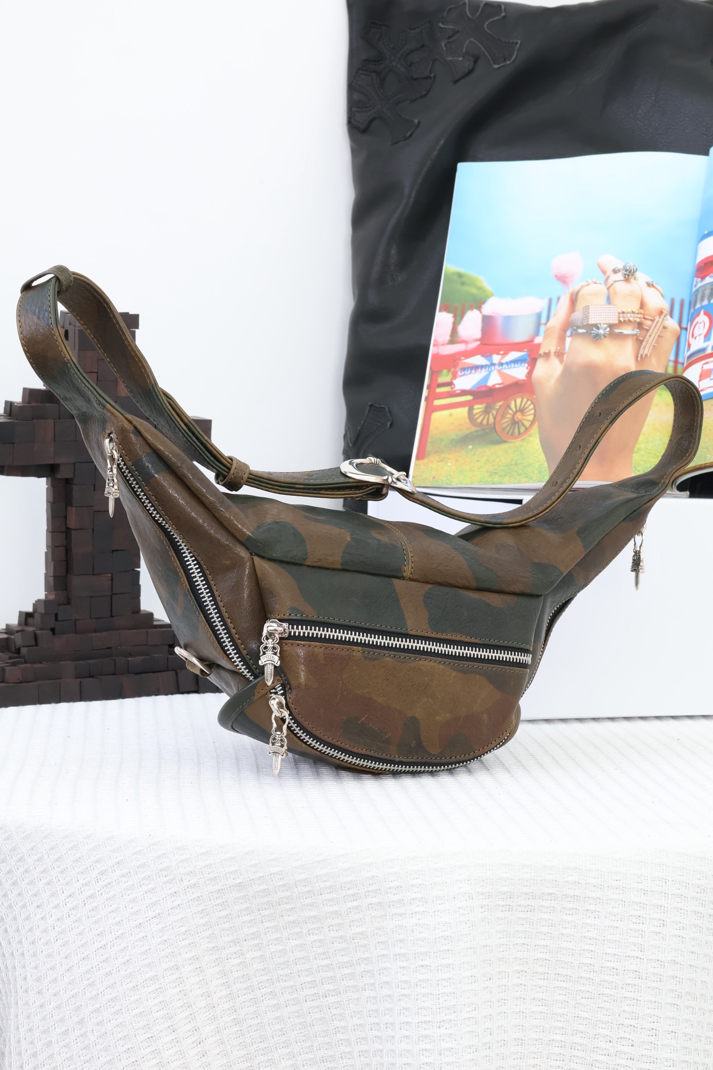 这款包包是AAAAA 1:1 质量 (非常棒). 使用了和原版一模一样的材料. 商标部分也保持了和克罗心/Chrome Hearts一样. 图片拍摄是实物包包拍摄, 您所收到的实物保证和我们图片一模一样.