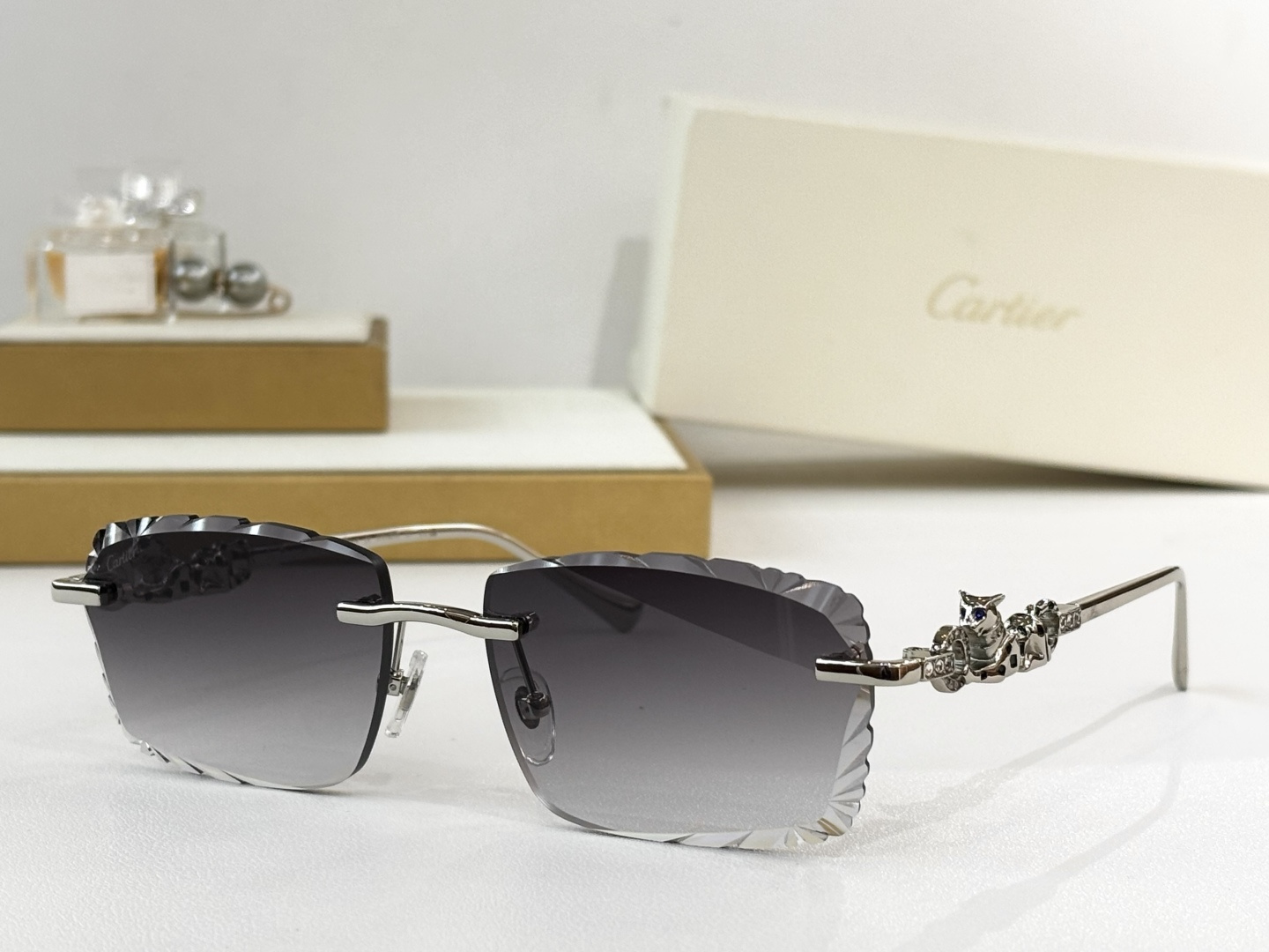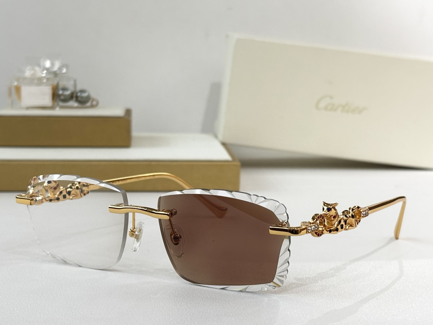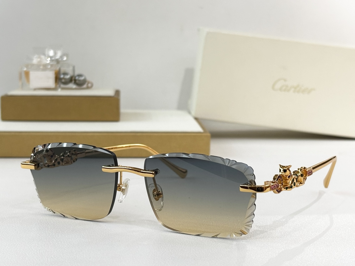 这款太阳眼镜是AAAAA 1:1 质量 (非常棒). 使用了和原版一模一样的材料. 商标部分也保持了和卡地亚/Cartier一样. 图片拍摄是实物太阳眼镜拍摄, 您所收到的实物保证和我们图片一模一样.