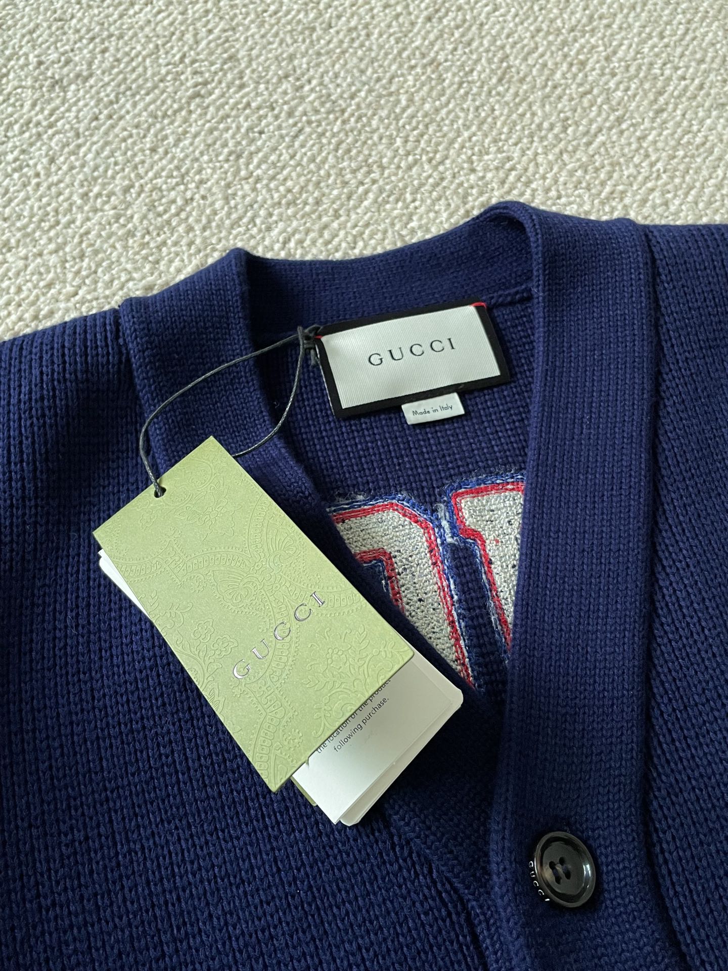 这款衣服是AAAAA 1:1 质量 (非常棒). 使用了和原版一模一样的材料. 商标部分也保持了和古奇/Gucci一样. 图片拍摄是实物衣服拍摄, 您所收到的实物保证和我们图片一模一样.