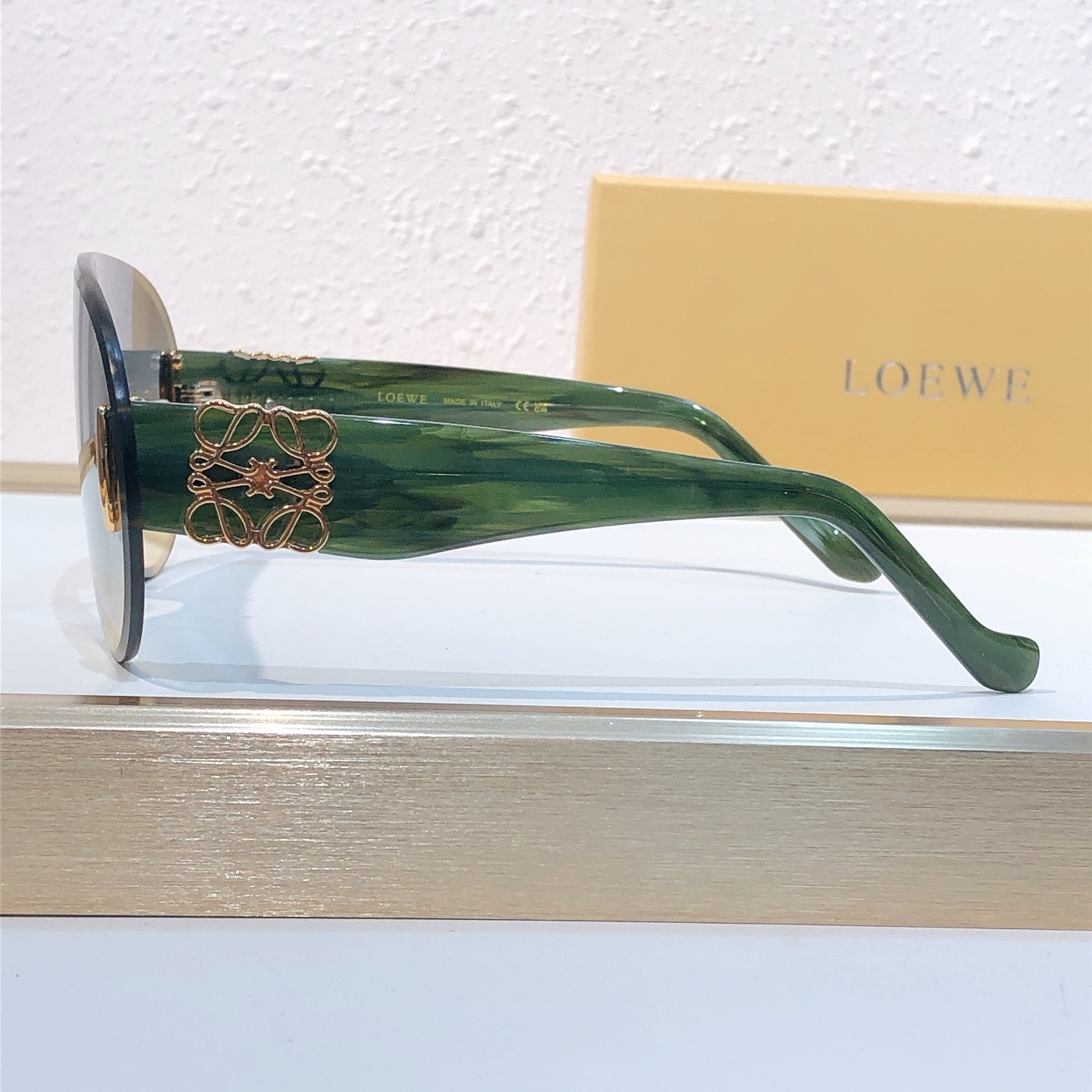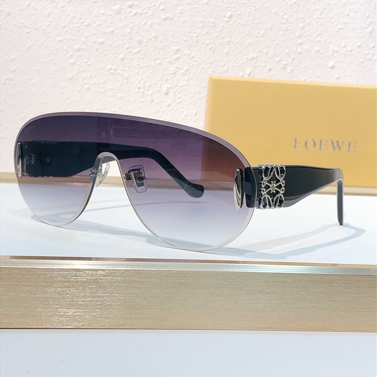 这款太阳眼镜是AAAAA 1:1 质量 (非常棒). 使用了和原版一模一样的材料. 商标部分也保持了和罗意威/Loewe一样. 图片拍摄是实物太阳眼镜拍摄, 您所收到的实物保证和我们图片一模一样.