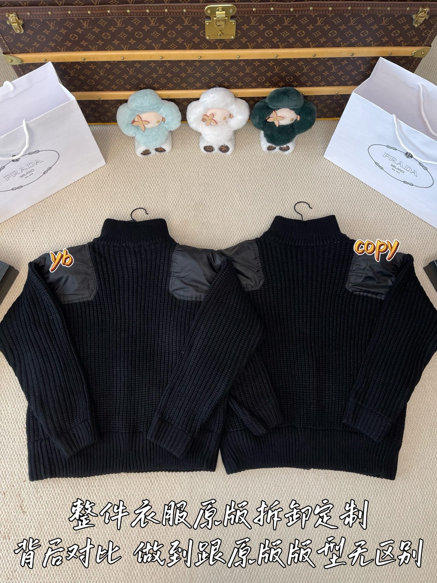 这款衣服是AAAAA 1:1 质量 (非常棒). 使用了和原版一模一样的材料. 商标部分也保持了和普拉达/Prada一样. 图片拍摄是实物衣服拍摄, 您所收到的实物保证和我们图片一模一样.