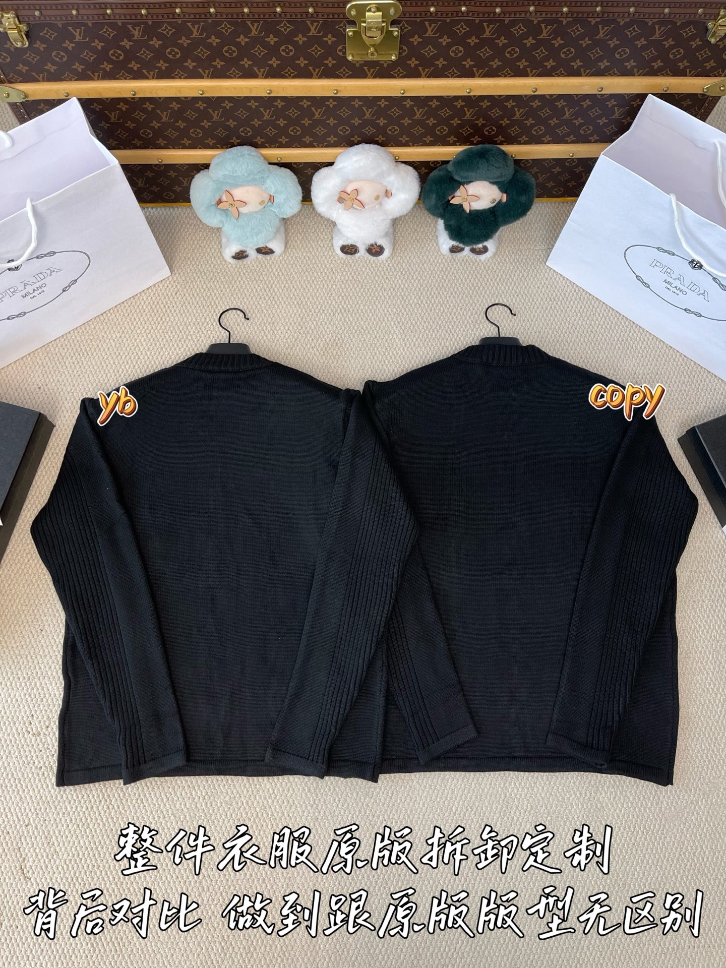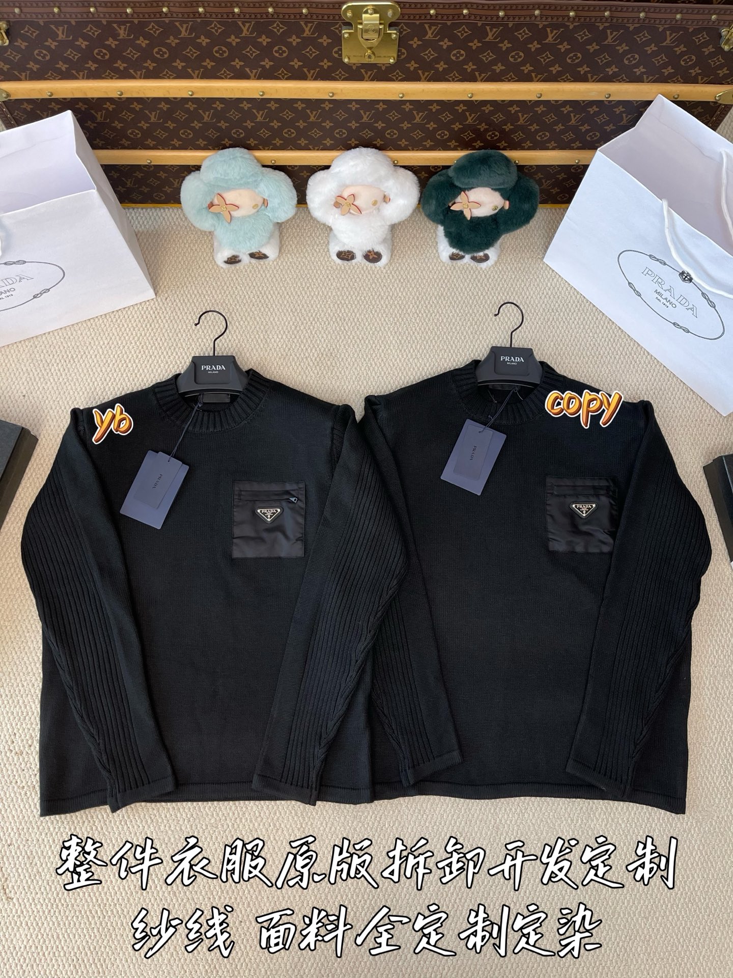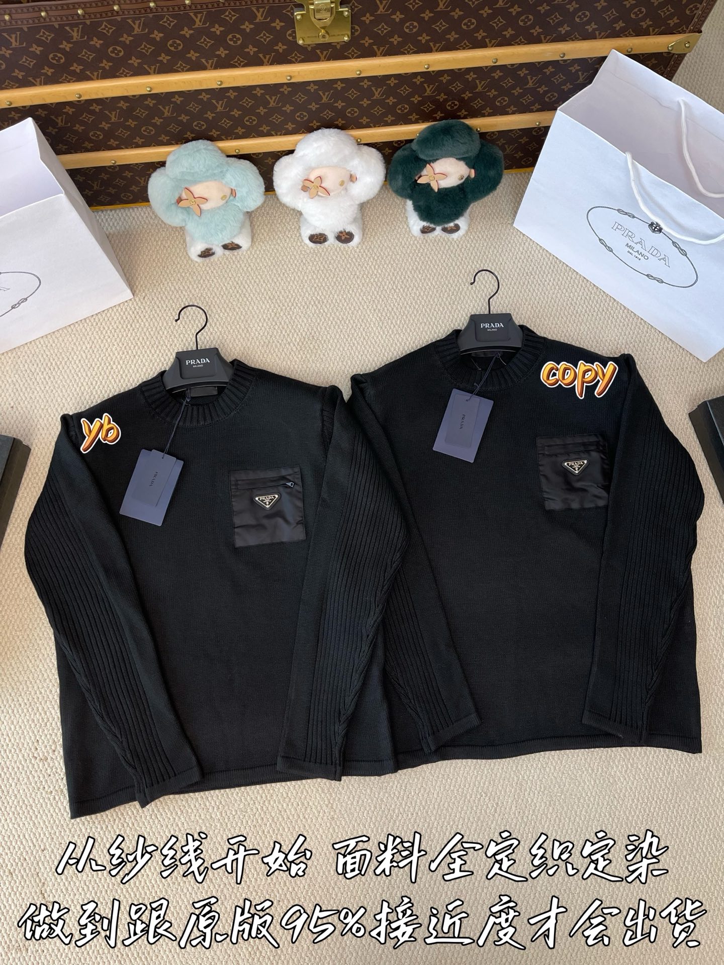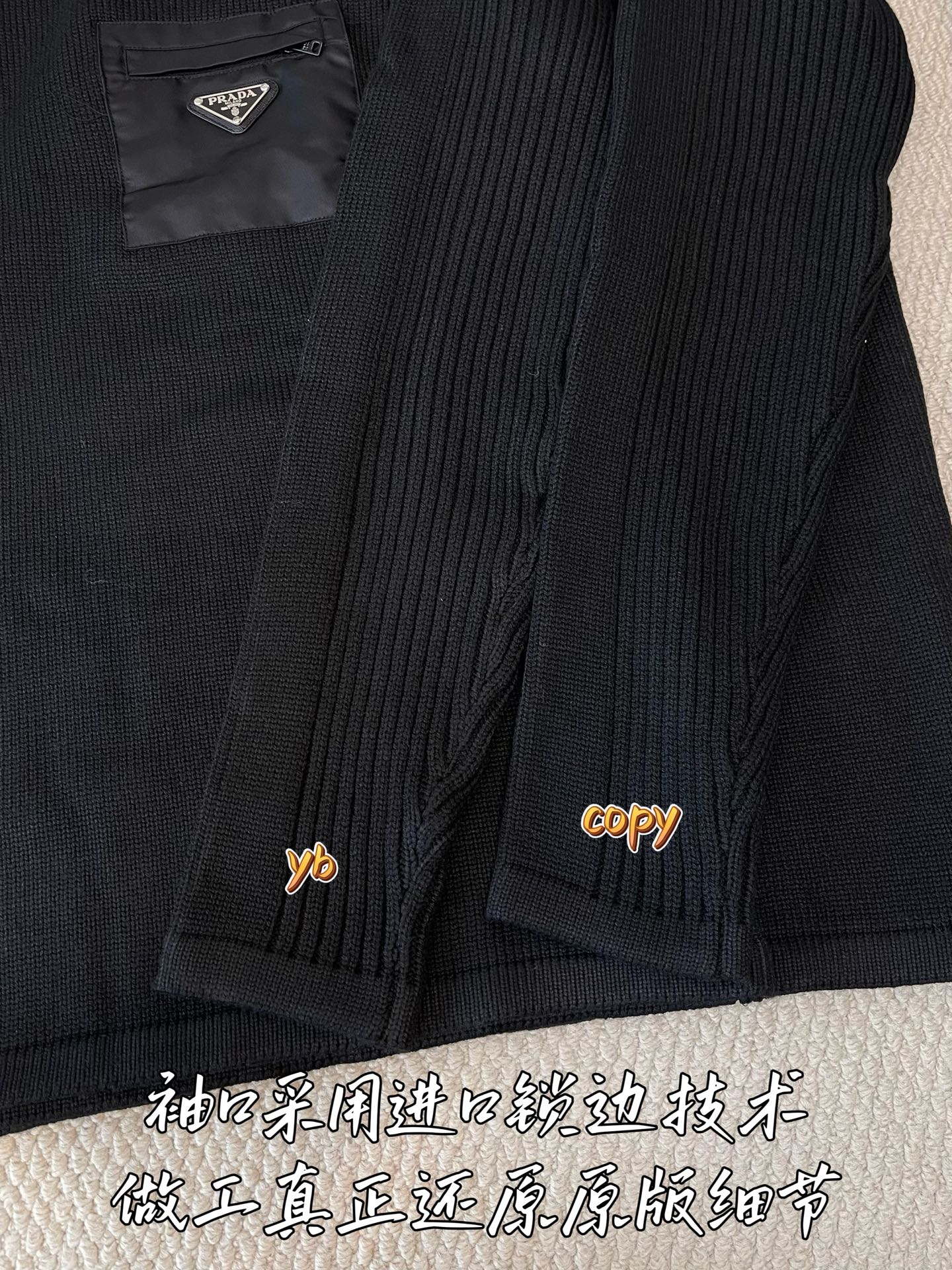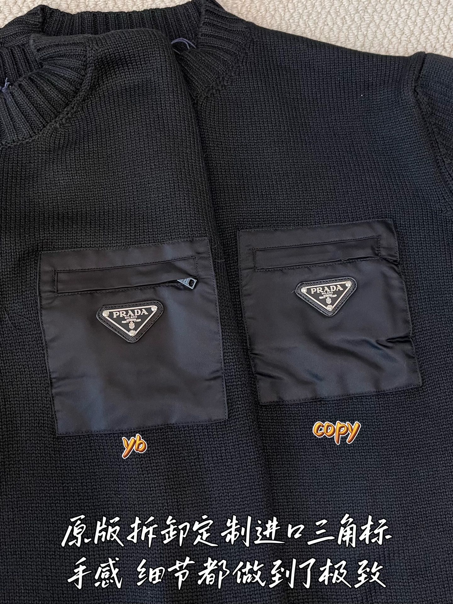 这款衣服是AAAAA 1:1 质量 (非常棒). 使用了和原版一模一样的材料. 商标部分也保持了和普拉达/Prada一样. 图片拍摄是实物衣服拍摄, 您所收到的实物保证和我们图片一模一样.