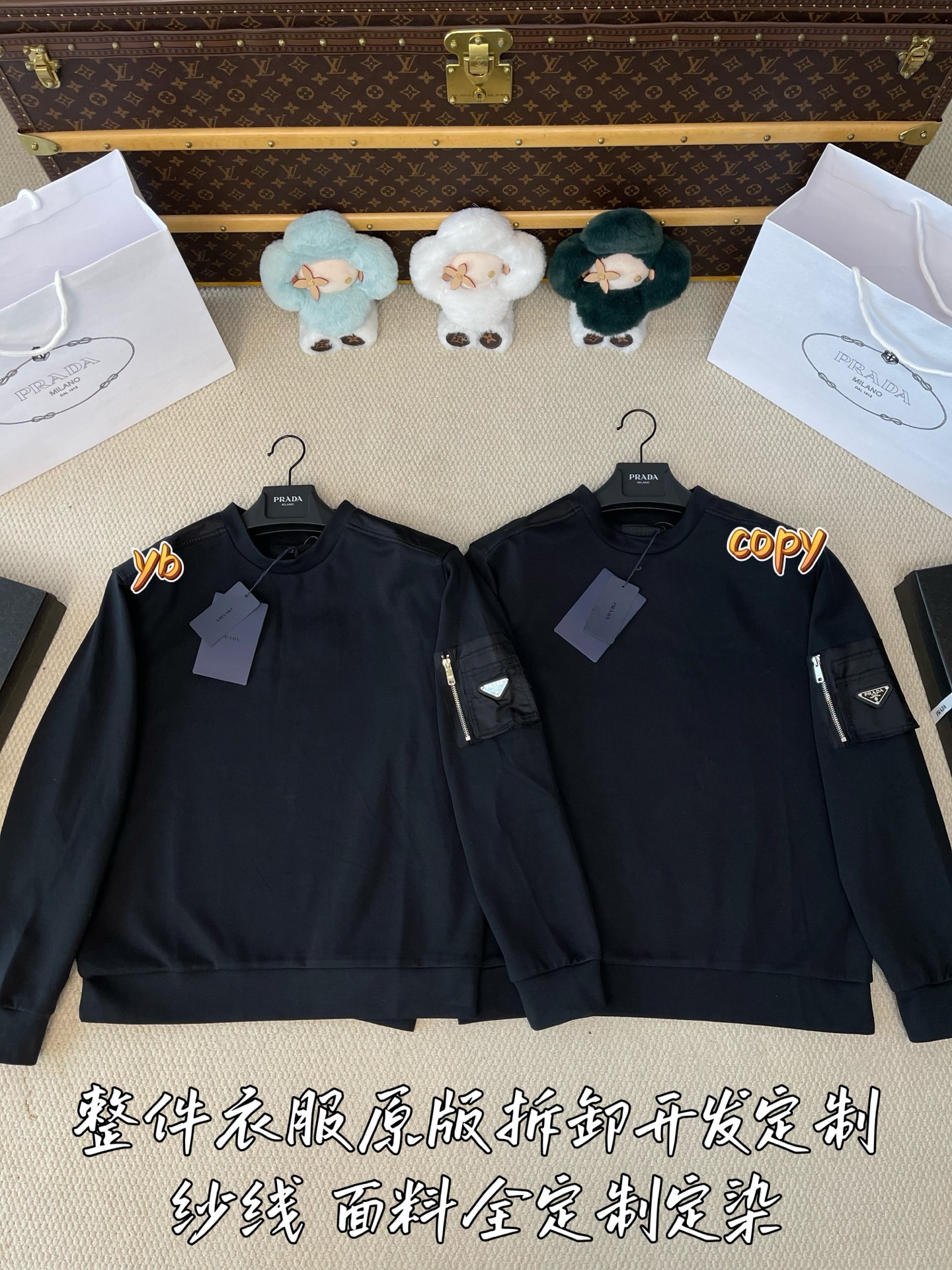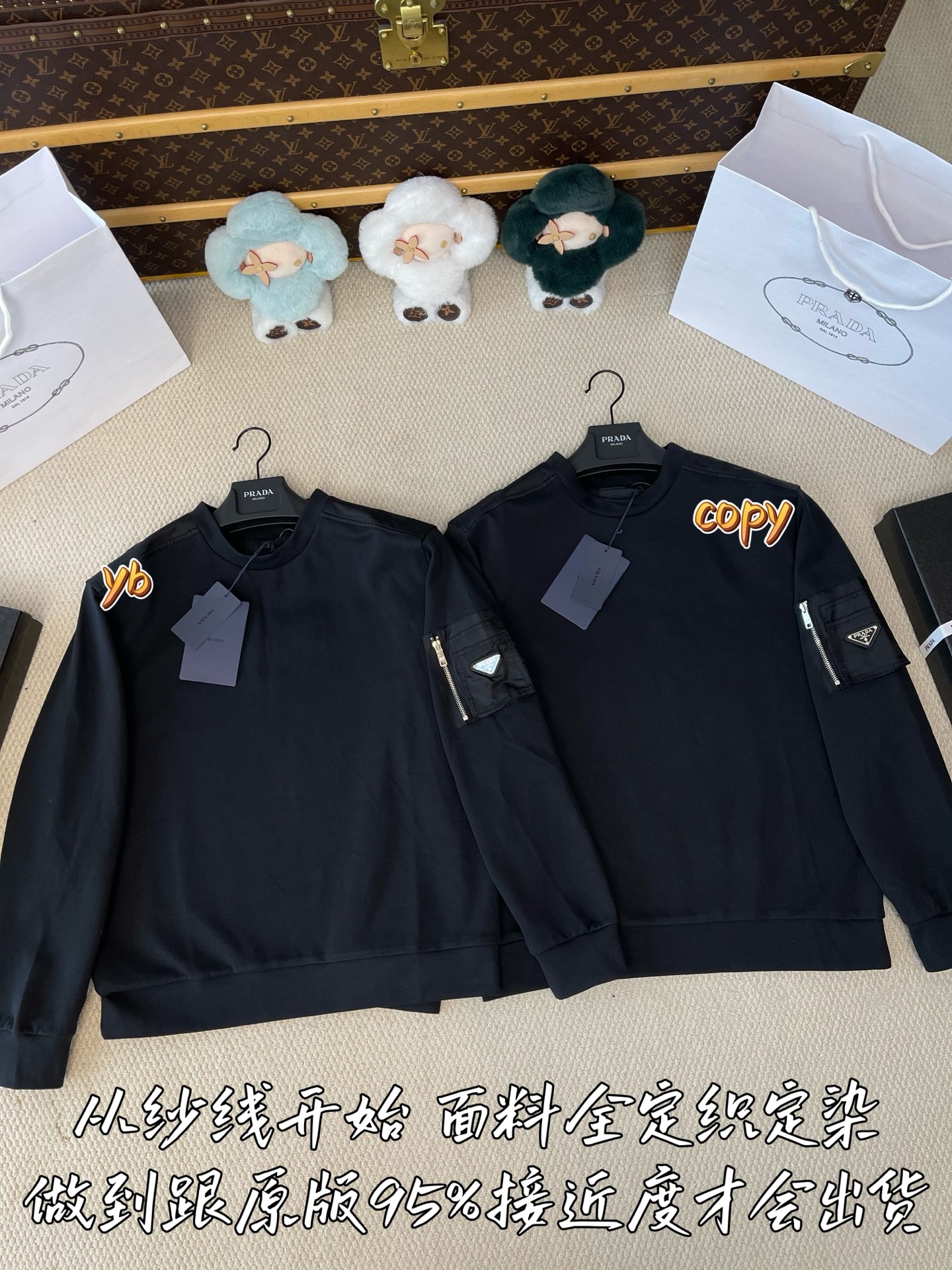 这款衣服是AAAAA 1:1 质量 (非常棒). 使用了和原版一模一样的材料. 商标部分也保持了和普拉达/Prada一样. 图片拍摄是实物衣服拍摄, 您所收到的实物保证和我们图片一模一样.