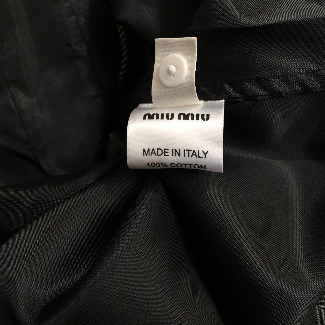 这款衣服是AAAAA 1:1 质量 (非常棒). 使用了和原版一模一样的材料. 商标部分也保持了和缪缪/Miu Miu一样. 图片拍摄是实物衣服拍摄, 您所收到的实物保证和我们图片一模一样.