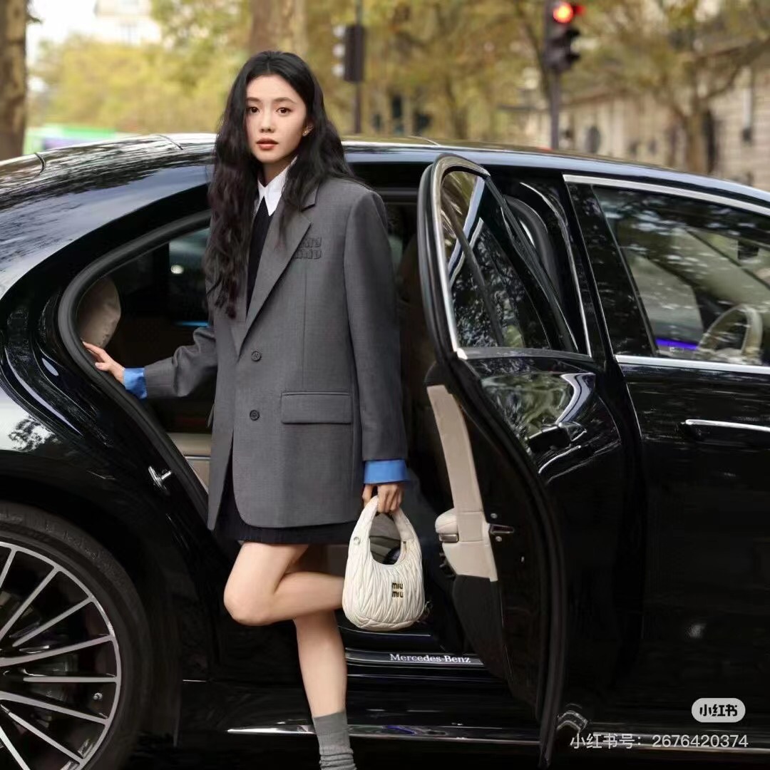 这款衣服是AAAAA 1:1 质量 (非常棒). 使用了和原版一模一样的材料. 商标部分也保持了和缪缪/Miu Miu一样. 图片拍摄是实物衣服拍摄, 您所收到的实物保证和我们图片一模一样.