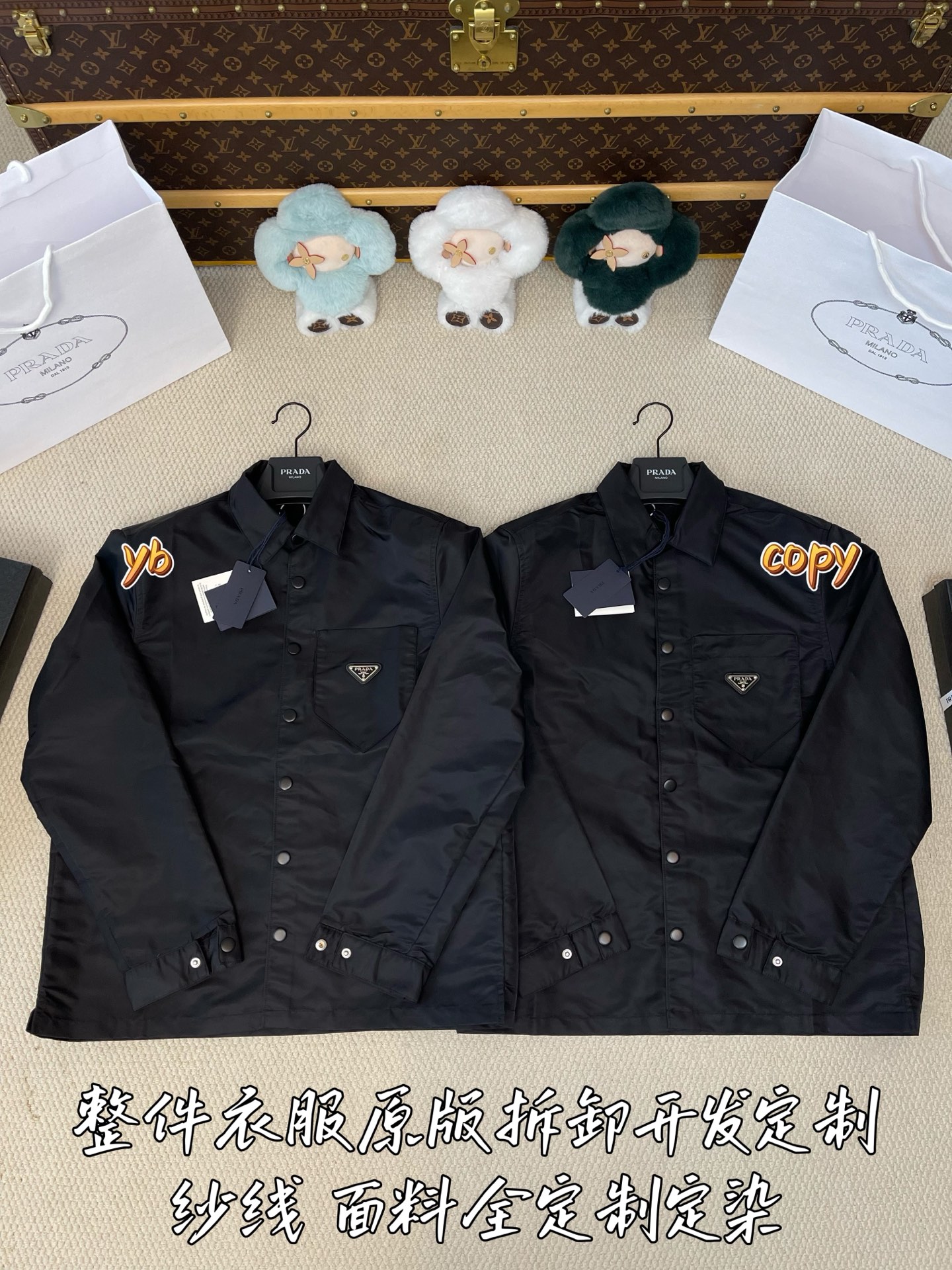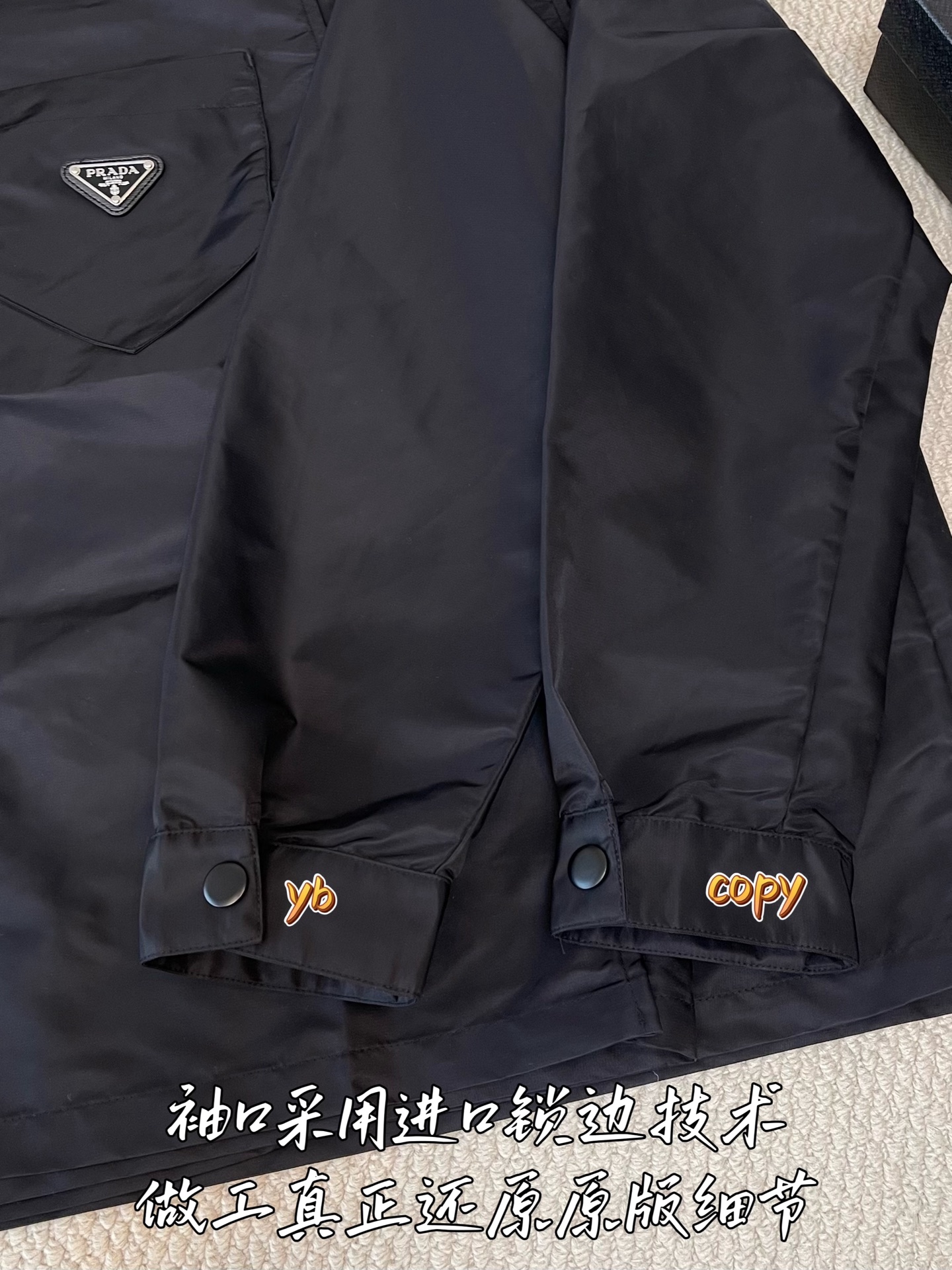 这款衣服是AAAAA 1:1 质量 (非常棒). 使用了和原版一模一样的材料. 商标部分也保持了和普拉达/Prada一样. 图片拍摄是实物衣服拍摄, 您所收到的实物保证和我们图片一模一样.