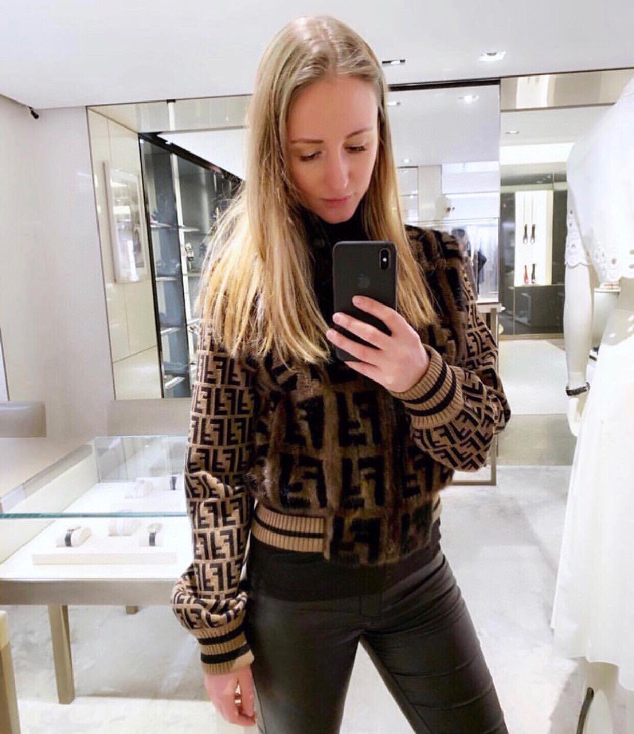 这款衣服是AAAAA 1:1 质量 (非常棒). 使用了和原版一模一样的材料. 商标部分也保持了和芬迪/Fendi一样. 图片拍摄是实物衣服拍摄, 您所收到的实物保证和我们图片一模一样.