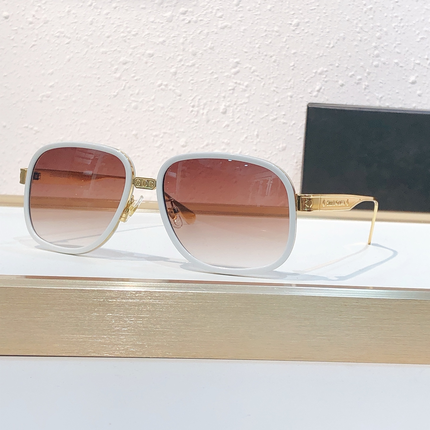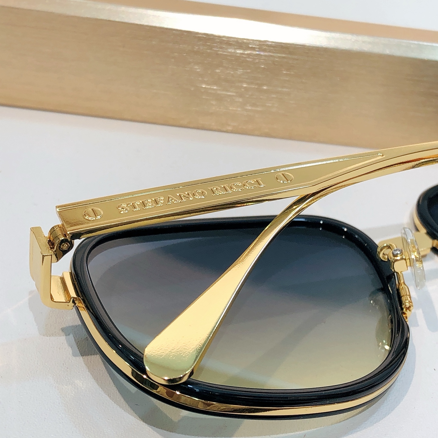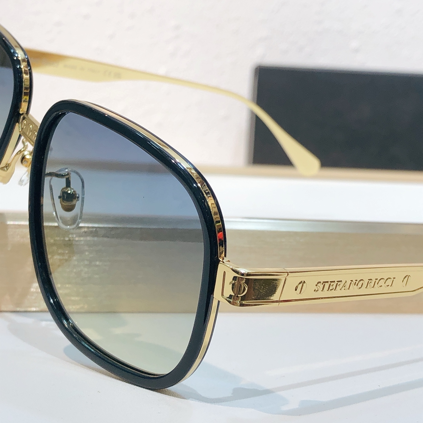 这款太阳眼镜是AAAAA 1:1 质量 (非常棒). 使用了和原版一模一样的材料. 商标部分也保持了和史蒂芬劳.尼治/Stefano Ricci一样. 图片拍摄是实物太阳眼镜拍摄, 您所收到的实物保证和我们图片一模一样.