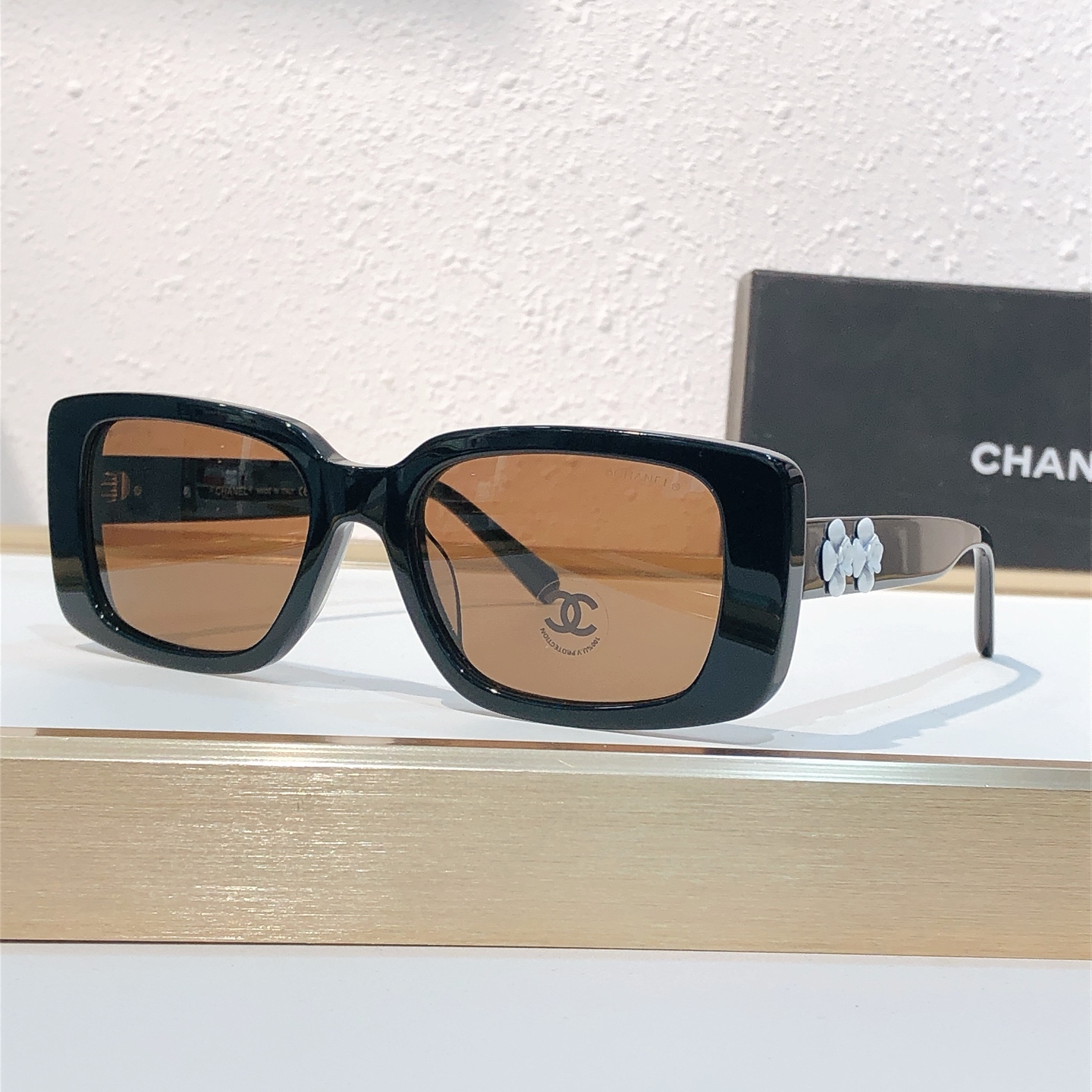 这款太阳眼镜是AAAAA 1:1 质量 (非常棒). 使用了和原版一模一样的材料. 商标部分也保持了和香奈儿/Chanel一样. 图片拍摄是实物太阳眼镜拍摄, 您所收到的实物保证和我们图片一模一样.