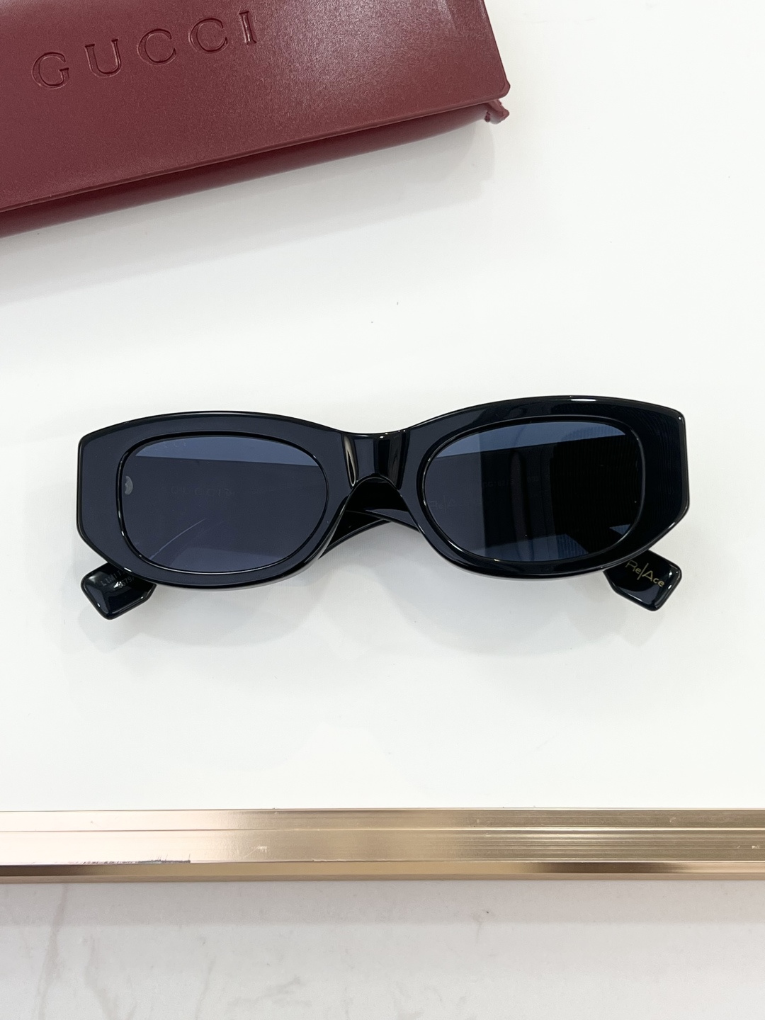 这款太阳眼镜是AAAAA 1:1 质量 (非常棒). 使用了和原版一模一样的材料. 商标部分也保持了和古奇/Gucci一样. 图片拍摄是实物太阳眼镜拍摄, 您所收到的实物保证和我们图片一模一样.