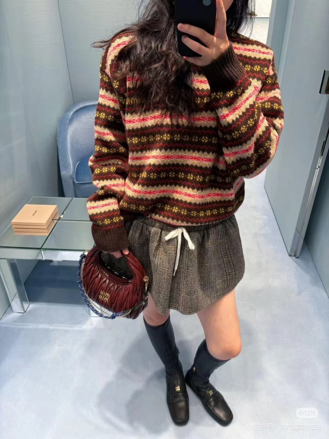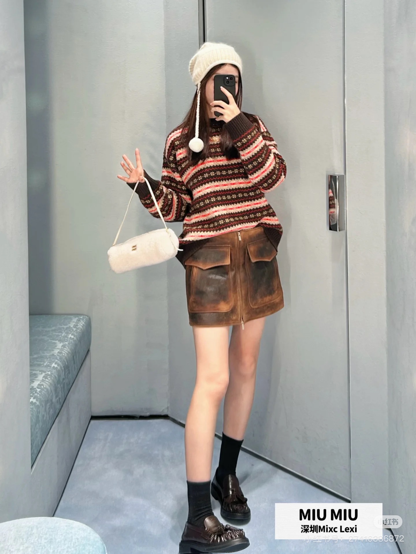 这款衣服是AAAAA 1:1 质量 (非常棒). 使用了和原版一模一样的材料. 商标部分也保持了和缪缪/Miu Miu一样. 图片拍摄是实物衣服拍摄, 您所收到的实物保证和我们图片一模一样.