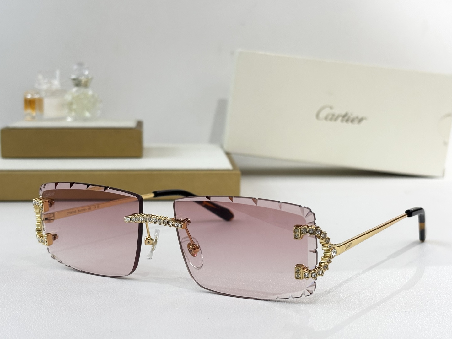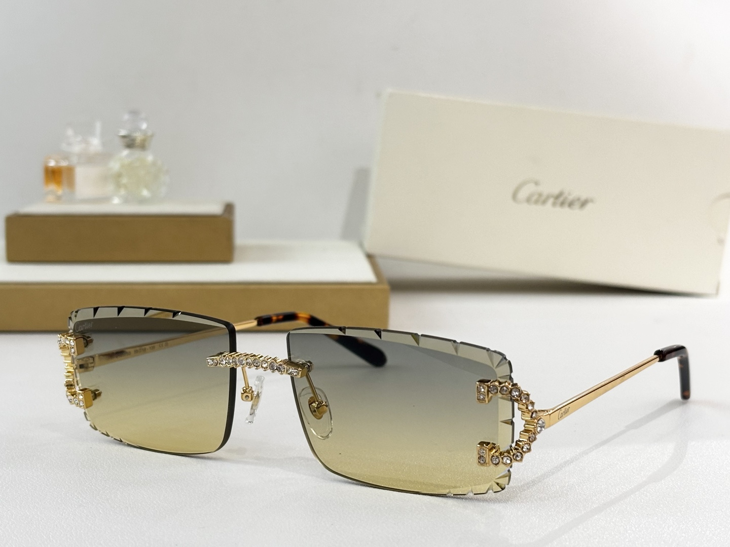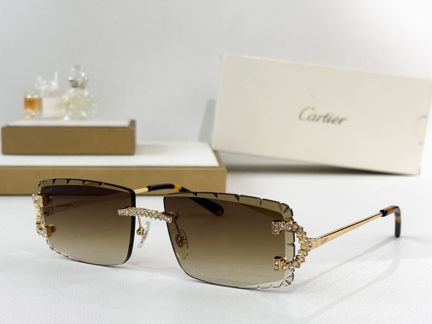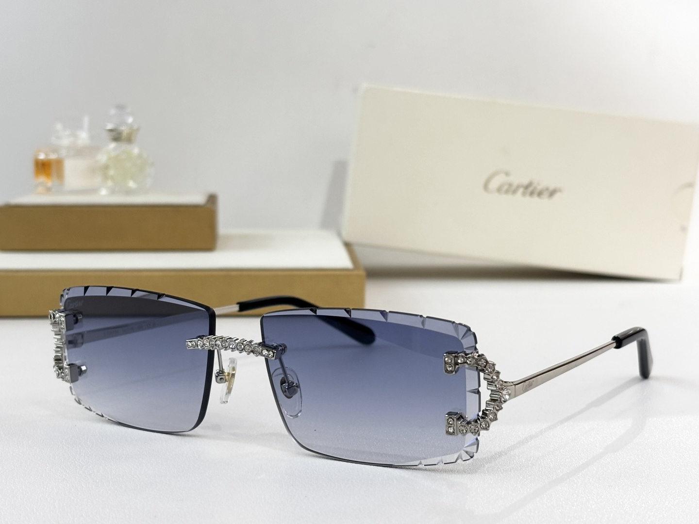 这款太阳眼镜是AAAAA 1:1 质量 (非常棒). 使用了和原版一模一样的材料. 商标部分也保持了和卡地亚/Cartier一样. 图片拍摄是实物太阳眼镜拍摄, 您所收到的实物保证和我们图片一模一样.