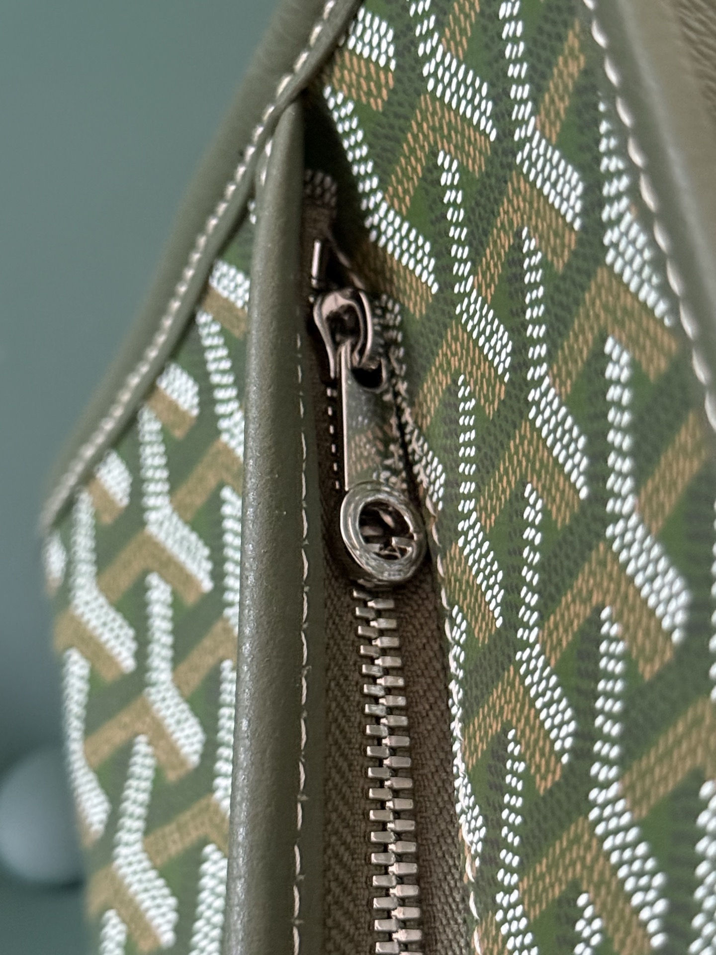 这款包包是AAAAA 1:1 质量 (非常棒). 使用了和原版一模一样的材料. 商标部分也保持了和Goyard一样. 图片拍摄是实物包包拍摄, 您所收到的实物保证和我们图片一模一样.