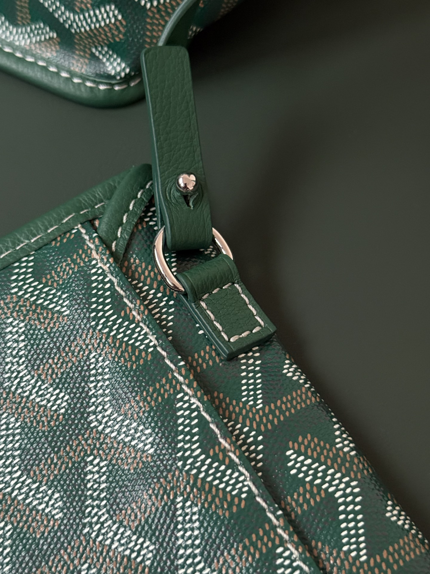 这款包包是AAAAA 1:1 质量 (非常棒). 使用了和原版一模一样的材料. 商标部分也保持了和Goyard一样. 图片拍摄是实物包包拍摄, 您所收到的实物保证和我们图片一模一样.