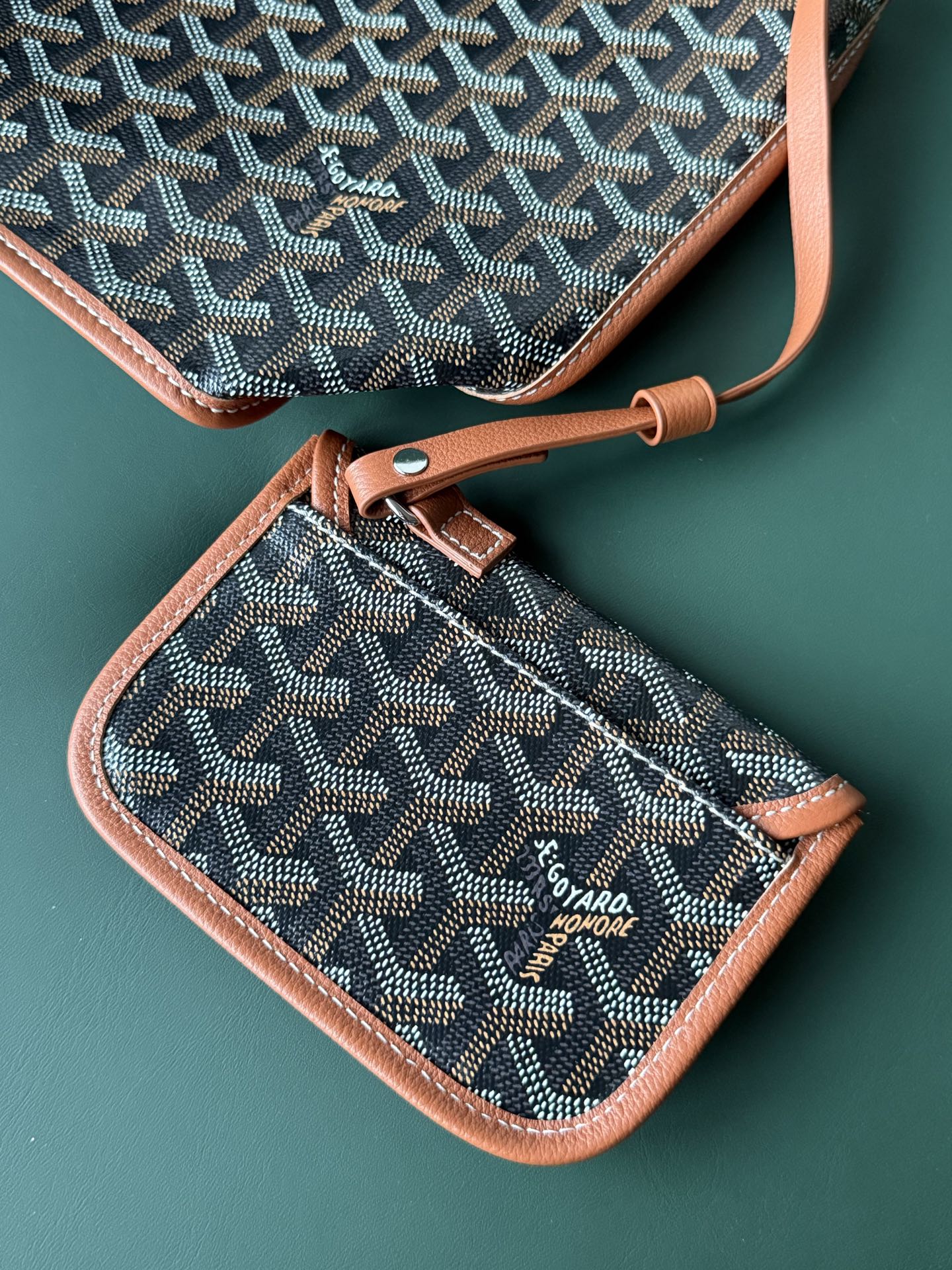 这款包包是AAAAA 1:1 质量 (非常棒). 使用了和原版一模一样的材料. 商标部分也保持了和Goyard一样. 图片拍摄是实物包包拍摄, 您所收到的实物保证和我们图片一模一样.