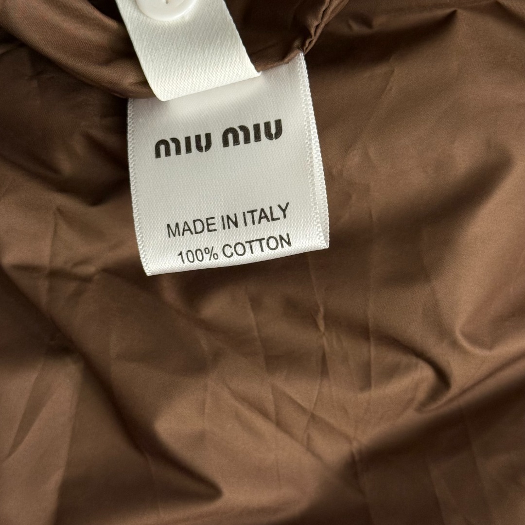 这款衣服是AAAAA 1:1 质量 (非常棒). 使用了和原版一模一样的材料. 商标部分也保持了和缪缪/Miu Miu一样. 图片拍摄是实物衣服拍摄, 您所收到的实物保证和我们图片一模一样.