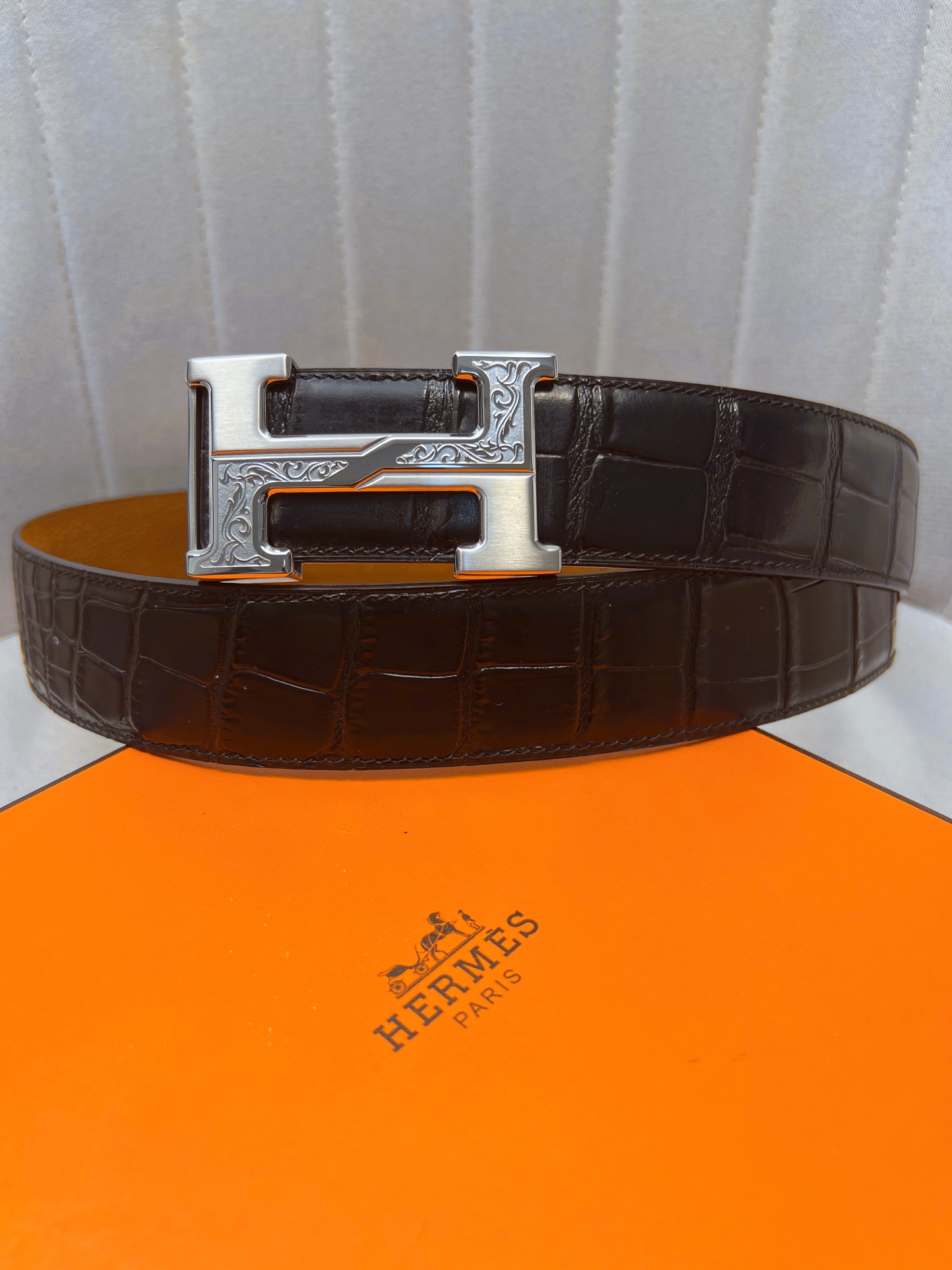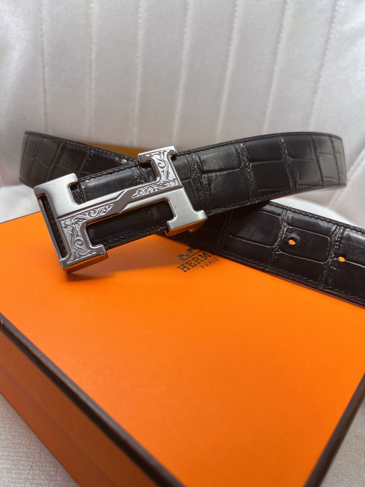 这款皮带是AAAAA 1:1 质量 (非常棒). 使用了和原版一模一样的材料. 商标部分也保持了和爱马仕/Hermes一样. 图片拍摄是实物皮带拍摄, 您所收到的实物保证和我们图片一模一样.