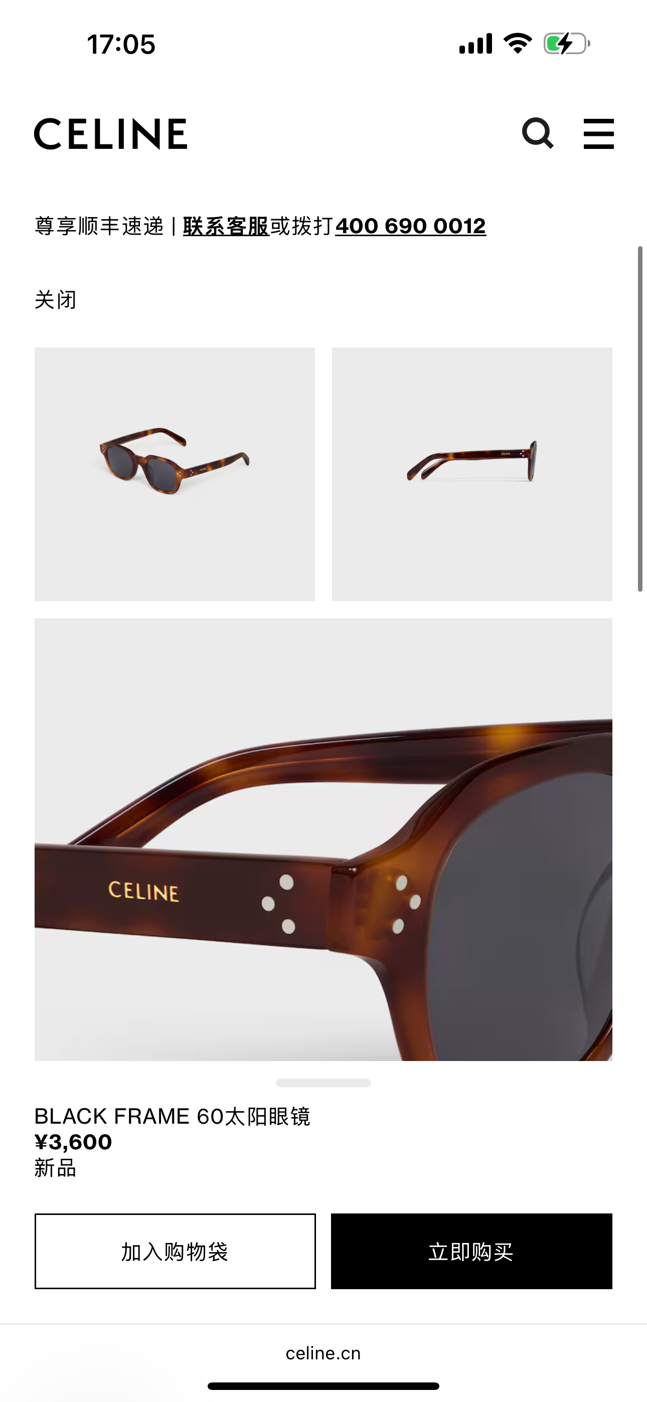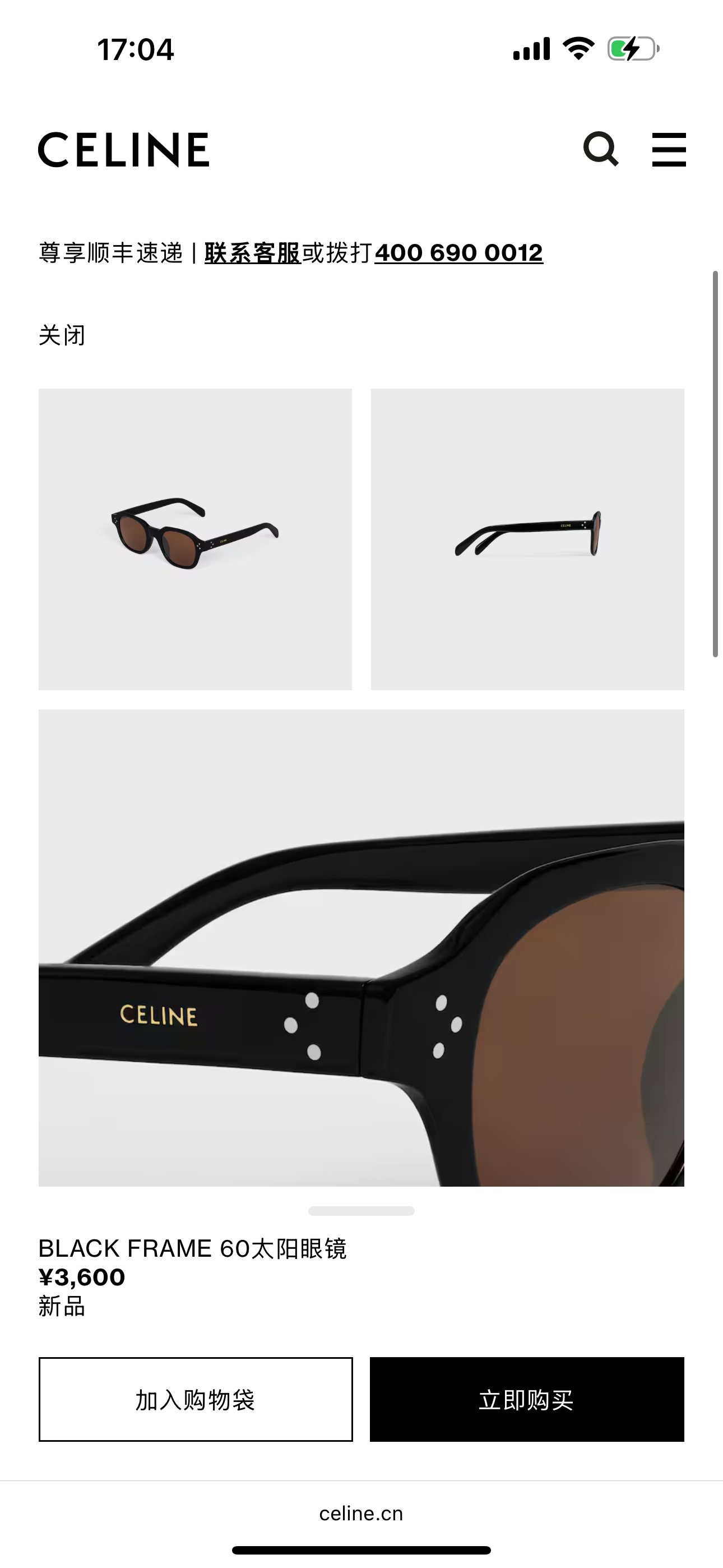 这款太阳眼镜是AAAAA 1:1 质量 (非常棒). 使用了和原版一模一样的材料. 商标部分也保持了和思琳/Celine一样. 图片拍摄是实物太阳眼镜拍摄, 您所收到的实物保证和我们图片一模一样.