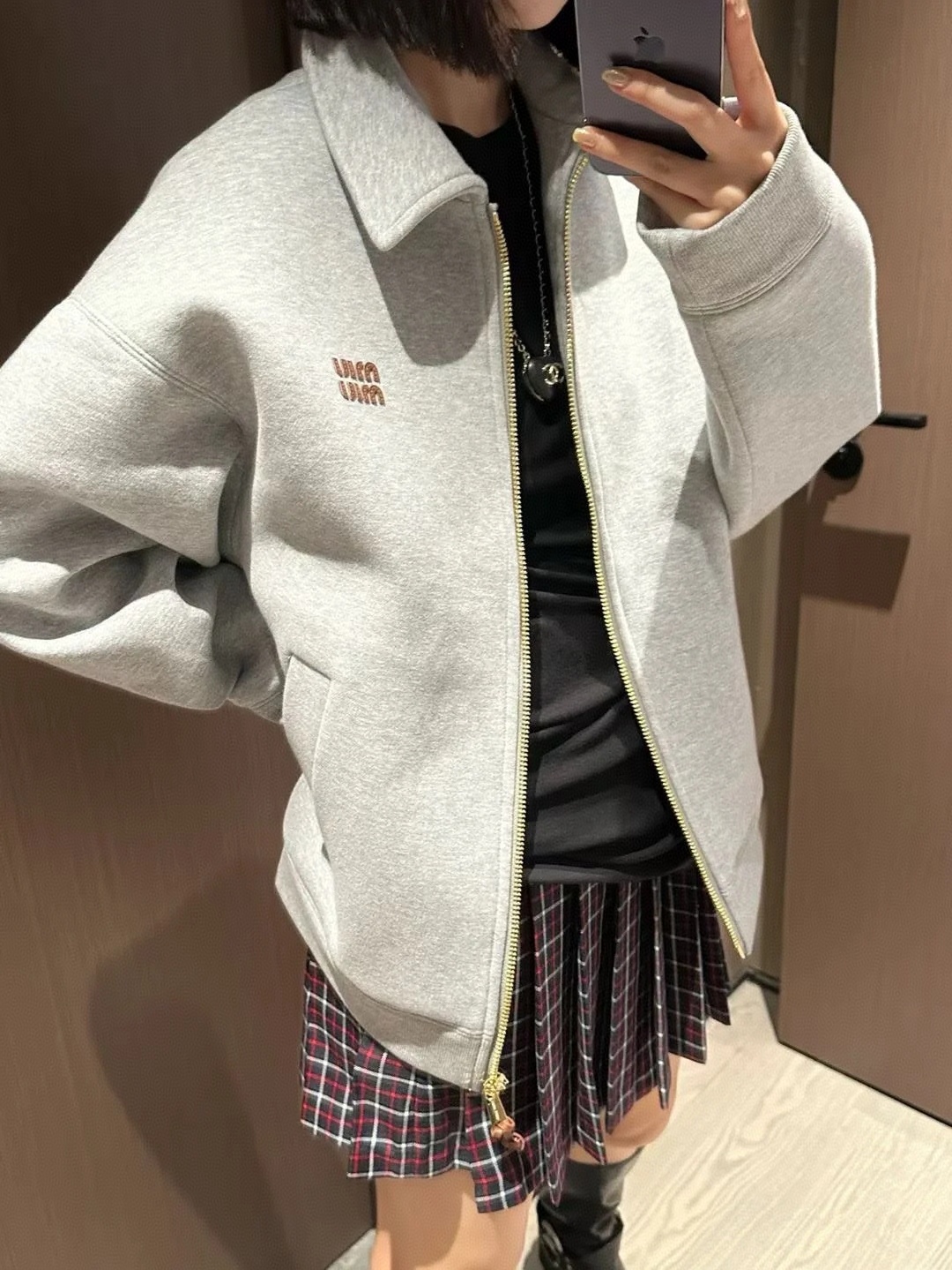 这款衣服是AAAAA 1:1 质量 (非常棒). 使用了和原版一模一样的材料. 商标部分也保持了和缪缪/Miu Miu一样. 图片拍摄是实物衣服拍摄, 您所收到的实物保证和我们图片一模一样.