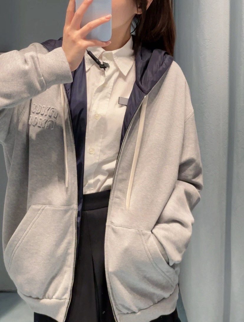 这款衣服是AAAAA 1:1 质量 (非常棒). 使用了和原版一模一样的材料. 商标部分也保持了和缪缪/Miu Miu一样. 图片拍摄是实物衣服拍摄, 您所收到的实物保证和我们图片一模一样.