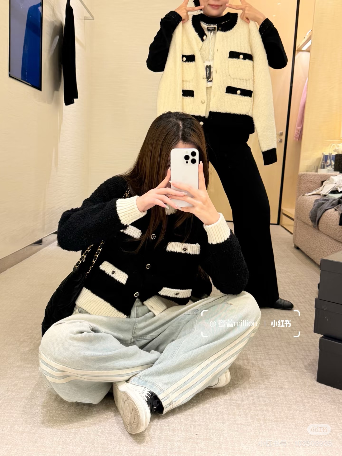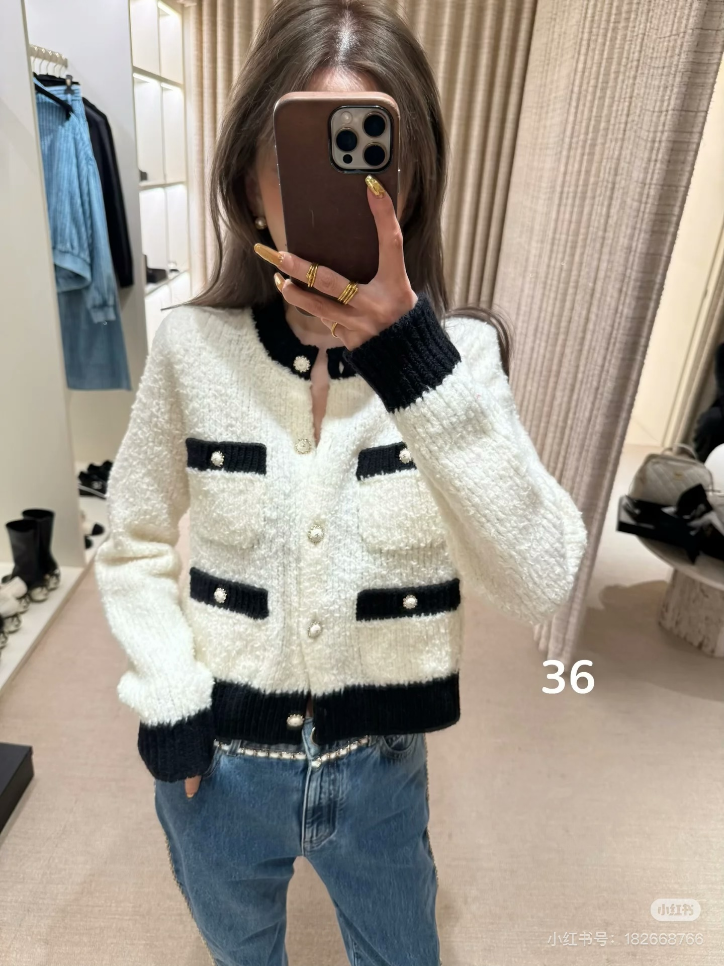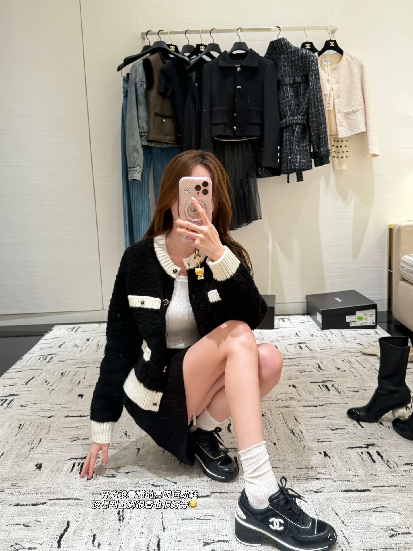 这款衣服是AAAAA 1:1 质量 (非常棒). 使用了和原版一模一样的材料. 商标部分也保持了和香奈儿/Chanel一样. 图片拍摄是实物衣服拍摄, 您所收到的实物保证和我们图片一模一样.