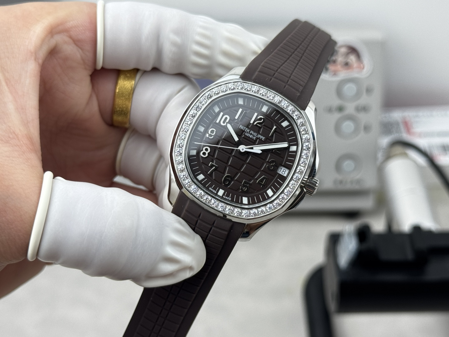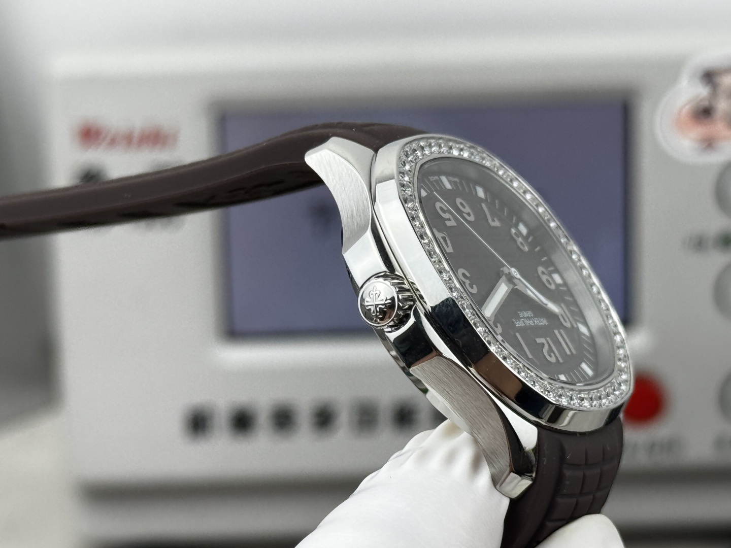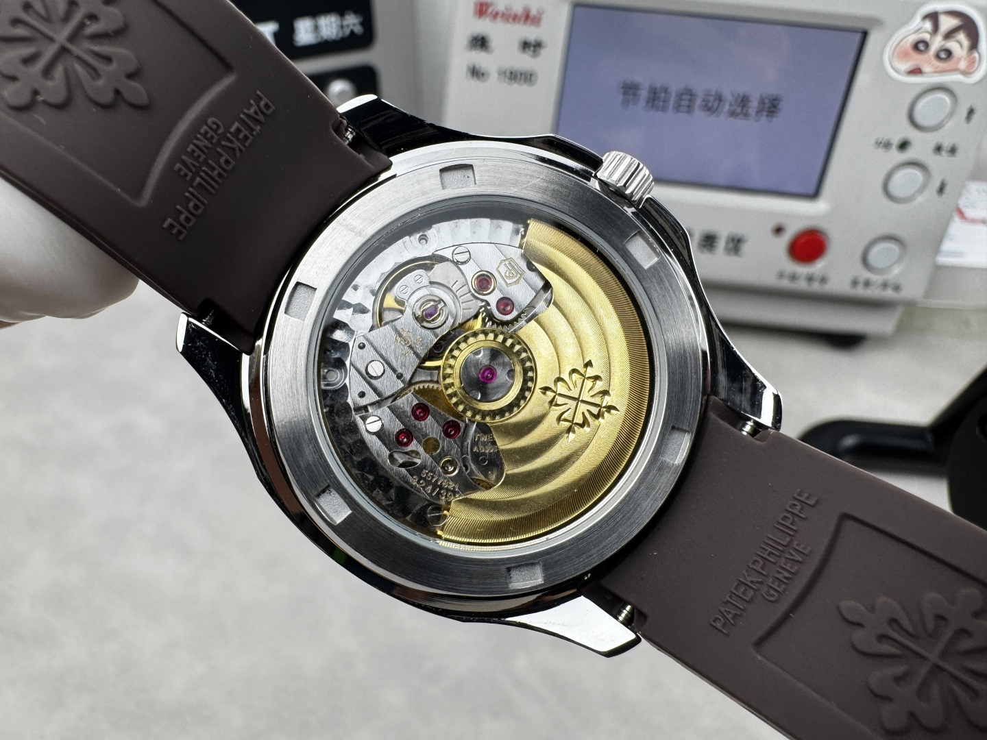 这款手表是AAAAA 1:1 质量 (非常棒). 使用了和原版一模一样的材料. 商标部分也保持了和百达翡丽/Patek Philippe一样. 图片拍摄是实物手表拍摄, 您所收到的实物保证和我们图片一模一样.