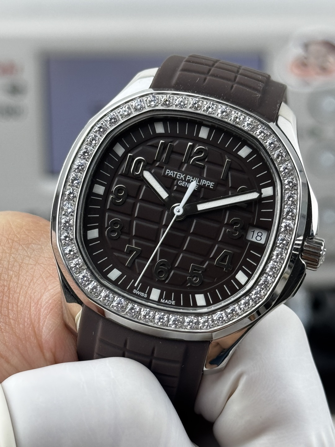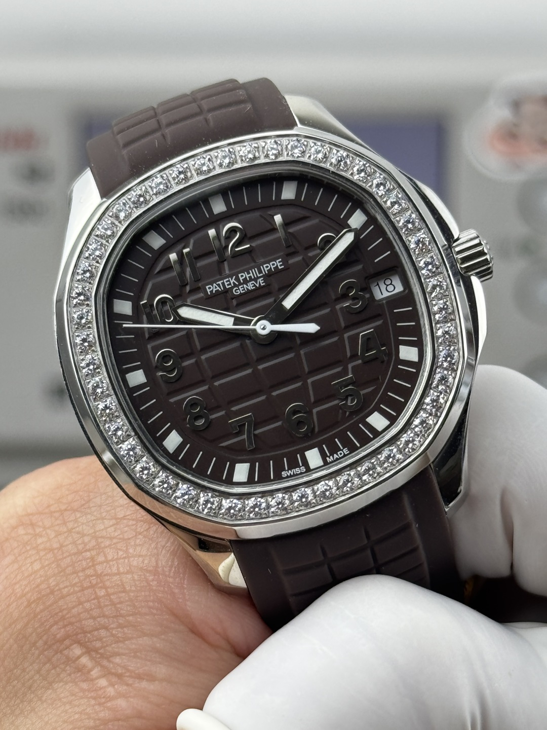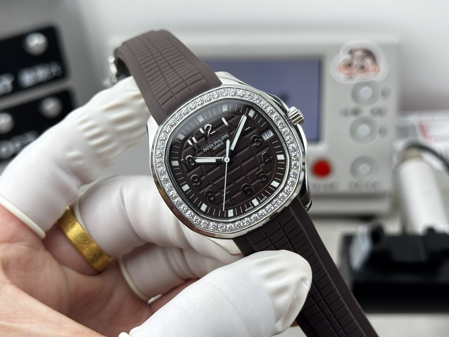 这款手表是AAAAA 1:1 质量 (非常棒). 使用了和原版一模一样的材料. 商标部分也保持了和百达翡丽/Patek Philippe一样. 图片拍摄是实物手表拍摄, 您所收到的实物保证和我们图片一模一样.