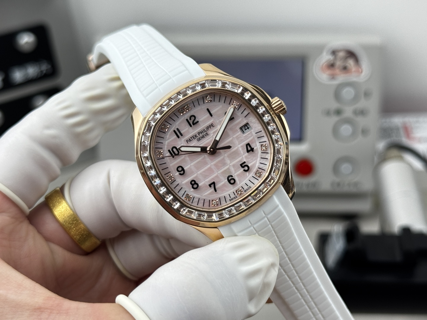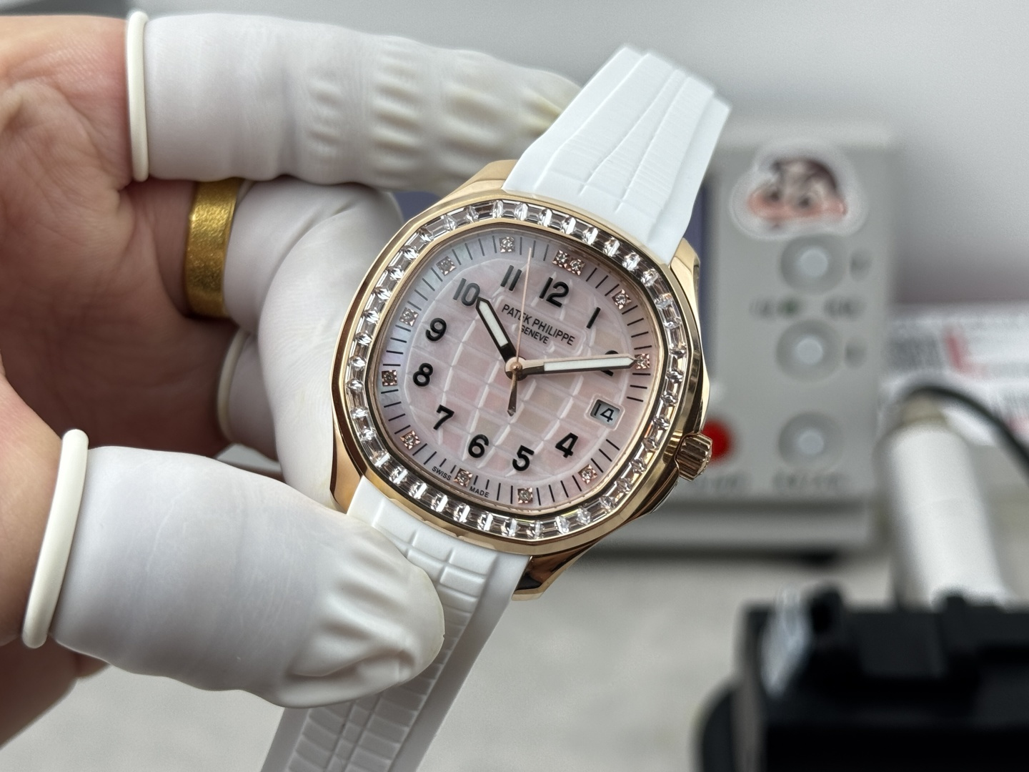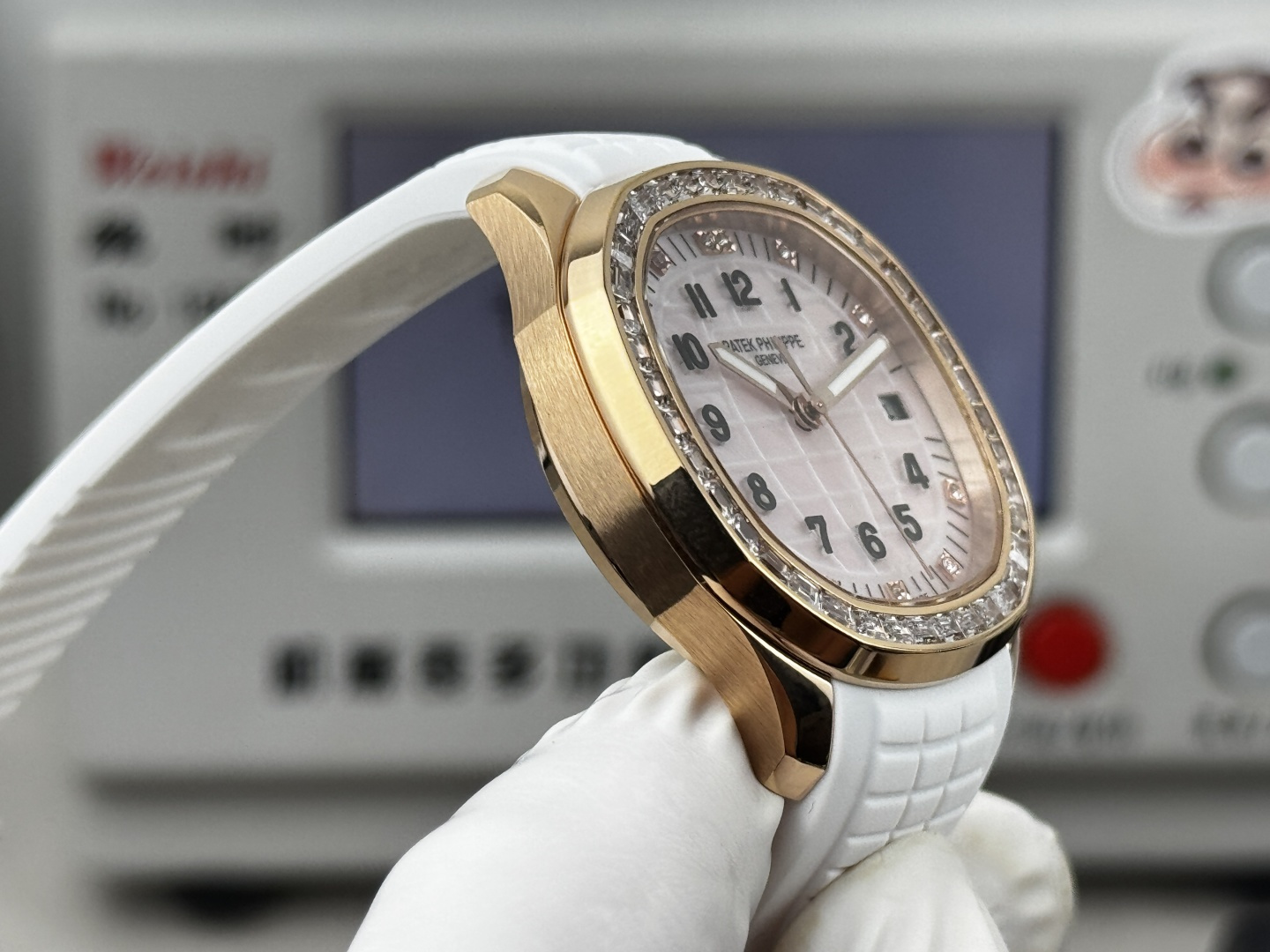 这款手表是AAAAA 1:1 质量 (非常棒). 使用了和原版一模一样的材料. 商标部分也保持了和百达翡丽/Patek Philippe一样. 图片拍摄是实物手表拍摄, 您所收到的实物保证和我们图片一模一样.