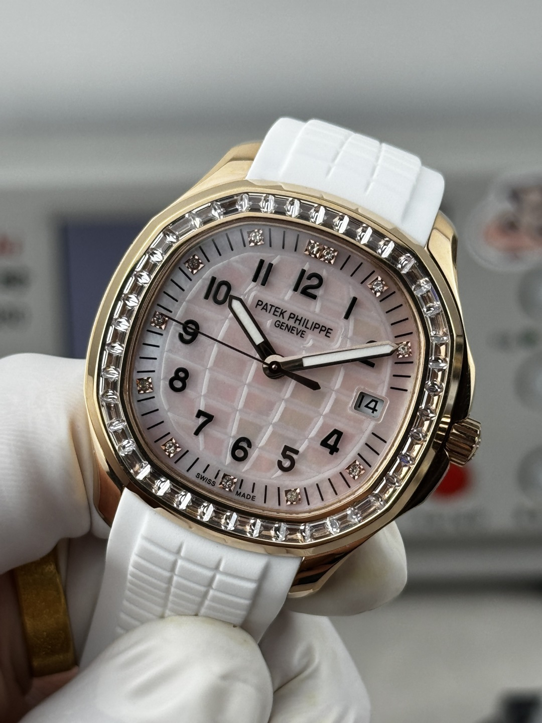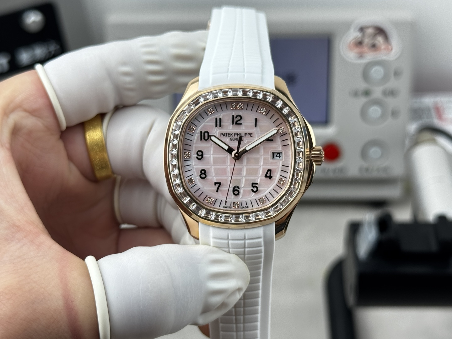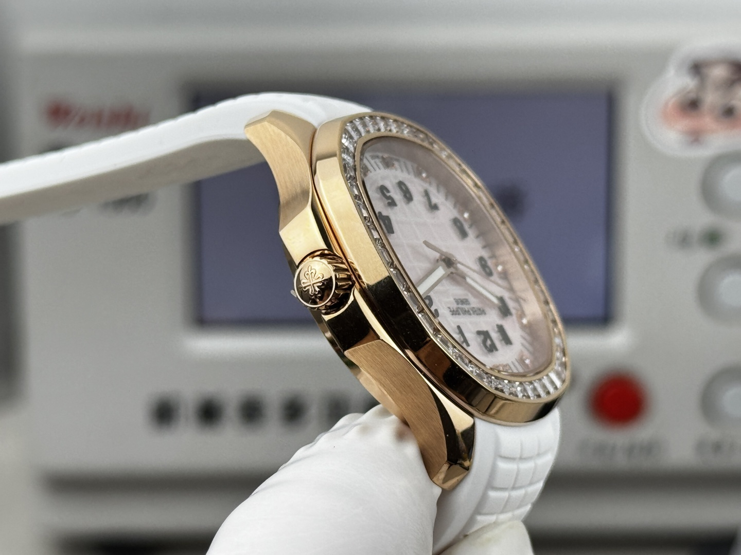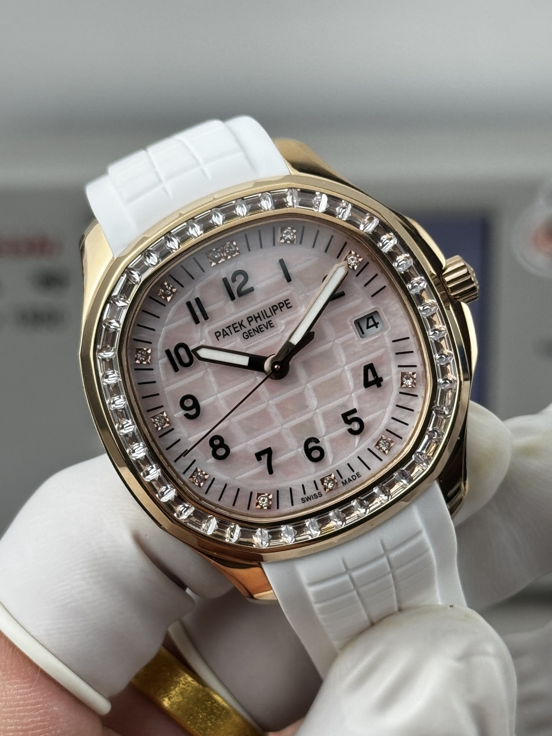 这款手表是AAAAA 1:1 质量 (非常棒). 使用了和原版一模一样的材料. 商标部分也保持了和百达翡丽/Patek Philippe一样. 图片拍摄是实物手表拍摄, 您所收到的实物保证和我们图片一模一样.