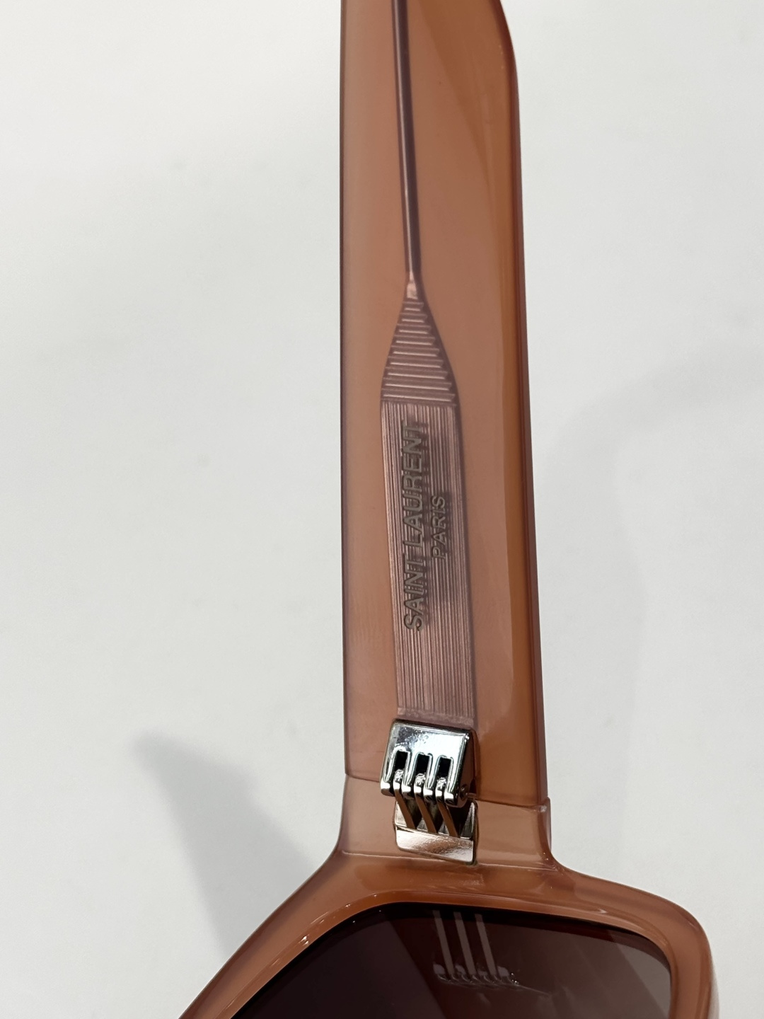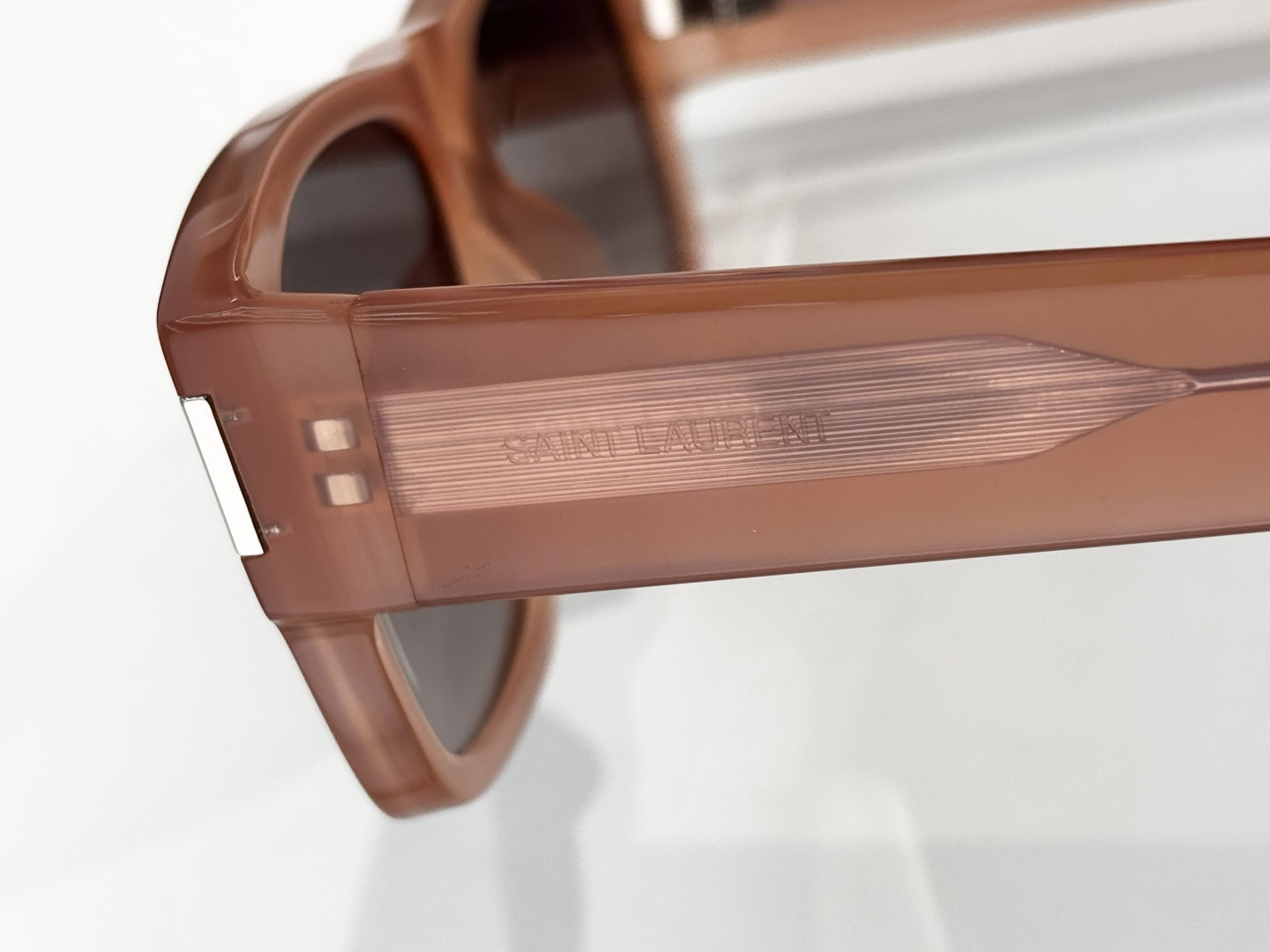 这款太阳眼镜是AAAAA 1:1 质量 (非常棒). 使用了和原版一模一样的材料. 商标部分也保持了和圣罗兰/Saint Laurent一样. 图片拍摄是实物太阳眼镜拍摄, 您所收到的实物保证和我们图片一模一样.