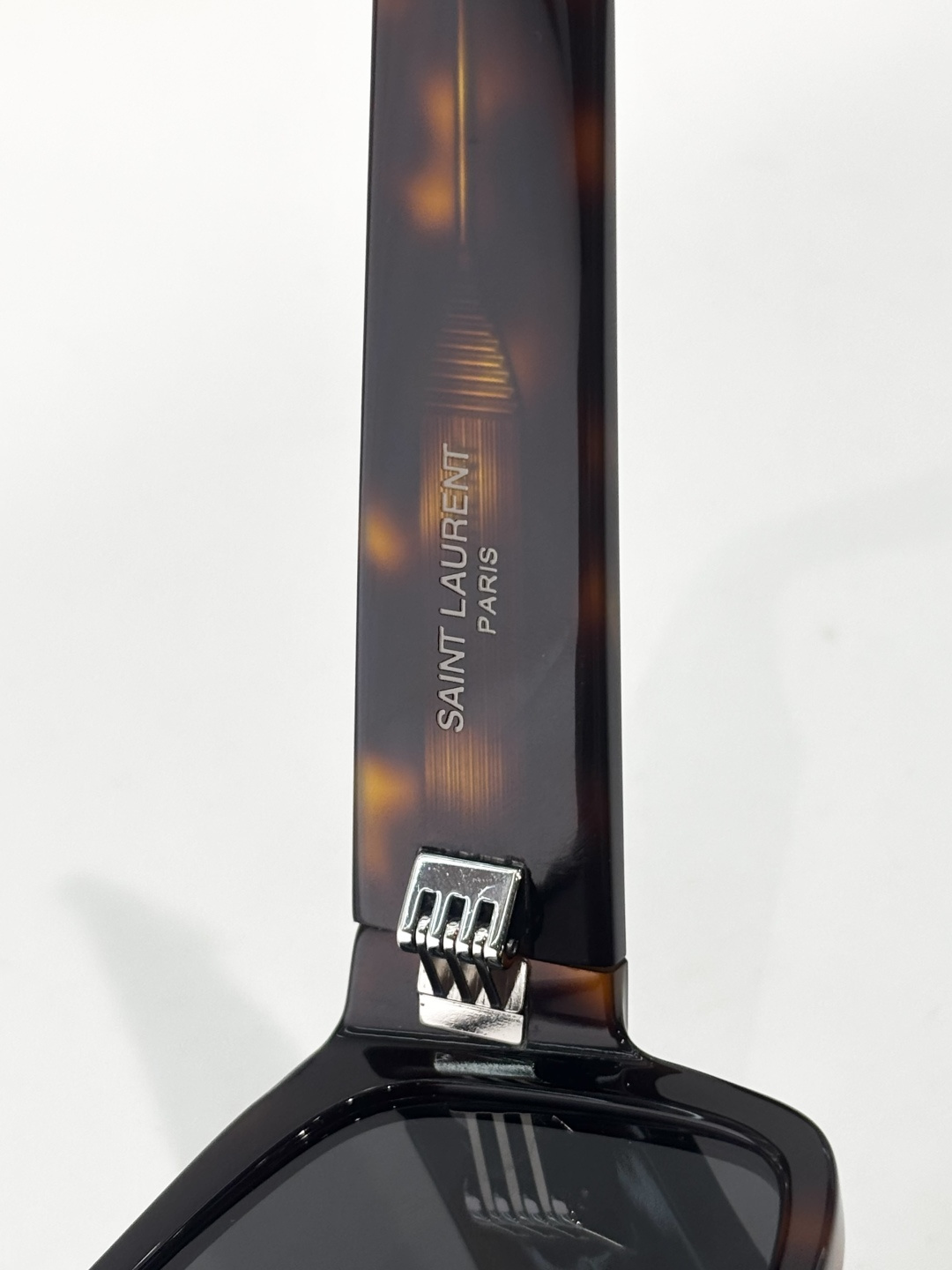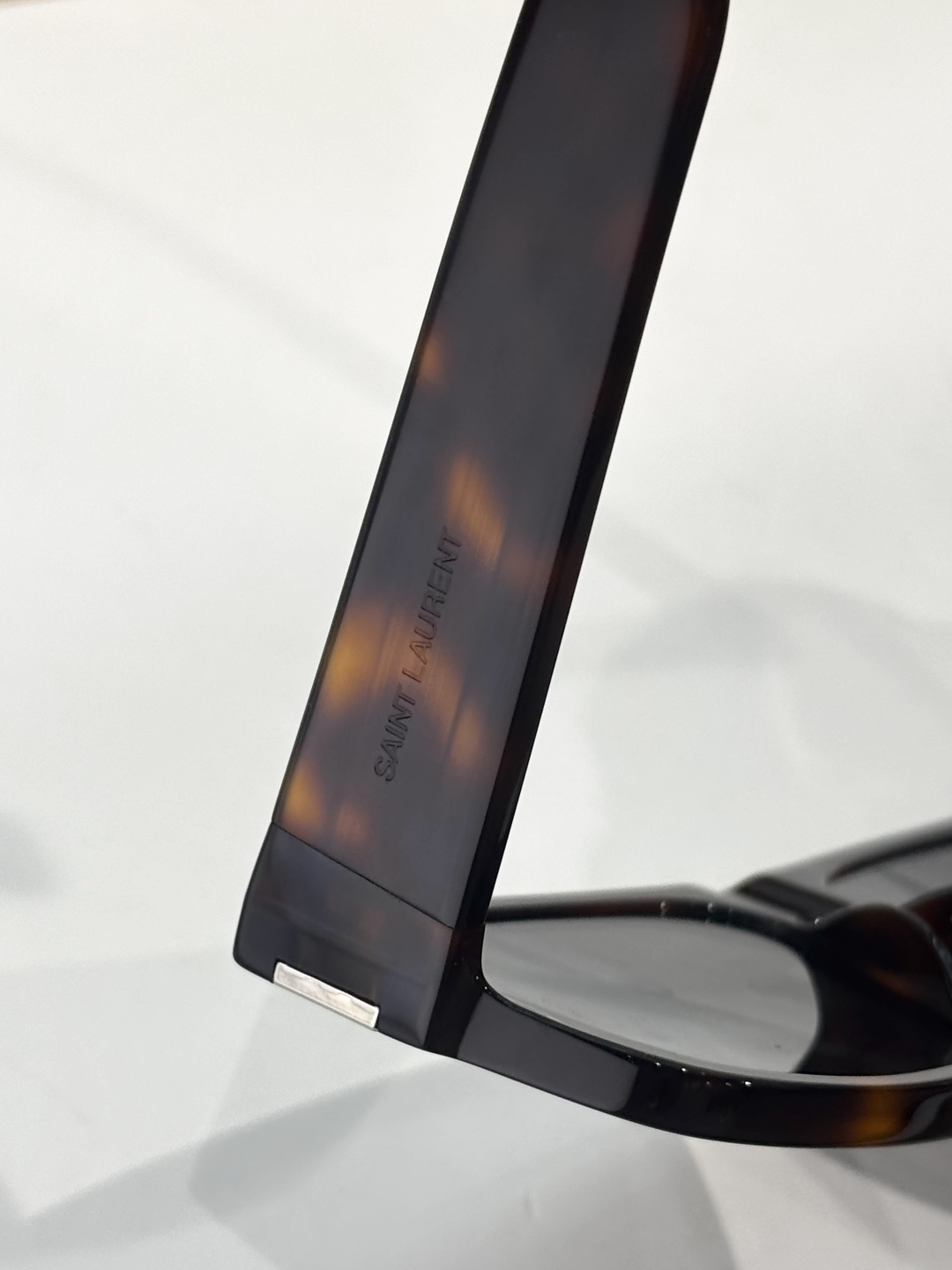 这款太阳眼镜是AAAAA 1:1 质量 (非常棒). 使用了和原版一模一样的材料. 商标部分也保持了和圣罗兰/Saint Laurent一样. 图片拍摄是实物太阳眼镜拍摄, 您所收到的实物保证和我们图片一模一样.