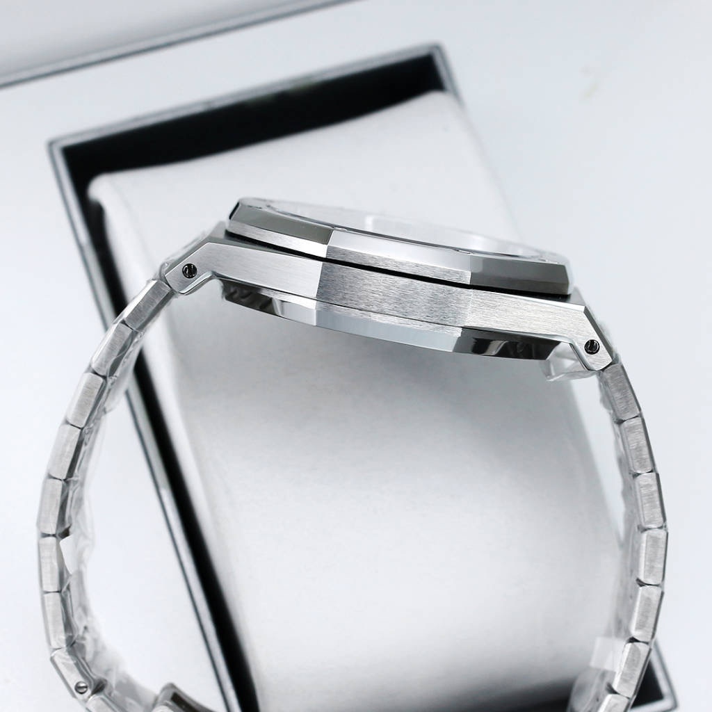 这款手表是AAAAA 1:1 质量 (非常棒). 使用了和原版一模一样的材料. 商标部分也保持了和爱彼/Audemars Piguet一样. 图片拍摄是实物手表拍摄, 您所收到的实物保证和我们图片一模一样.