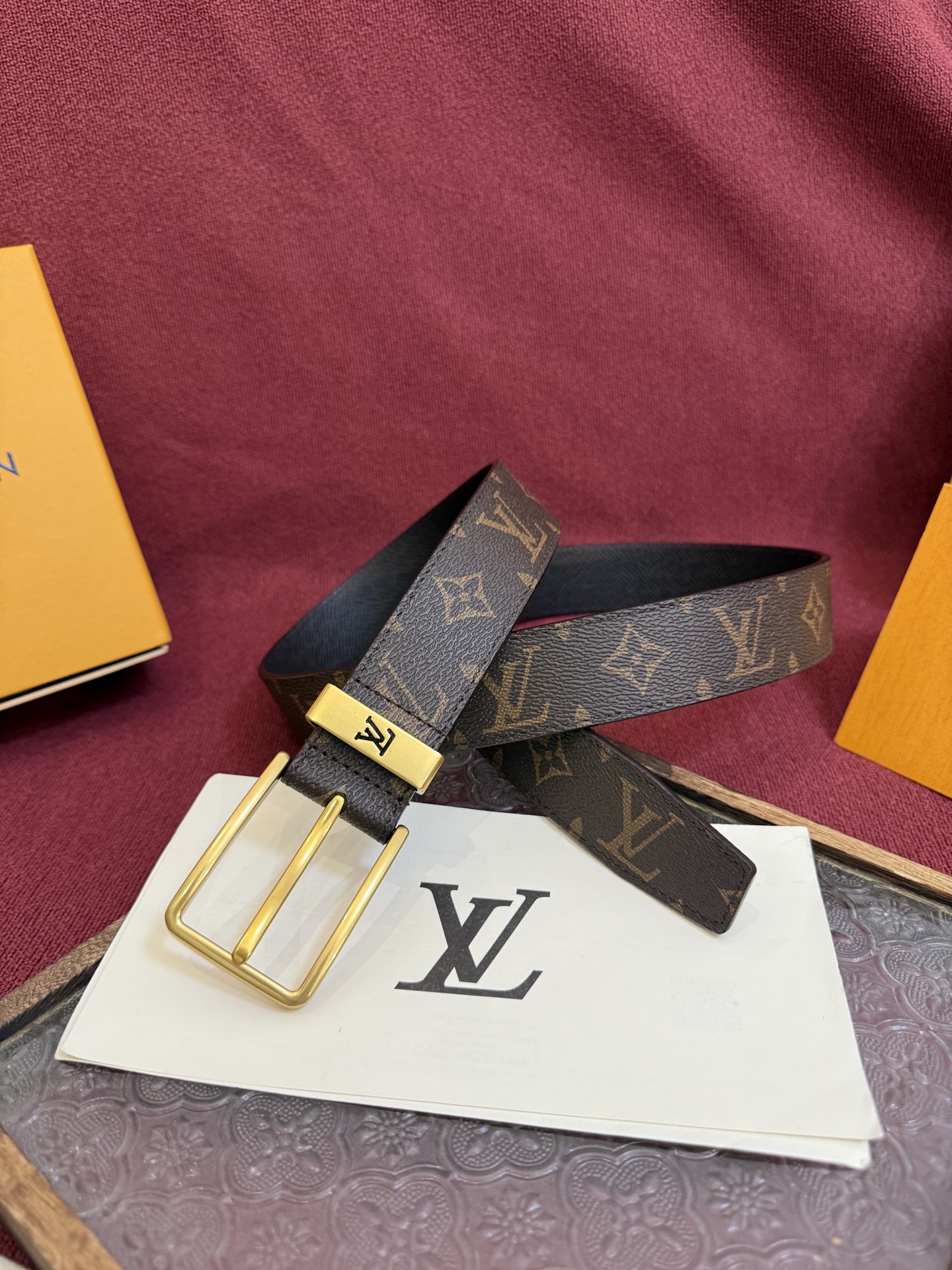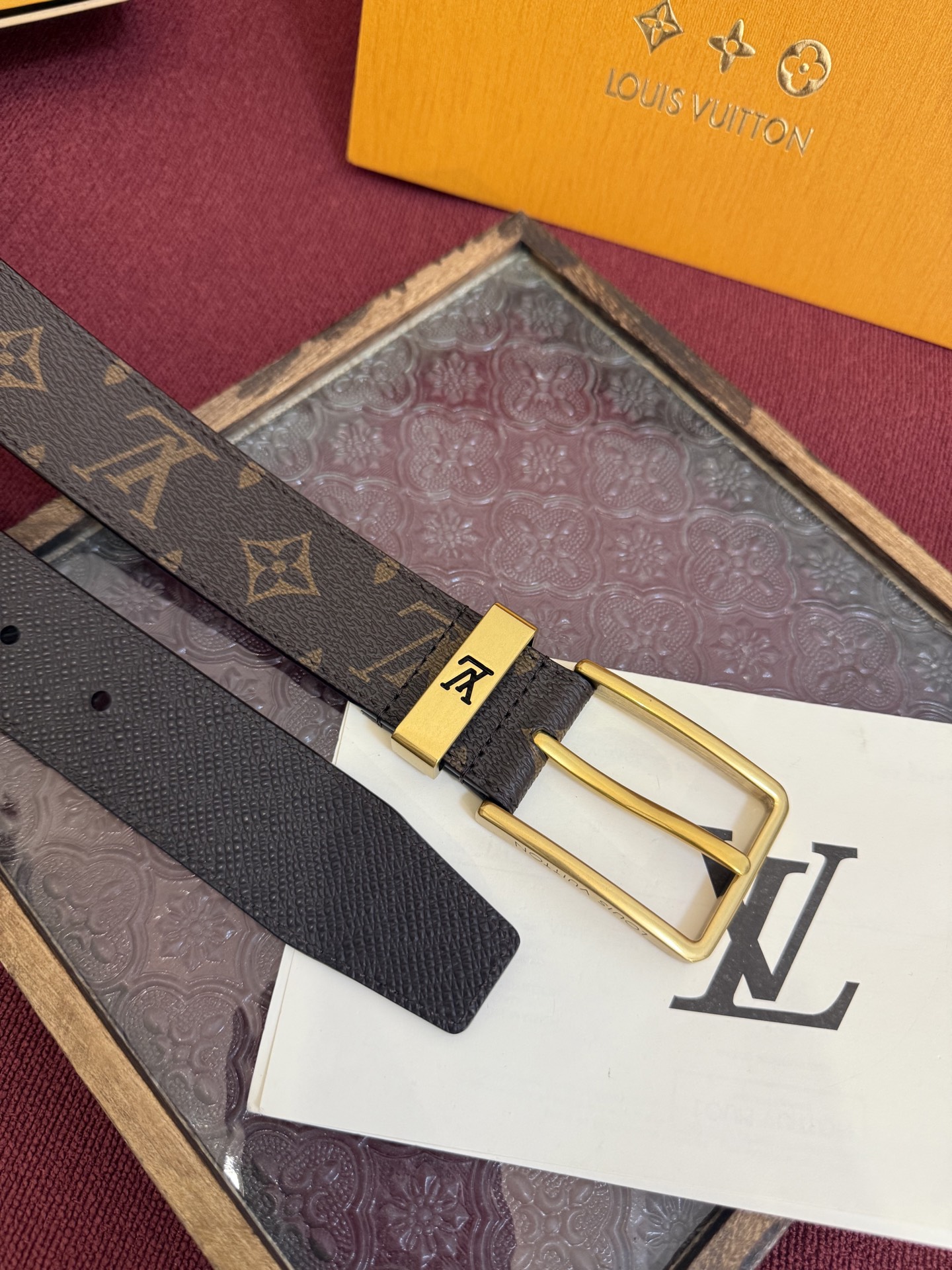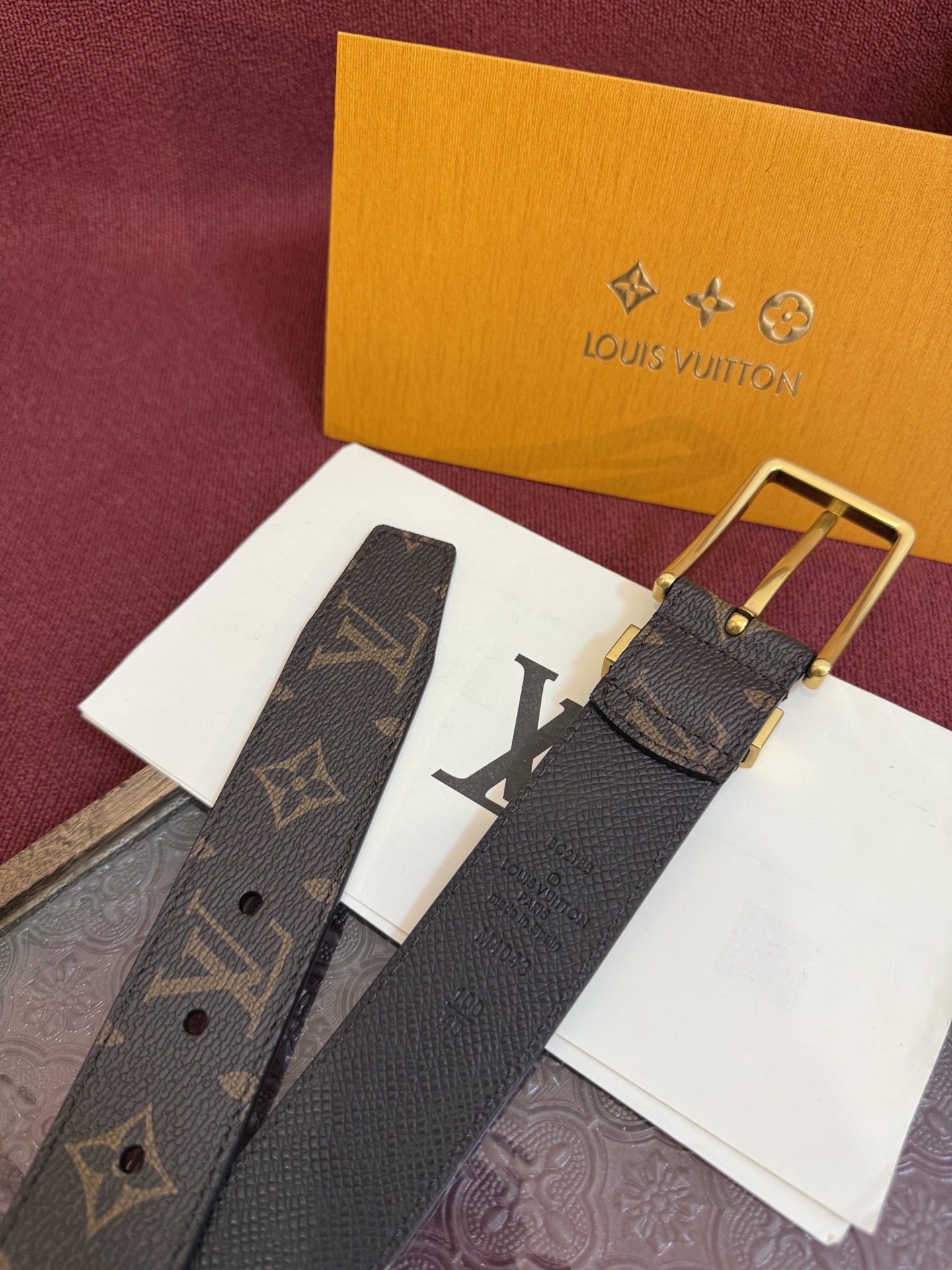 这款皮带是AAAAA 1:1 质量 (非常棒). 使用了和原版一模一样的材料. 商标部分也保持了和路易威登/Louis Vuitton一样. 图片拍摄是实物皮带拍摄, 您所收到的实物保证和我们图片一模一样.