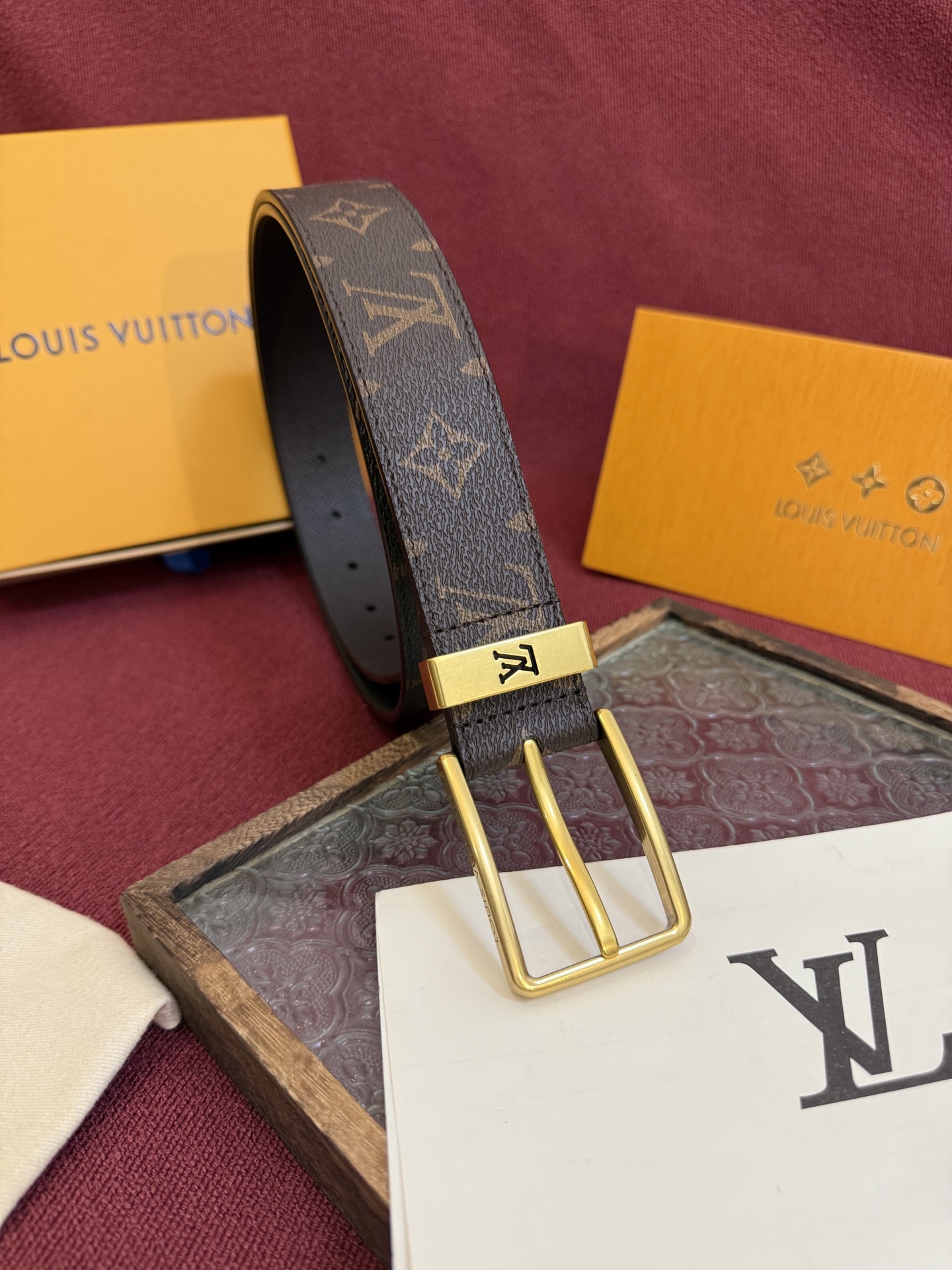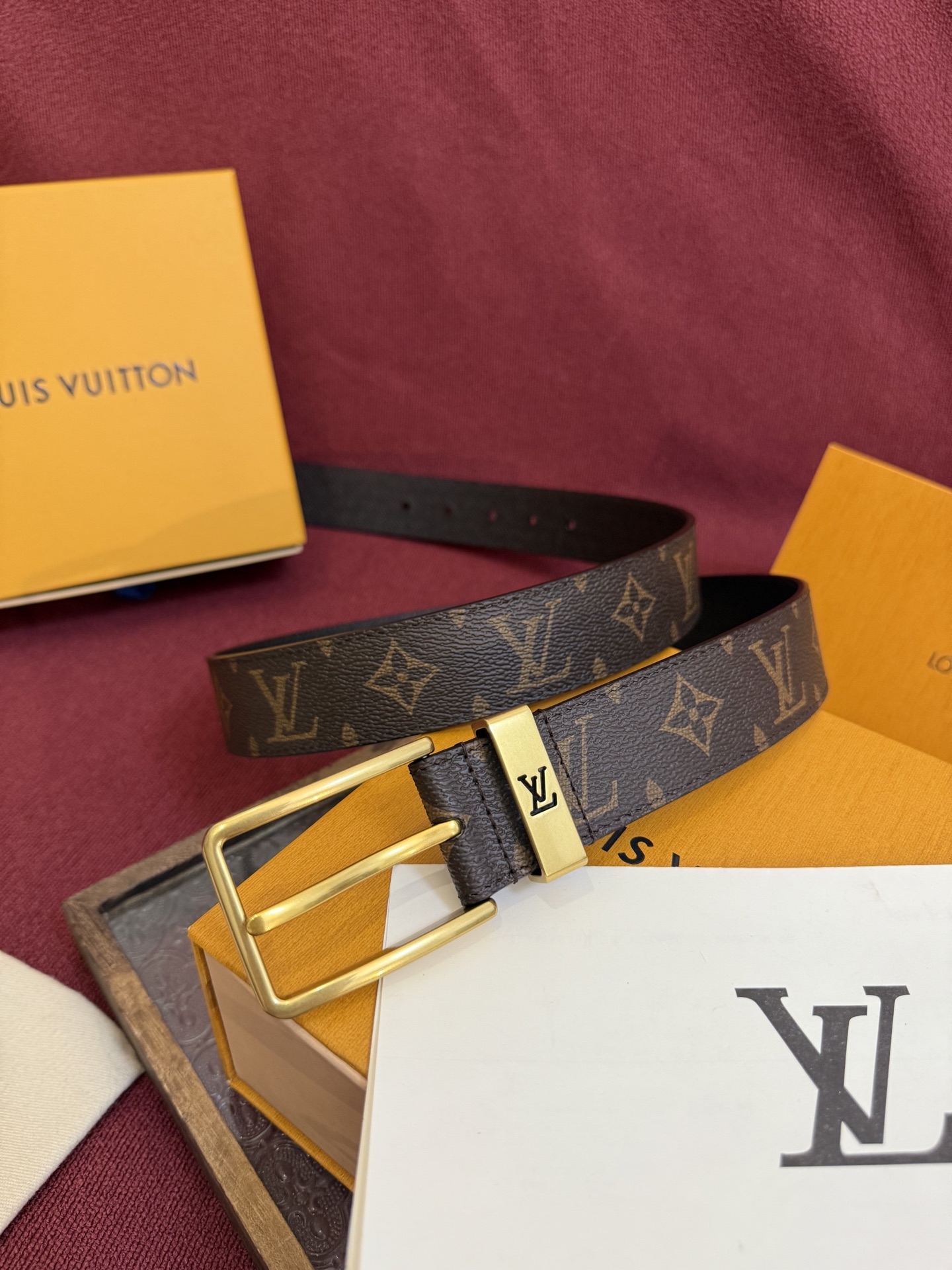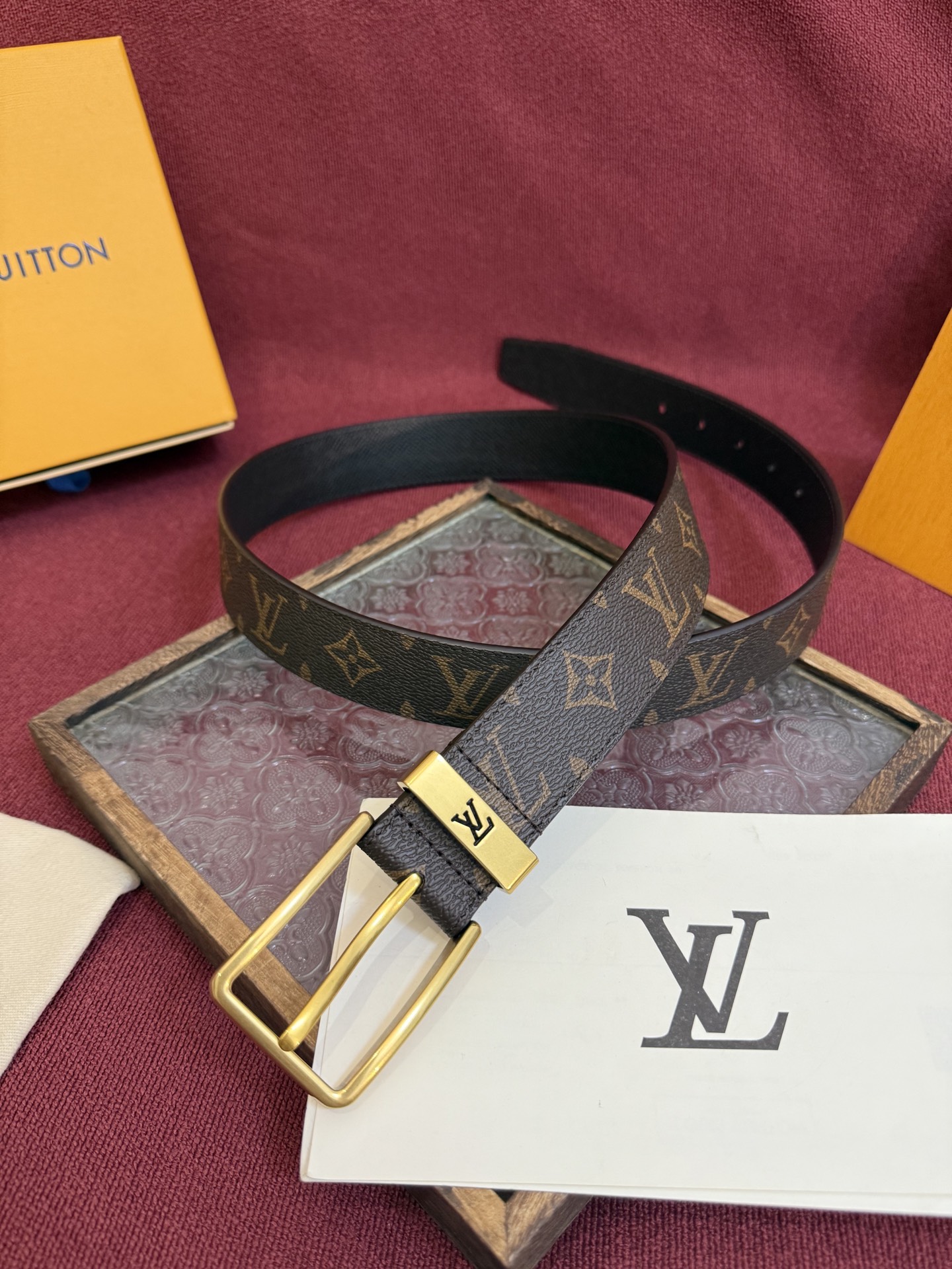 这款皮带是AAAAA 1:1 质量 (非常棒). 使用了和原版一模一样的材料. 商标部分也保持了和路易威登/Louis Vuitton一样. 图片拍摄是实物皮带拍摄, 您所收到的实物保证和我们图片一模一样.