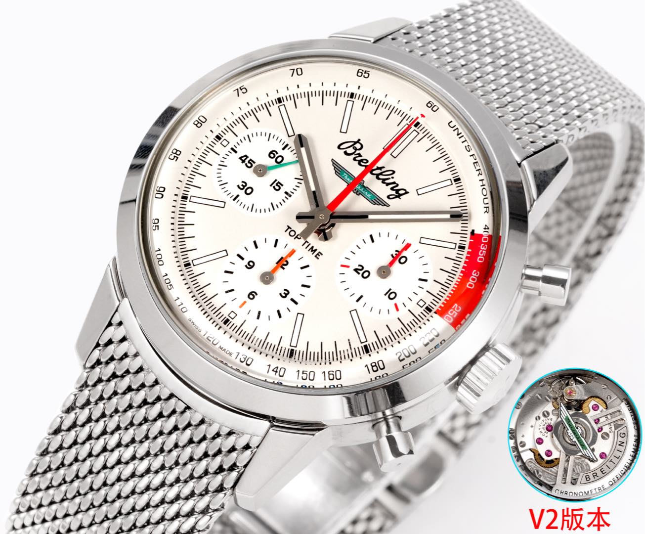 这款手表是AAAAA 1:1 质量 (非常棒). 使用了和原版一模一样的材料. 商标部分也保持了和Breitling一样. 图片拍摄是实物手表拍摄, 您所收到的实物保证和我们图片一模一样.