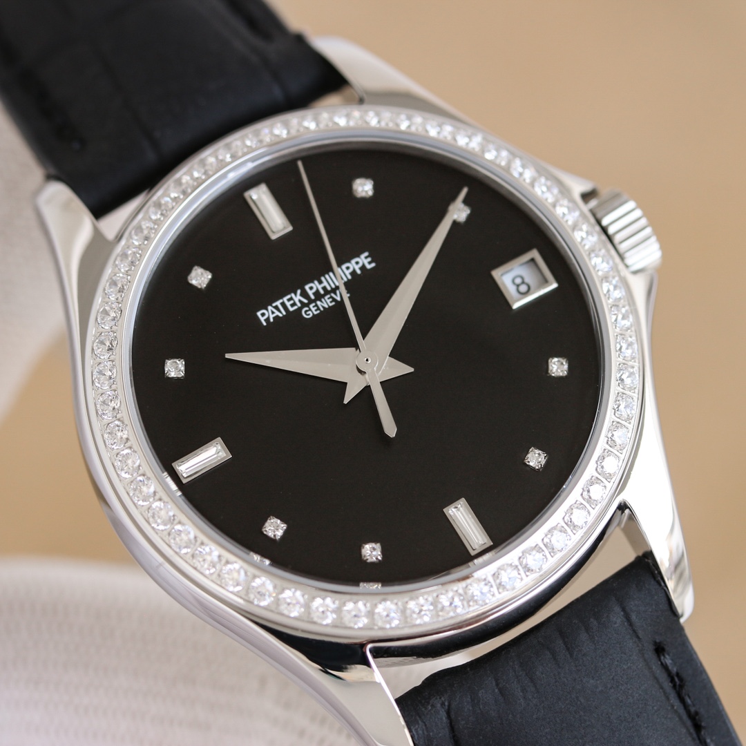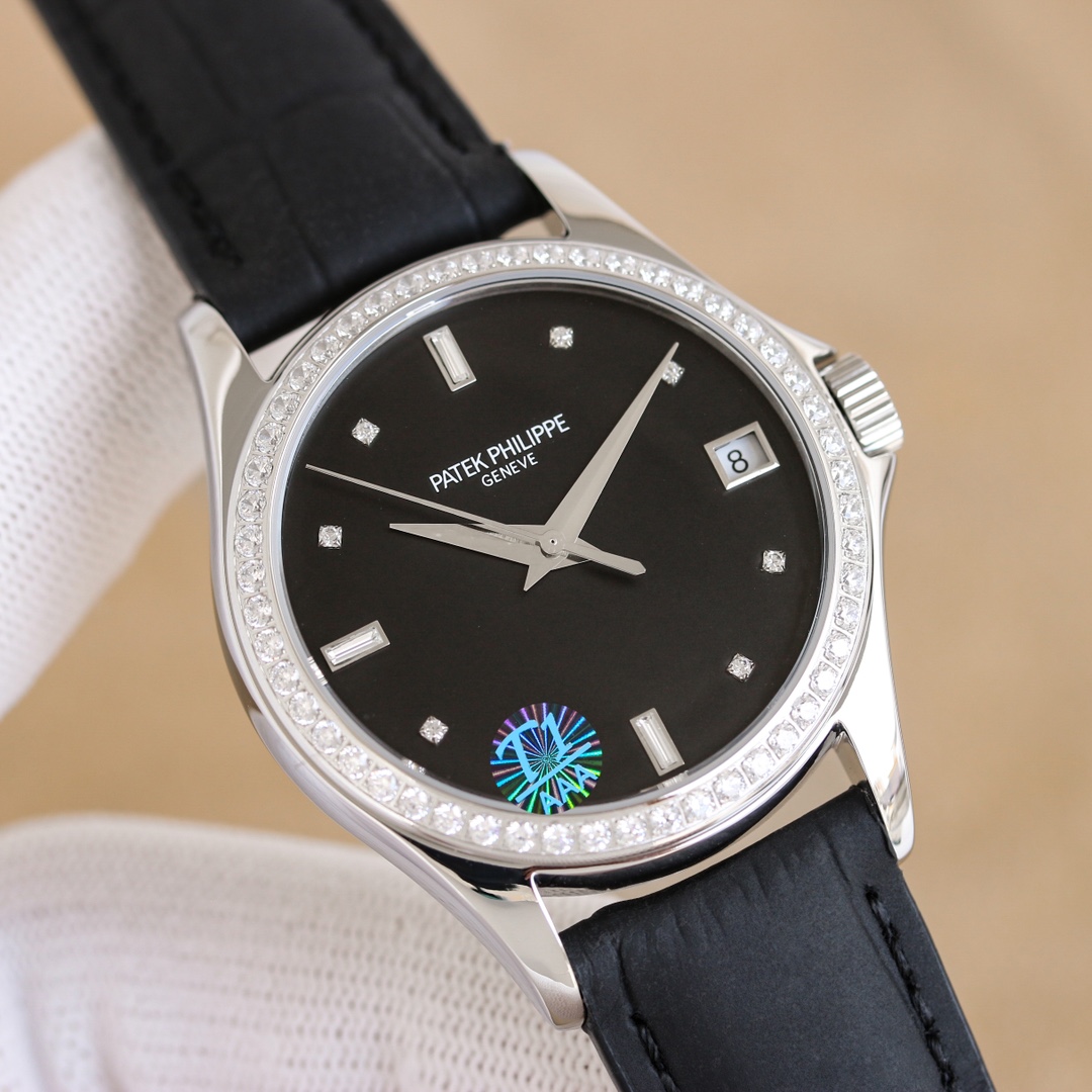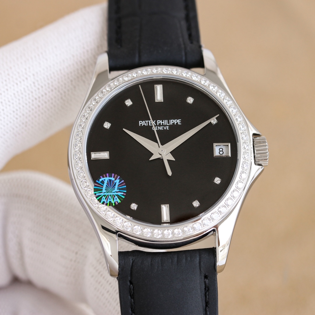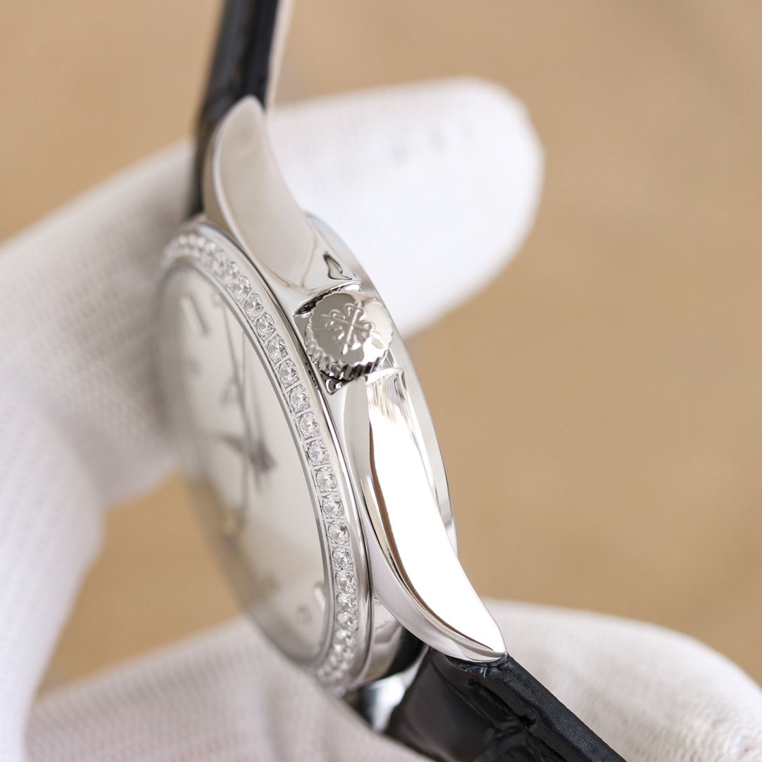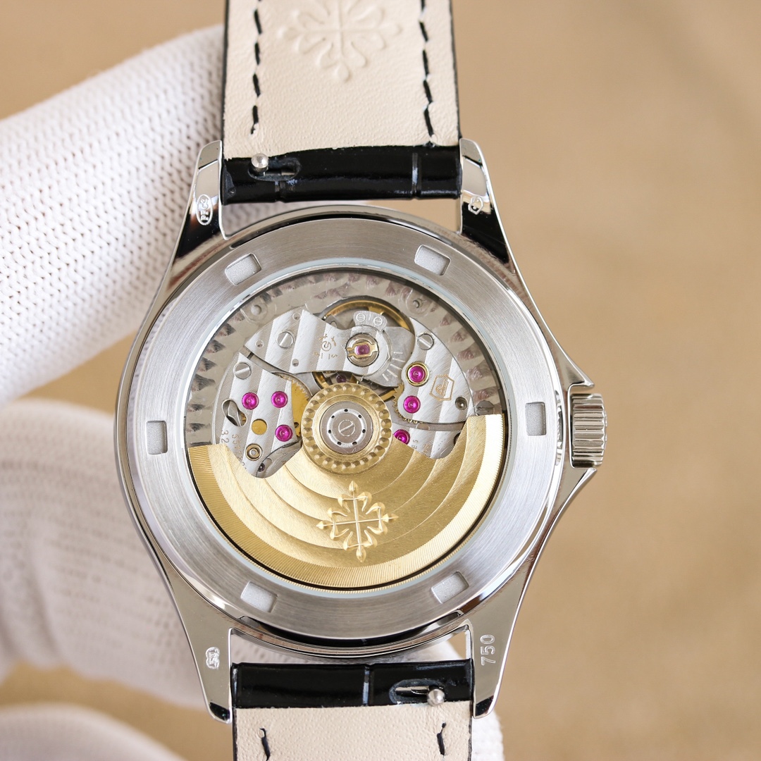 这款手表是AAAAA 1:1 质量 (非常棒). 使用了和原版一模一样的材料. 商标部分也保持了和百达翡丽/Patek Philippe一样. 图片拍摄是实物手表拍摄, 您所收到的实物保证和我们图片一模一样.