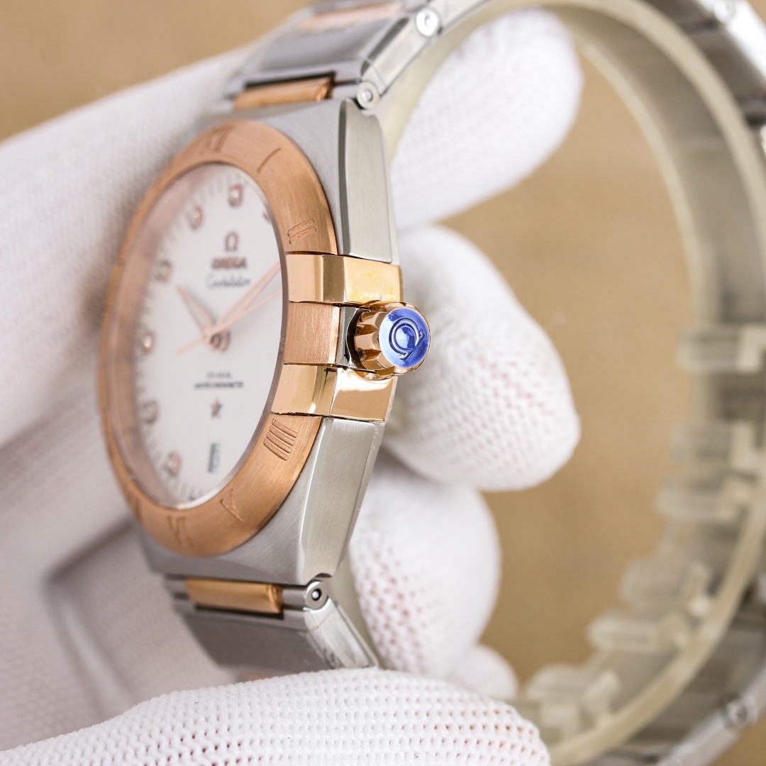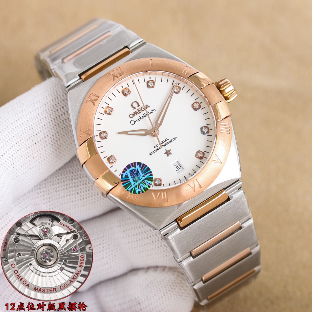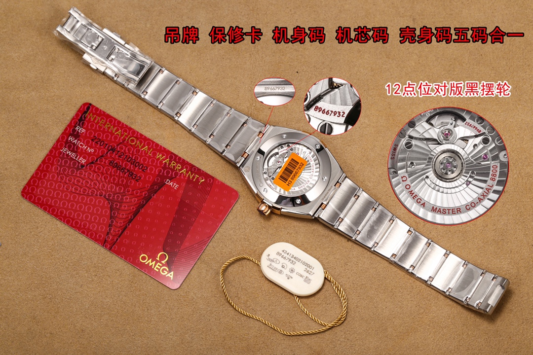 这款手表是AAAAA 1:1 质量 (非常棒). 使用了和原版一模一样的材料. 商标部分也保持了和欧米茄/Omega一样. 图片拍摄是实物手表拍摄, 您所收到的实物保证和我们图片一模一样.
