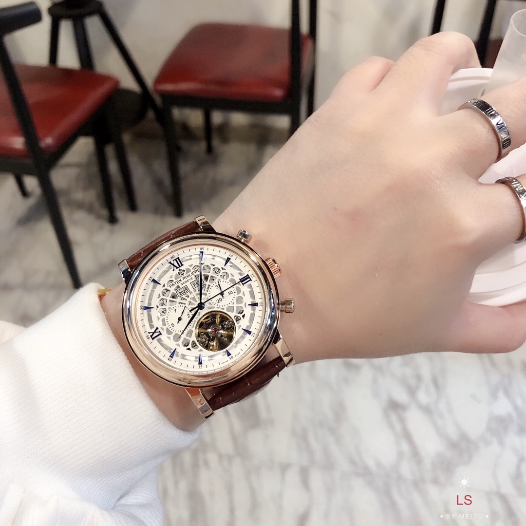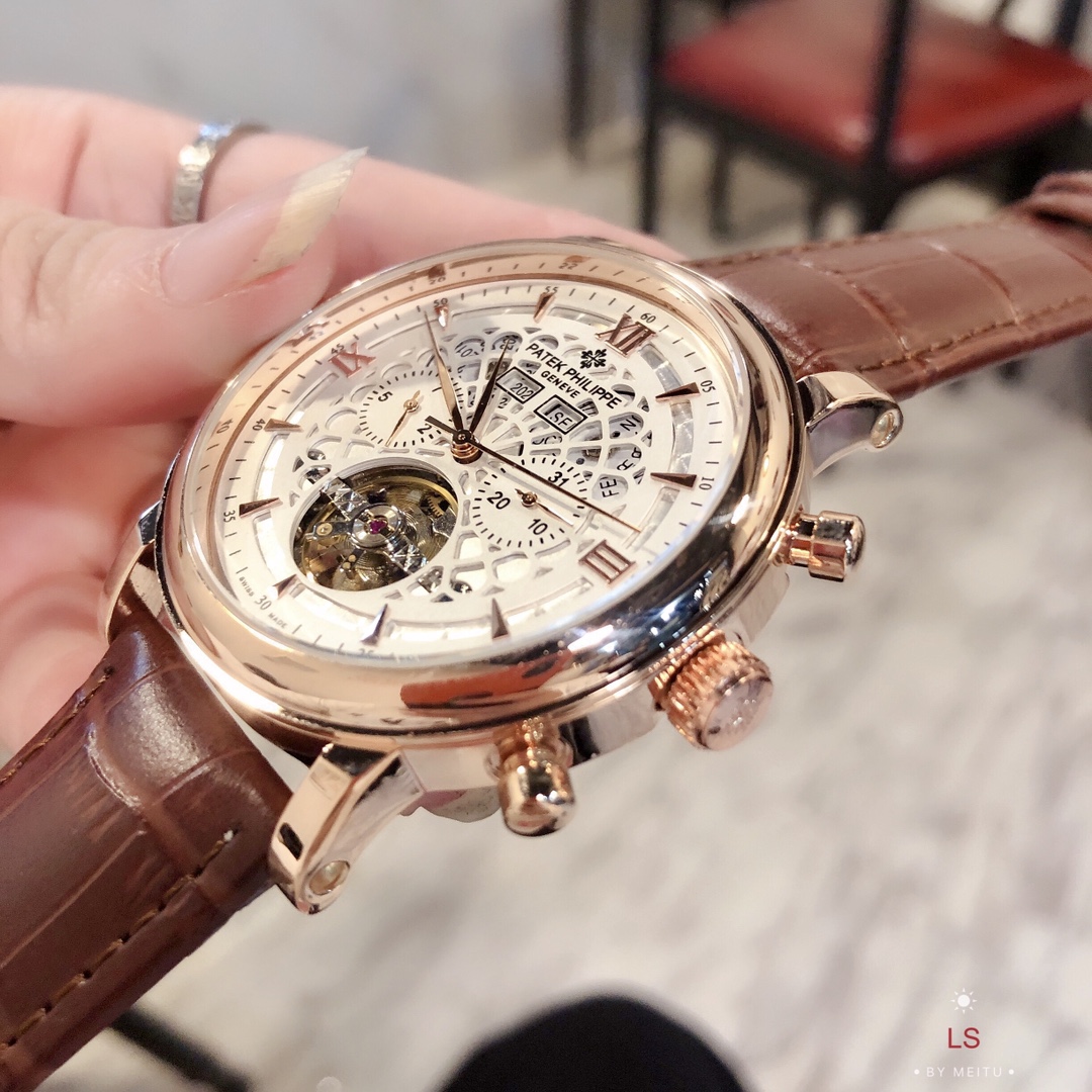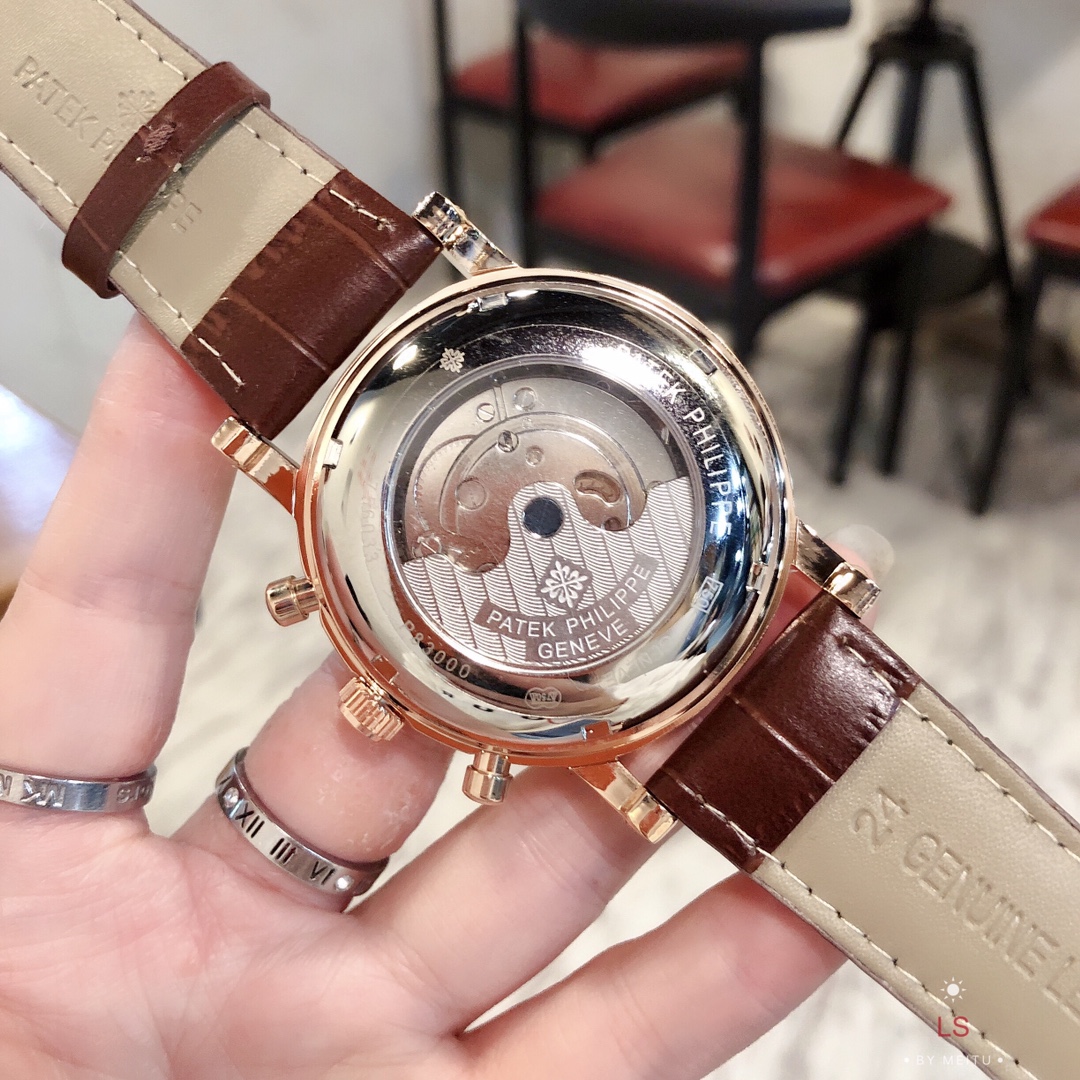 这款手表是AAAAA 1:1 质量 (非常棒). 使用了和原版一模一样的材料. 商标部分也保持了和百达翡丽/Patek Philippe一样. 图片拍摄是实物手表拍摄, 您所收到的实物保证和我们图片一模一样.