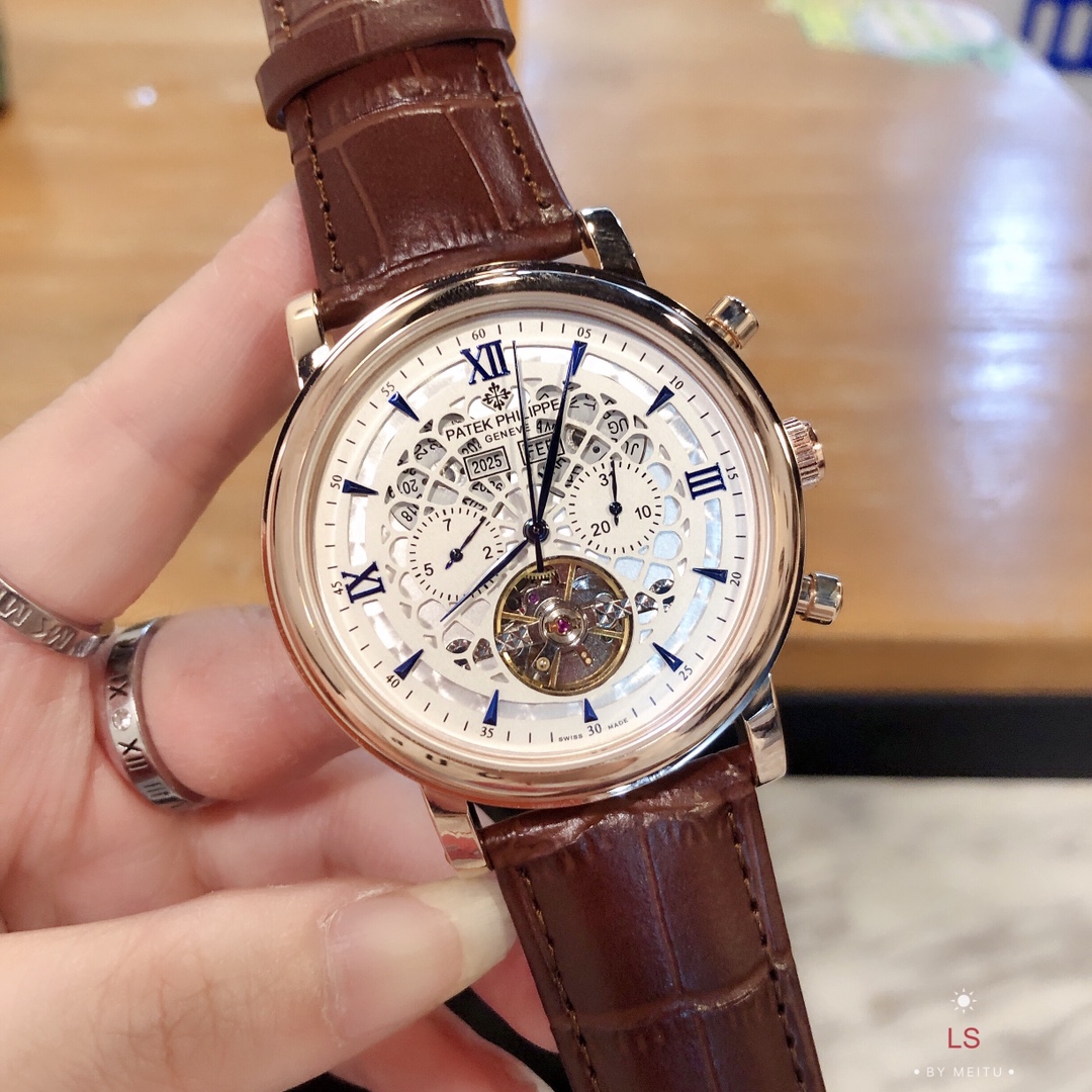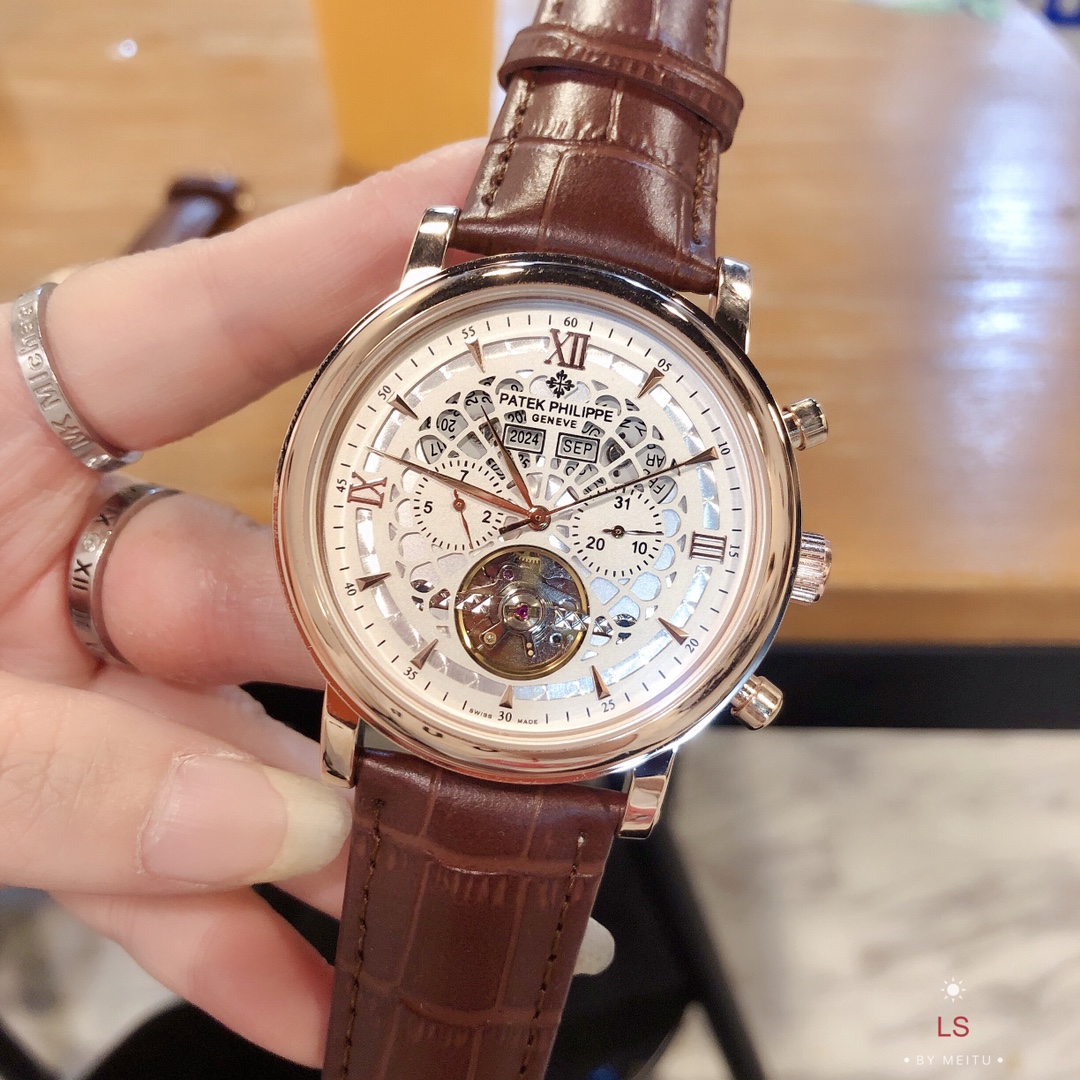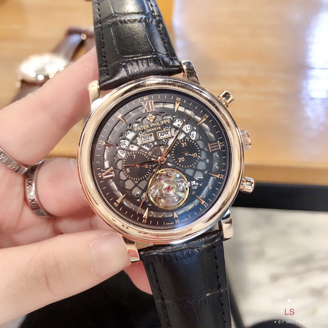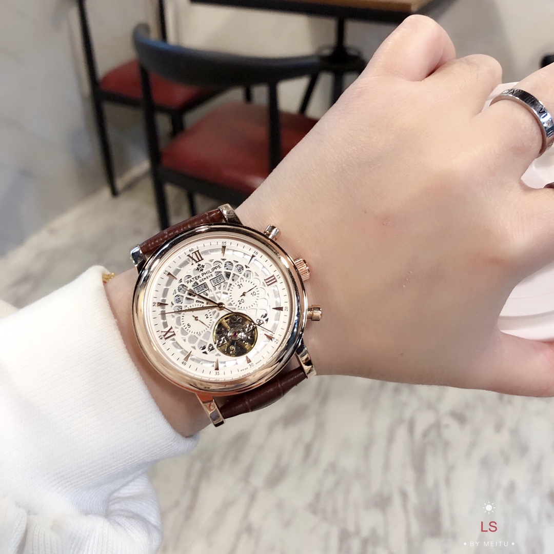 这款手表是AAAAA 1:1 质量 (非常棒). 使用了和原版一模一样的材料. 商标部分也保持了和百达翡丽/Patek Philippe一样. 图片拍摄是实物手表拍摄, 您所收到的实物保证和我们图片一模一样.
