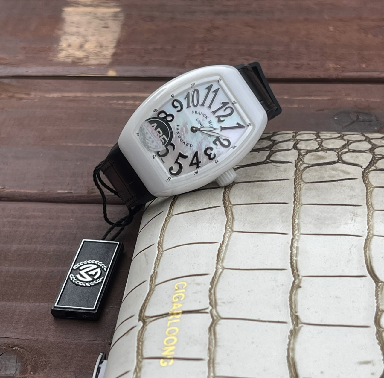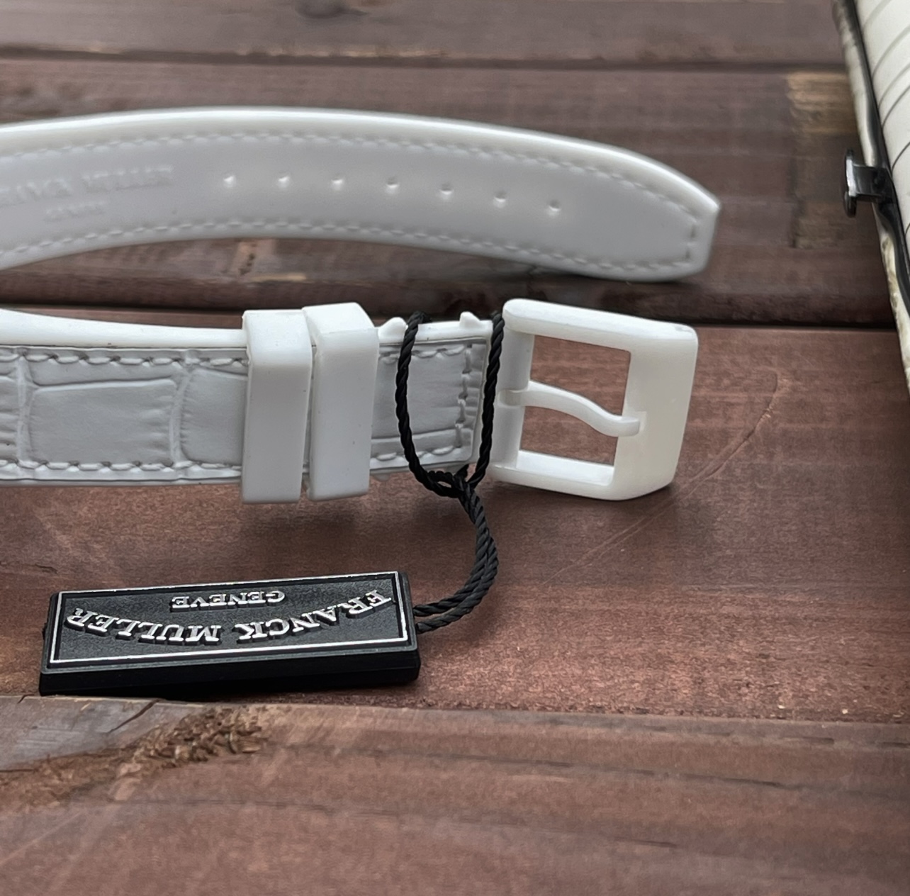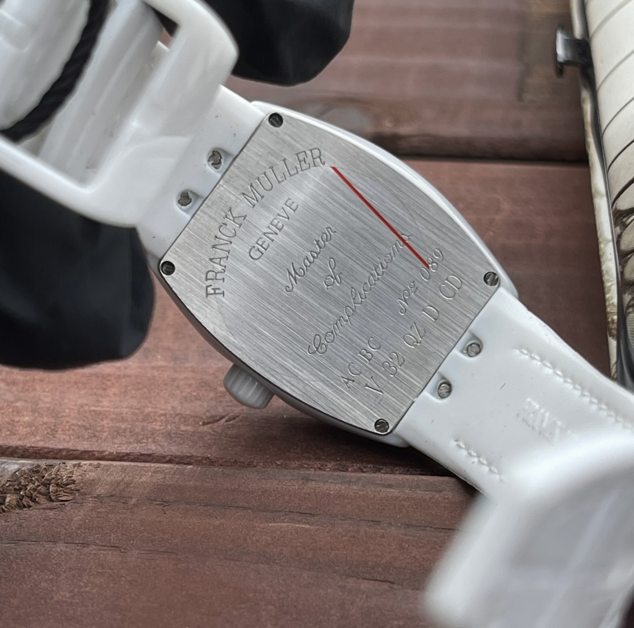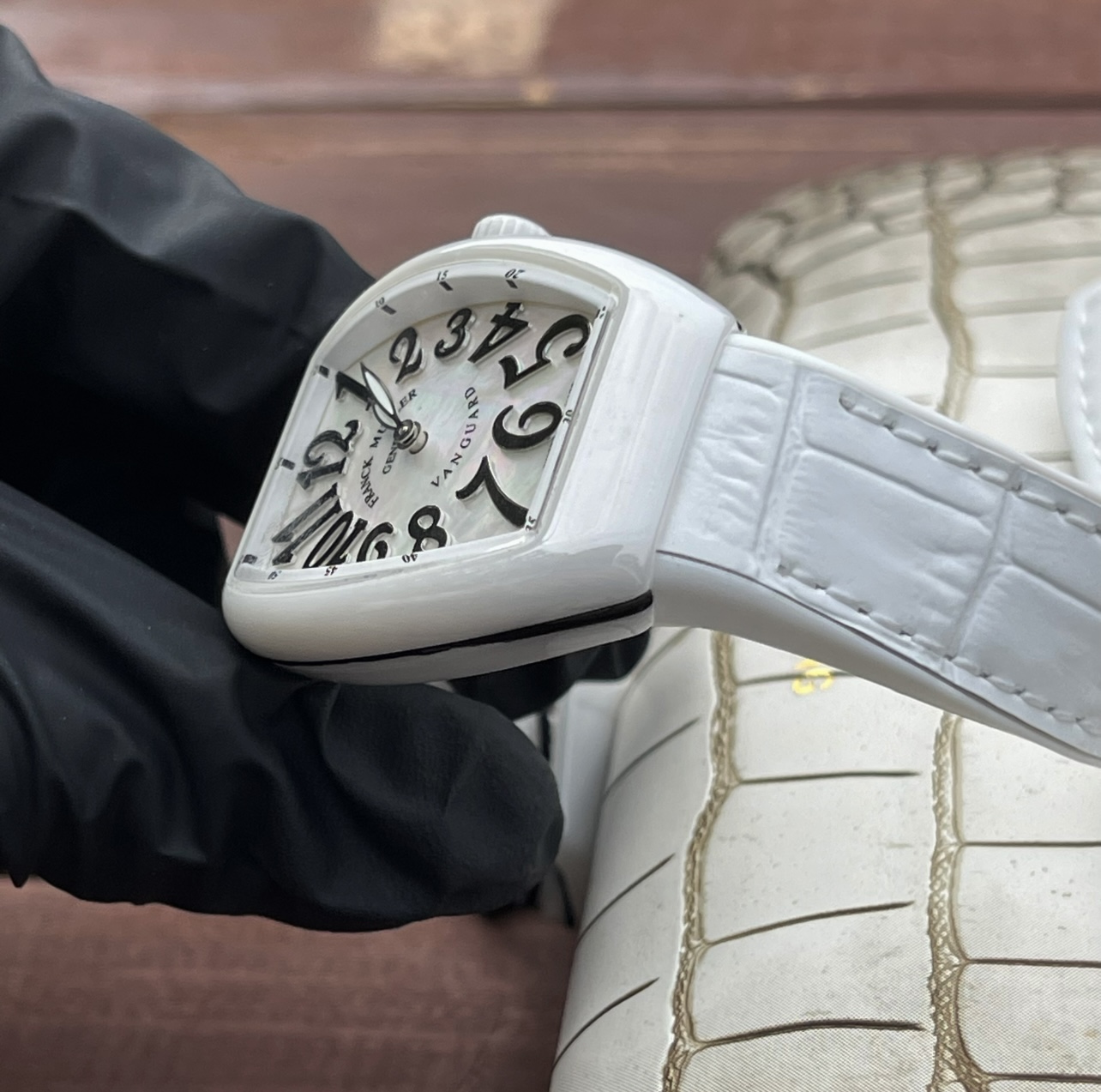 这款手表是AAAAA 1:1 质量 (非常棒). 使用了和原版一模一样的材料. 商标部分也保持了和Franck Mulle一样. 图片拍摄是实物手表拍摄, 您所收到的实物保证和我们图片一模一样.