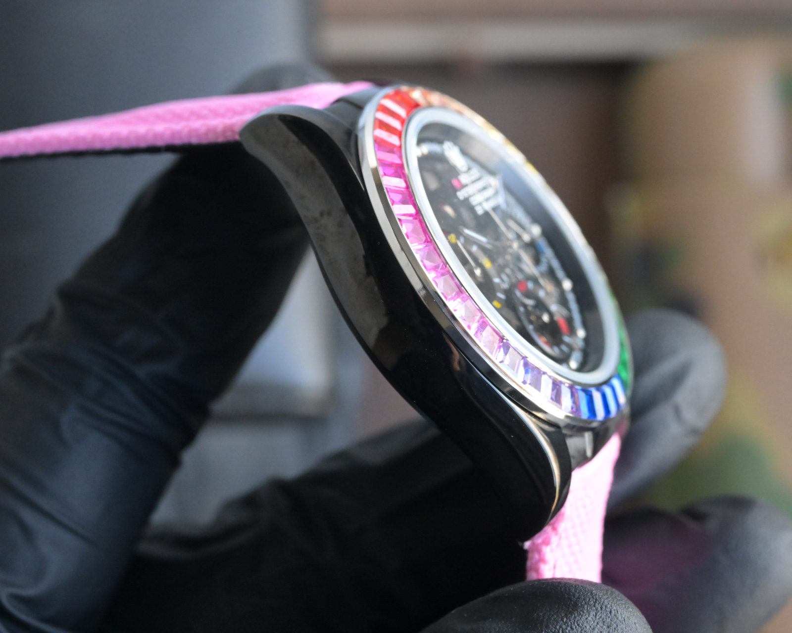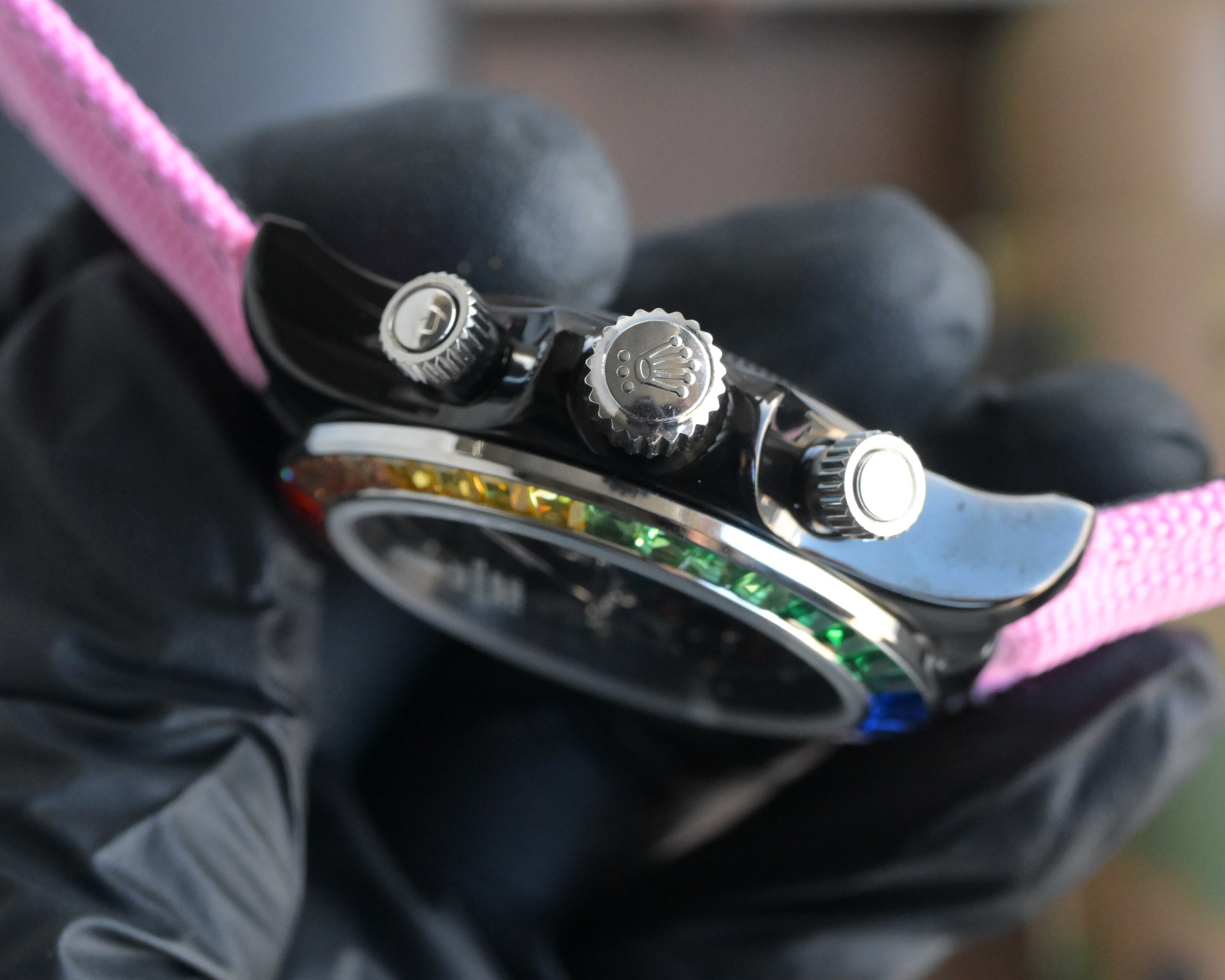 这款手表是AAAAA 1:1 质量 (非常棒). 使用了和原版一模一样的材料. 商标部分也保持了和劳力士/Rolex一样. 图片拍摄是实物手表拍摄, 您所收到的实物保证和我们图片一模一样.