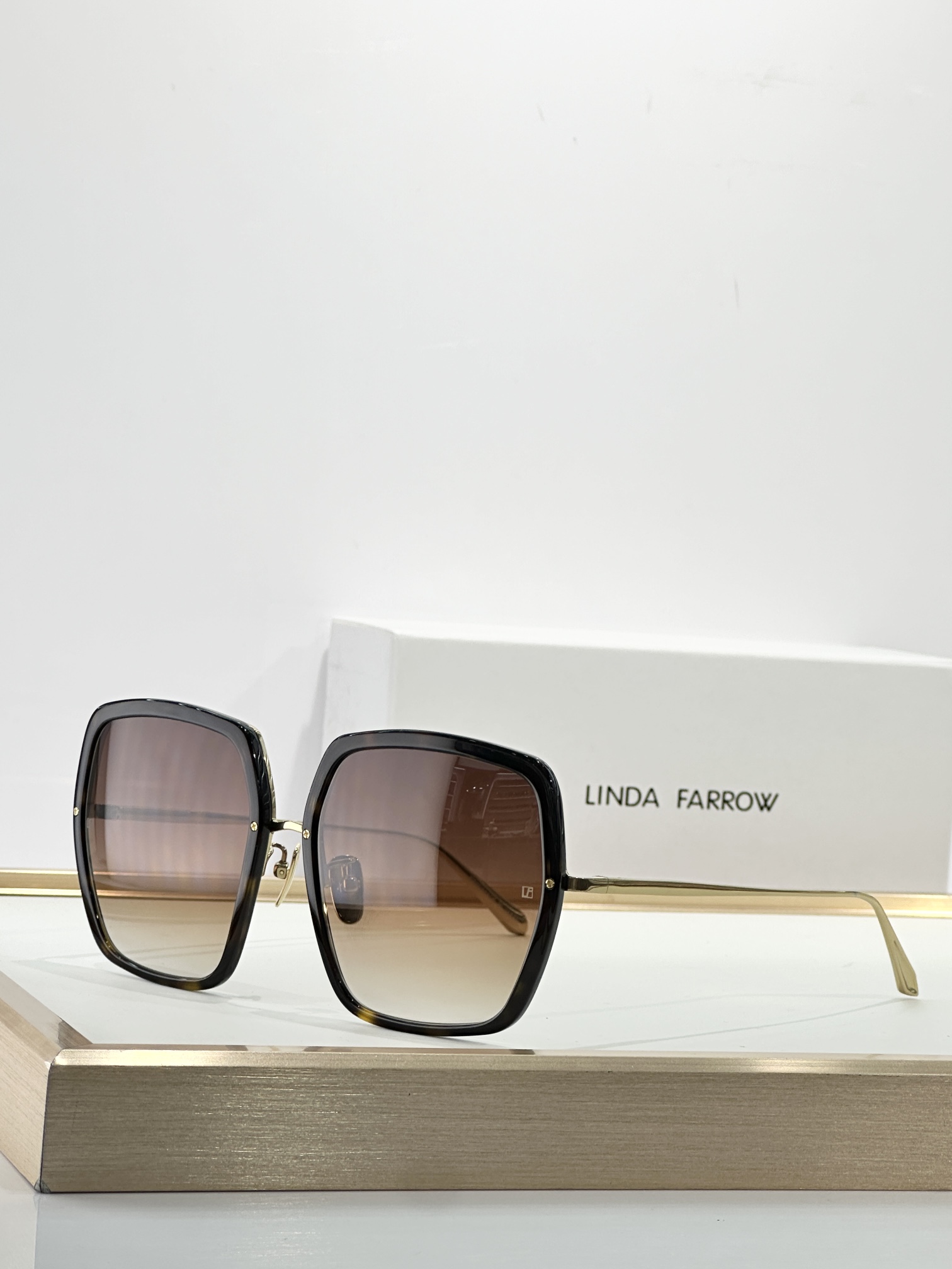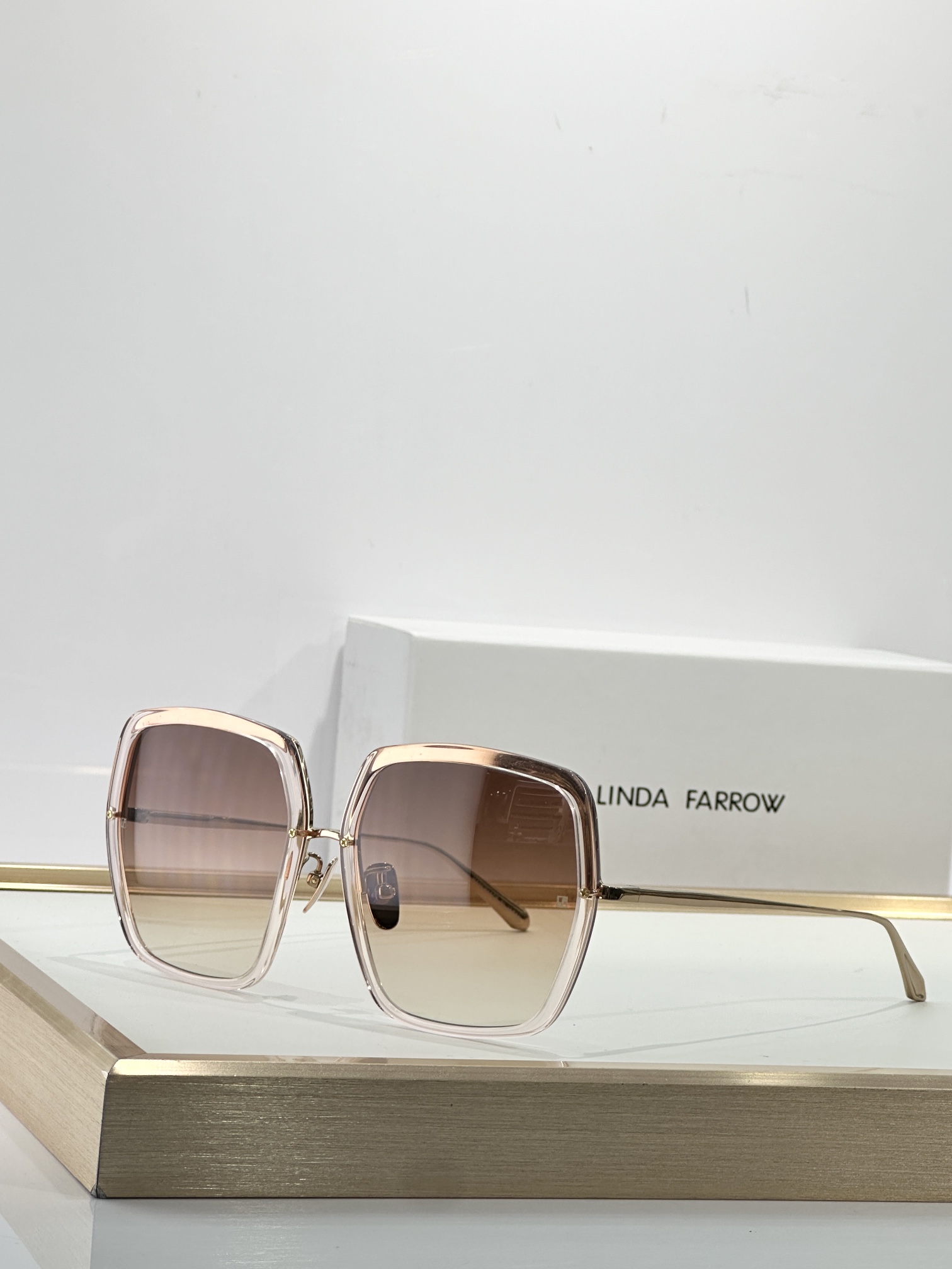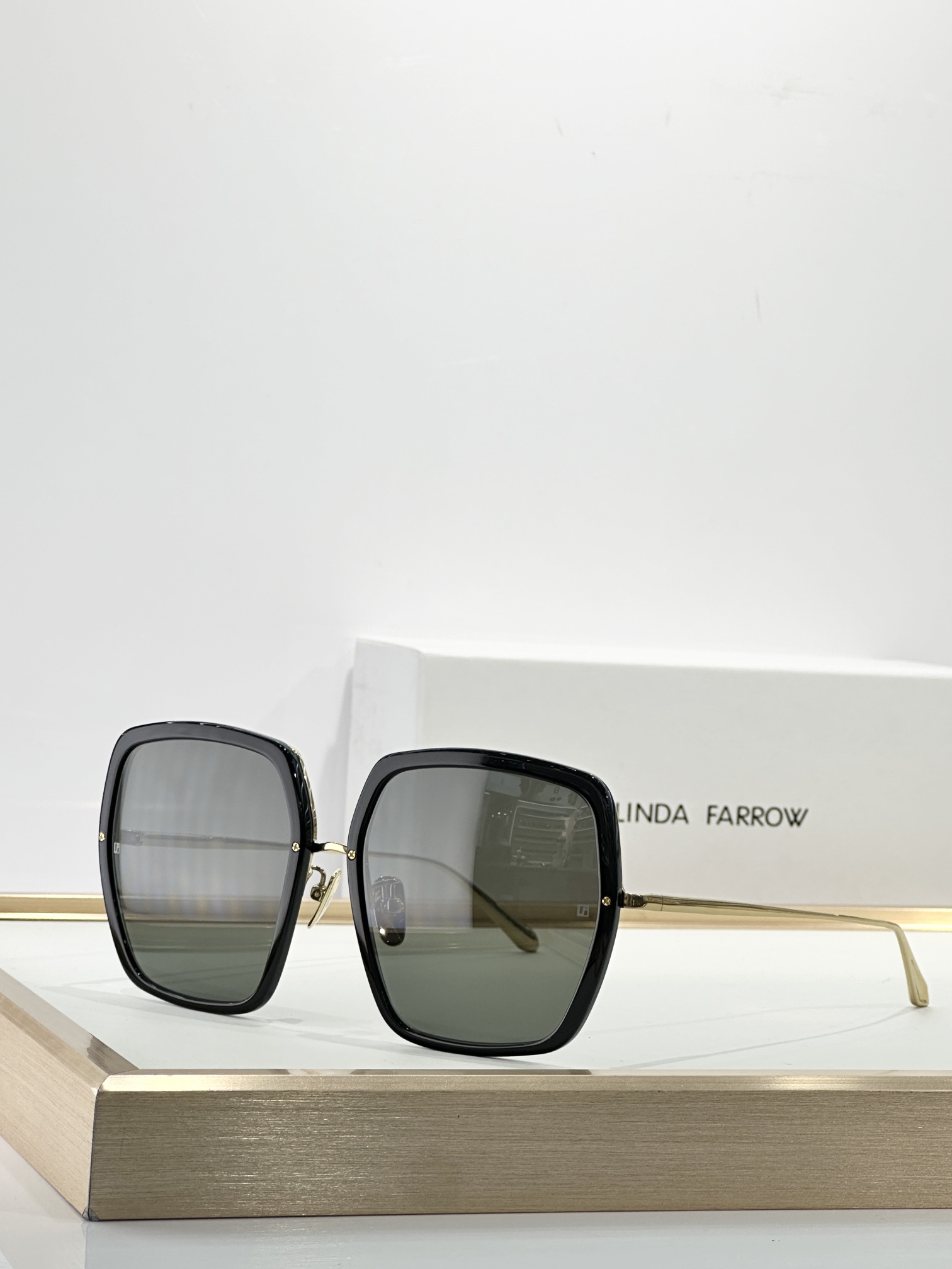 这款太阳眼镜是AAAAA 1:1 质量 (非常棒). 使用了和原版一模一样的材料. 商标部分也保持了和琳达·法罗/Linda Farrow一样. 图片拍摄是实物太阳眼镜拍摄, 您所收到的实物保证和我们图片一模一样.