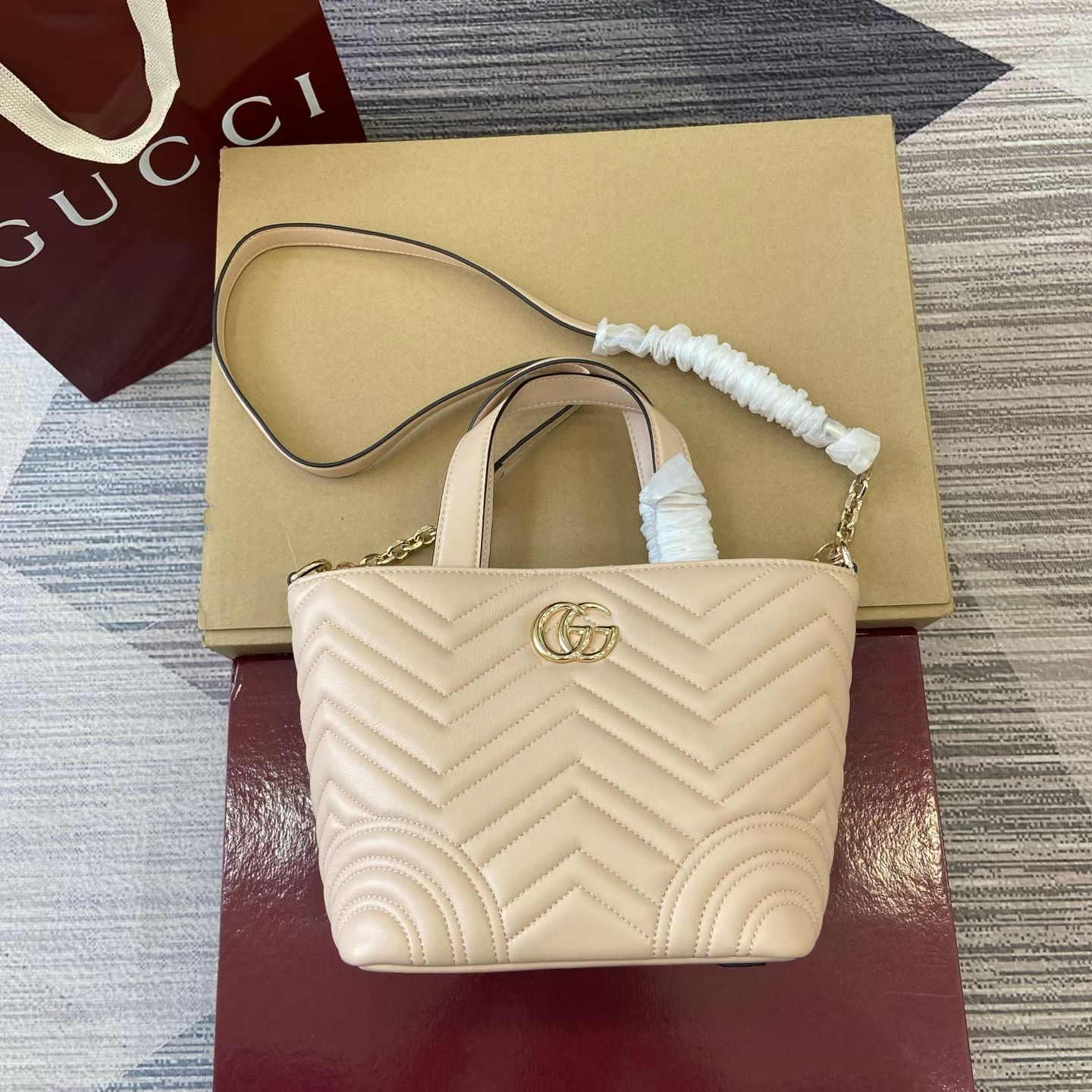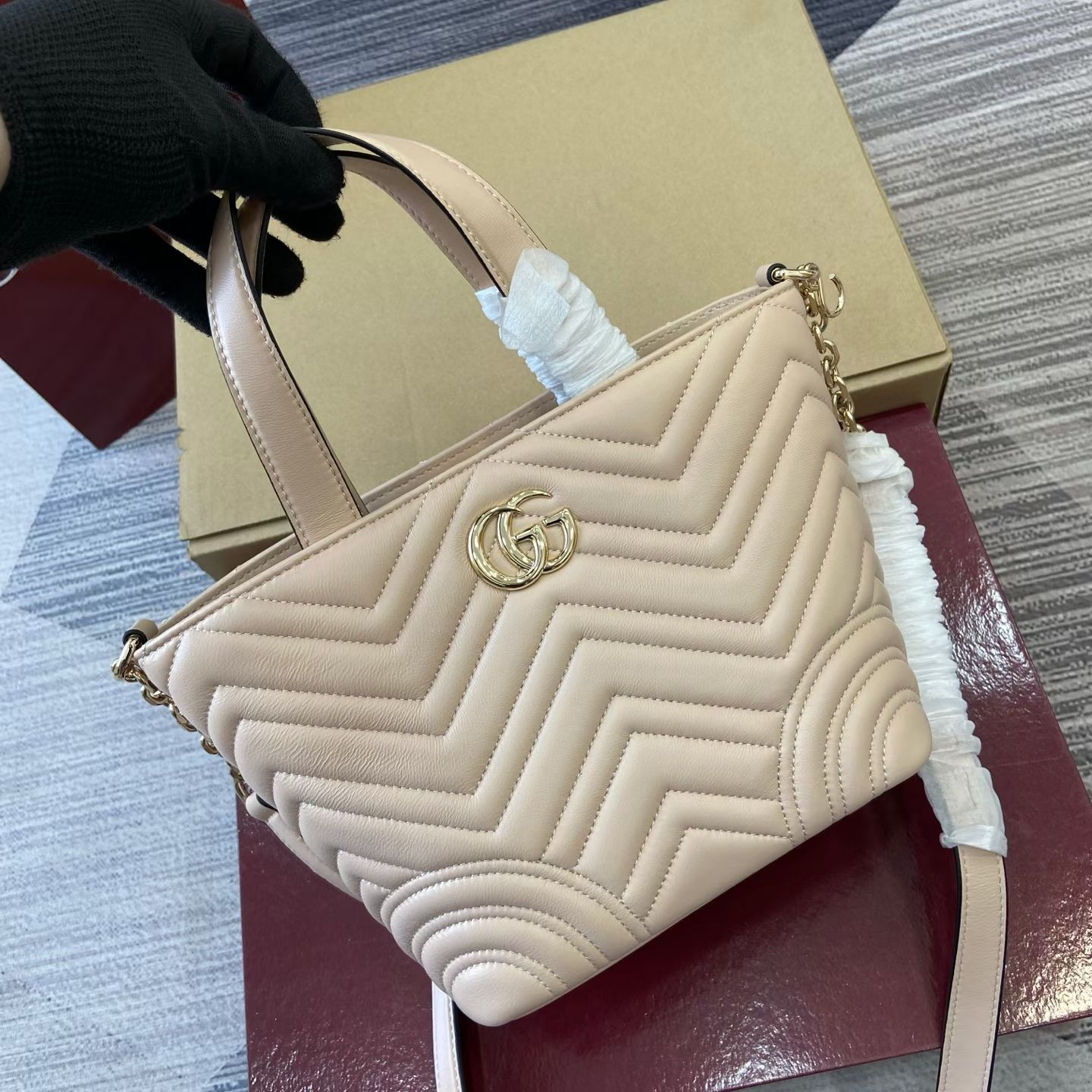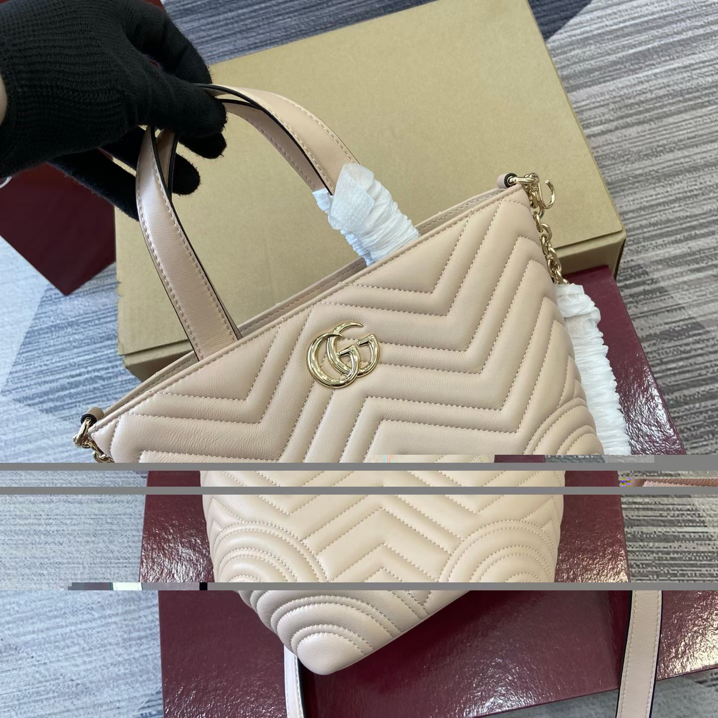 这款包包是AAAAA 1:1 质量 (非常棒). 使用了和原版一模一样的材料. 商标部分也保持了和古奇/Gucci一样. 图片拍摄是实物包包拍摄, 您所收到的实物保证和我们图片一模一样.