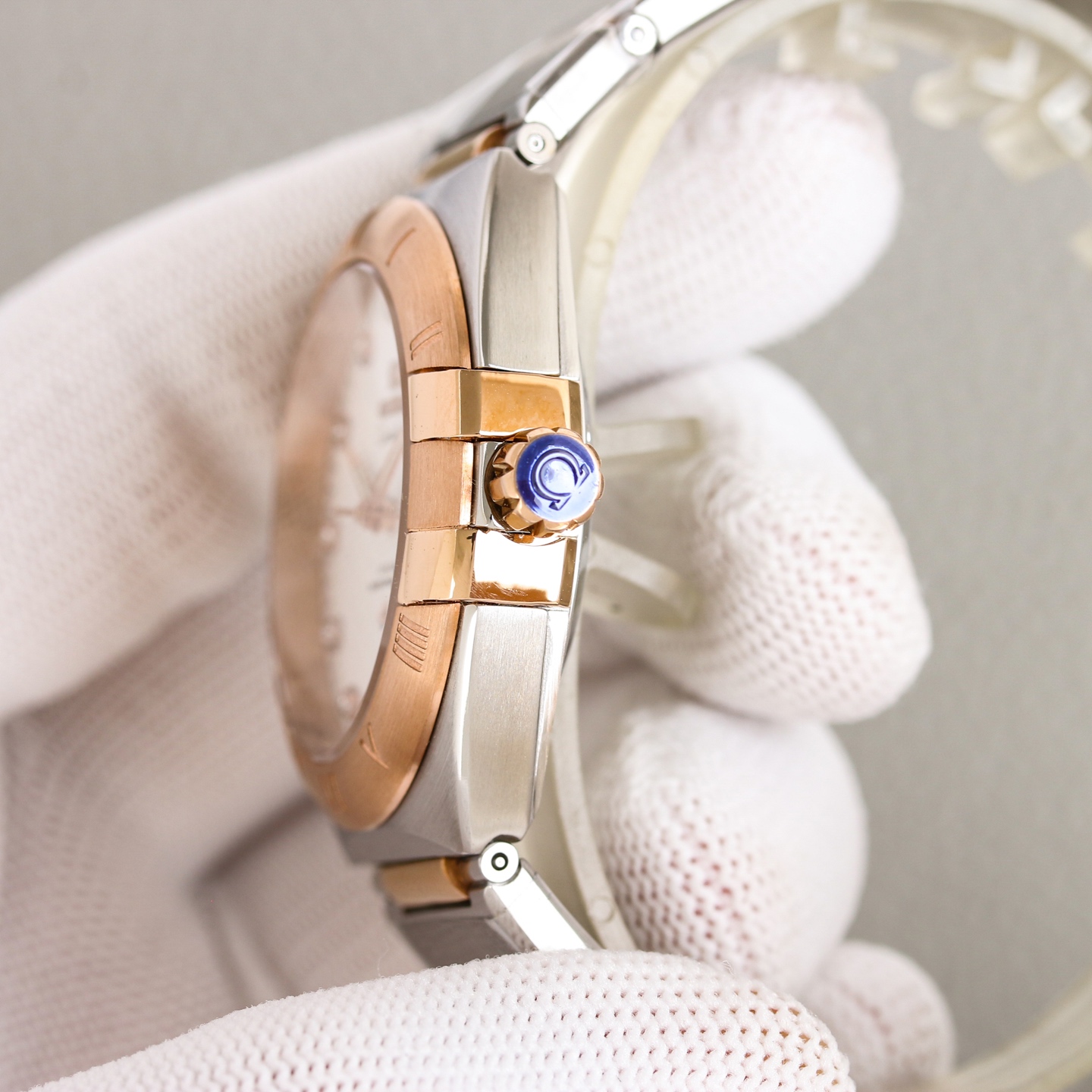 这款手表是AAAAA 1:1 质量 (非常棒). 使用了和原版一模一样的材料. 商标部分也保持了和欧米茄/Omega一样. 图片拍摄是实物手表拍摄, 您所收到的实物保证和我们图片一模一样.