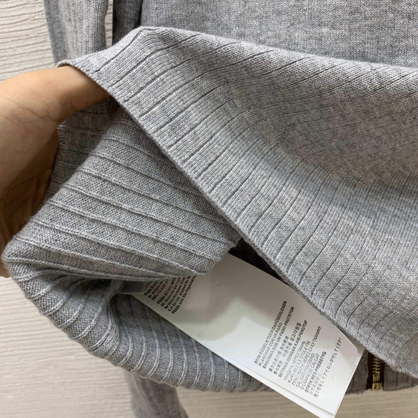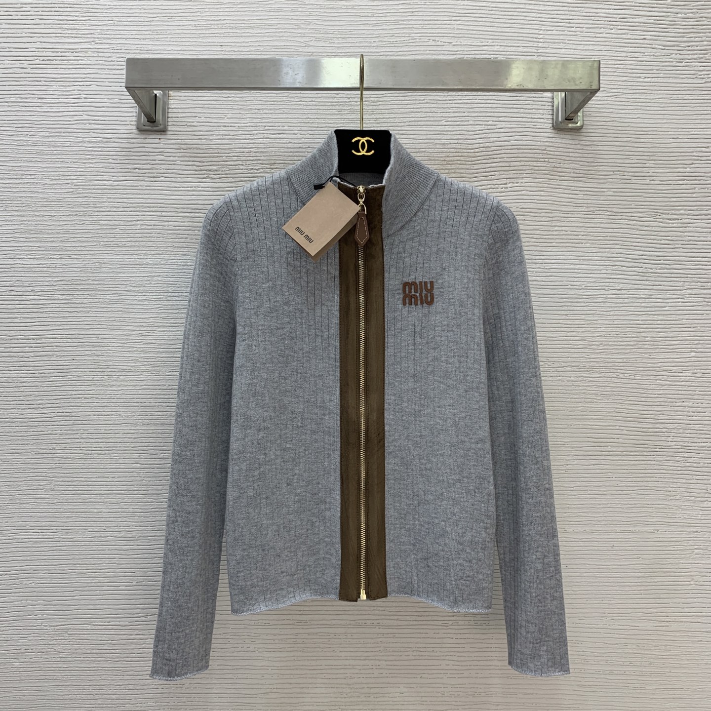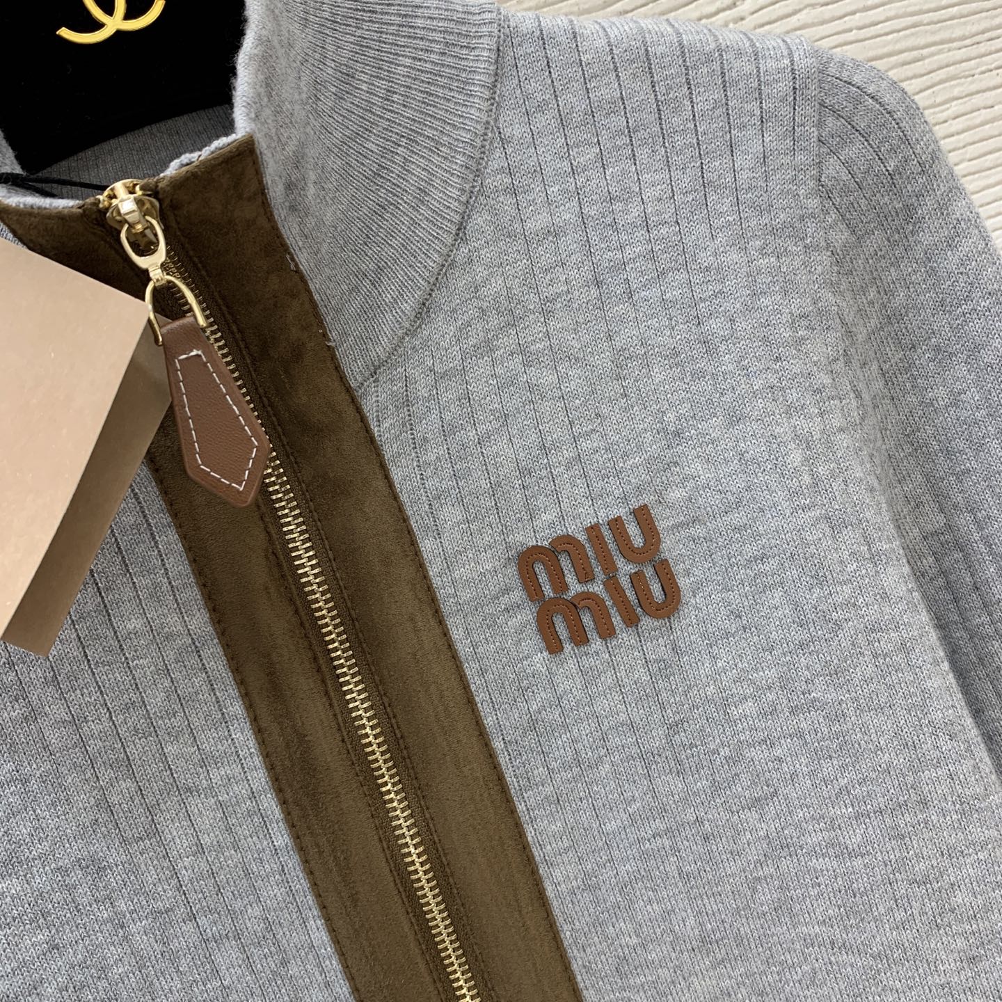 这款衣服是AAAAA 1:1 质量 (非常棒). 使用了和原版一模一样的材料. 商标部分也保持了和缪缪/Miu Miu一样. 图片拍摄是实物衣服拍摄, 您所收到的实物保证和我们图片一模一样.