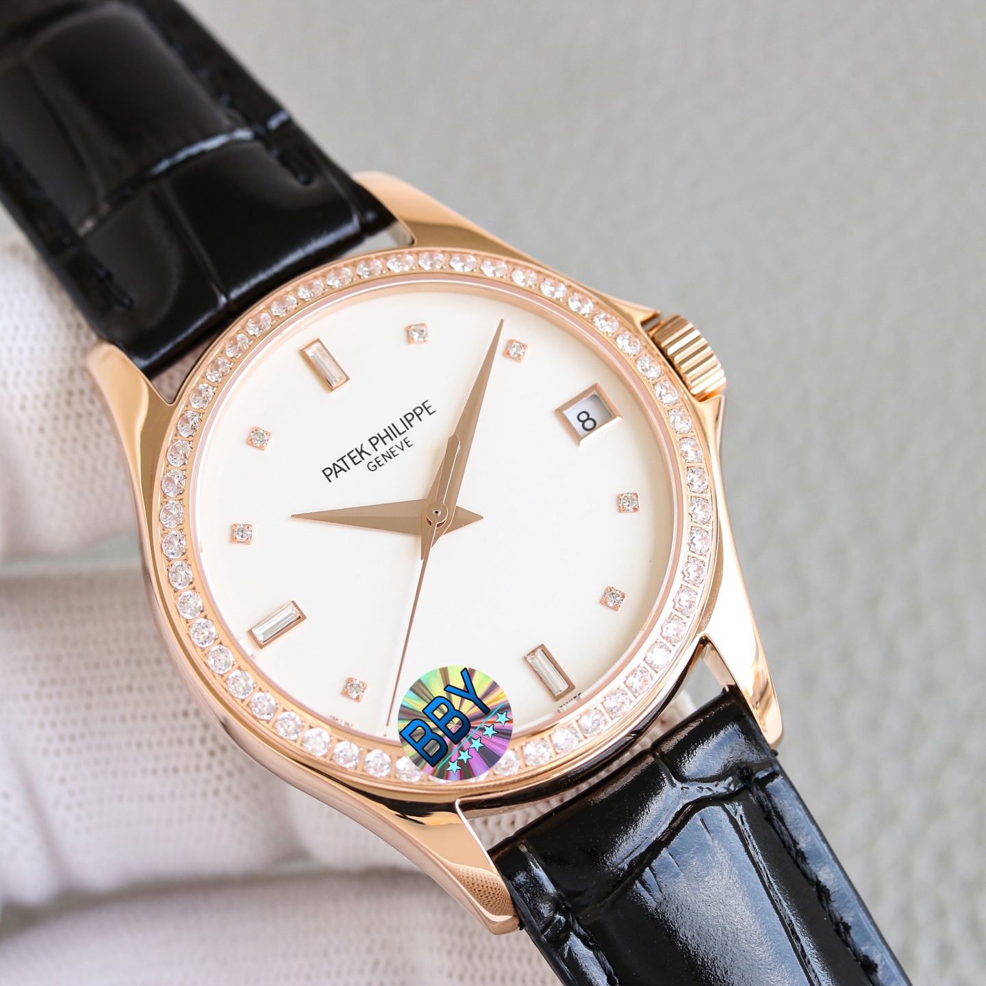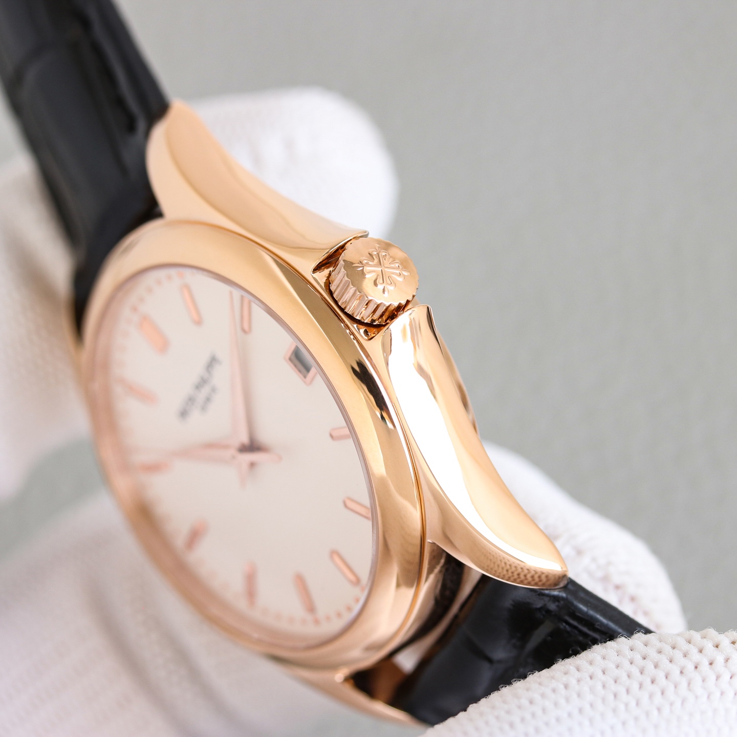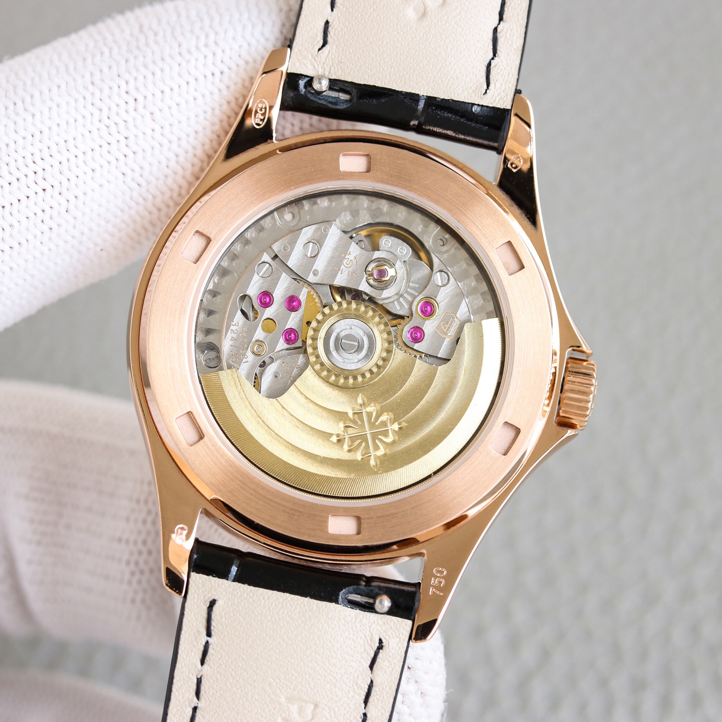 这款手表是AAAAA 1:1 质量 (非常棒). 使用了和原版一模一样的材料. 商标部分也保持了和百达翡丽/Patek Philippe一样. 图片拍摄是实物手表拍摄, 您所收到的实物保证和我们图片一模一样.